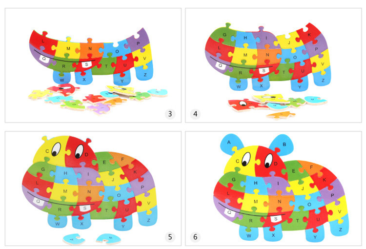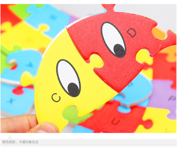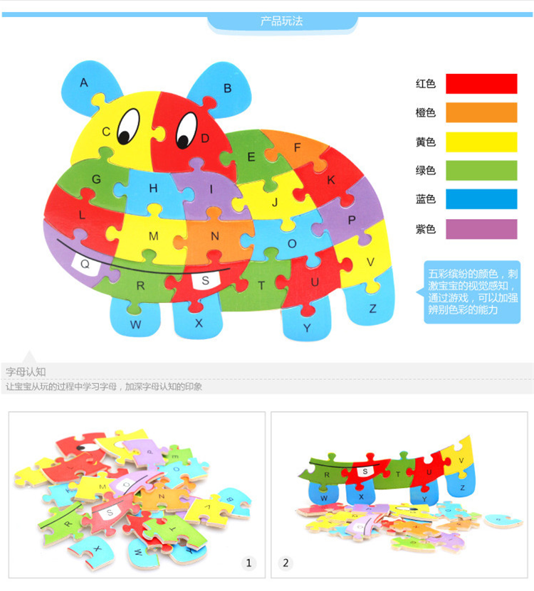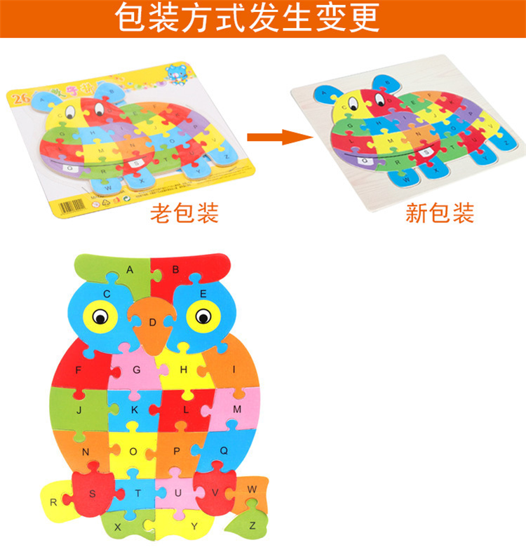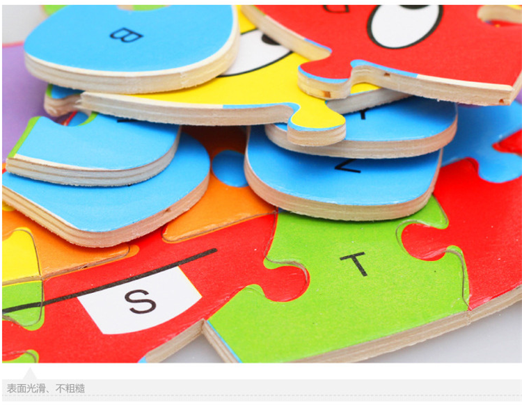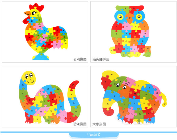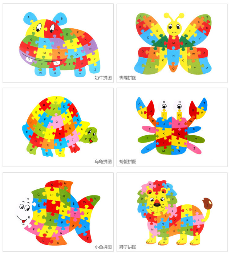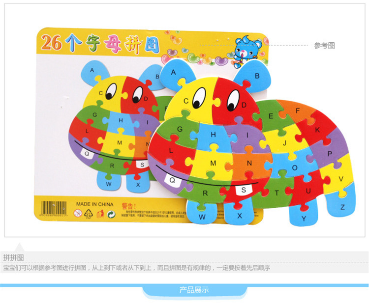 热卖10款26个英语字母动物拼图卡通儿童英文认知启蒙拼板木制玩具