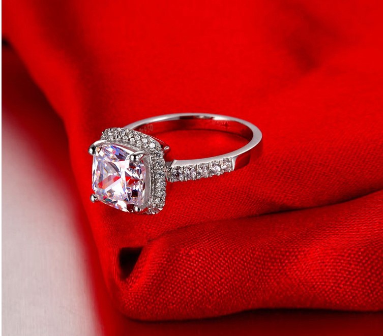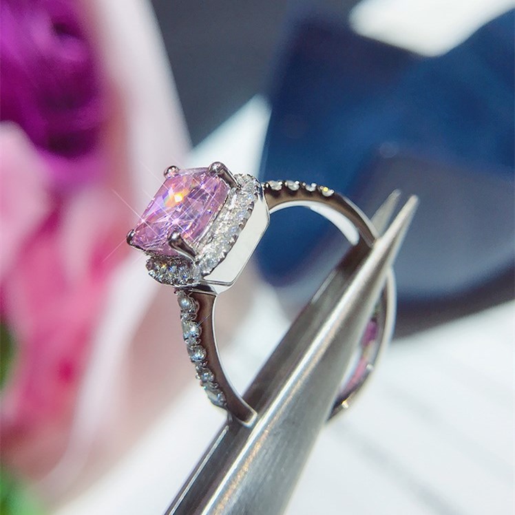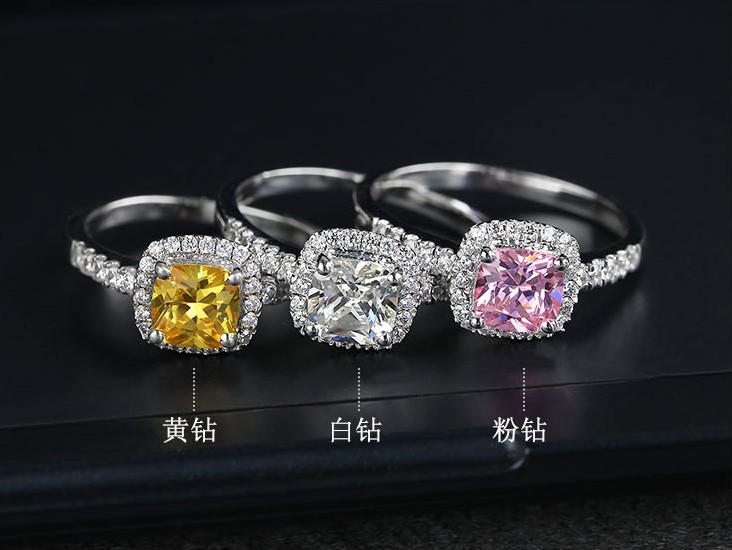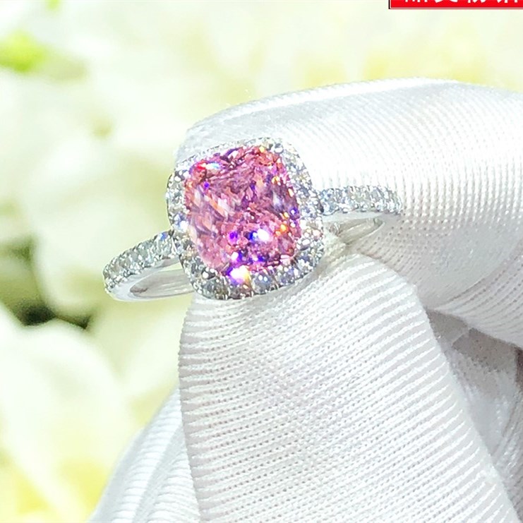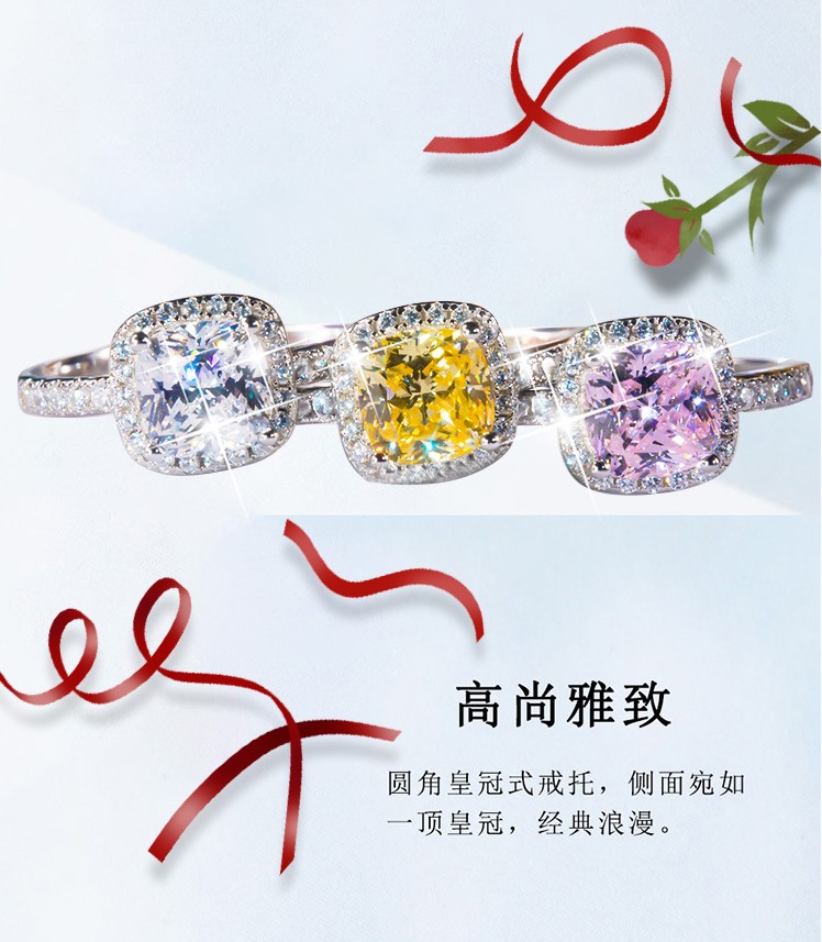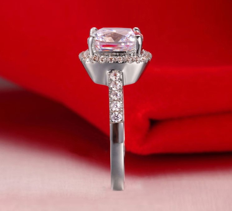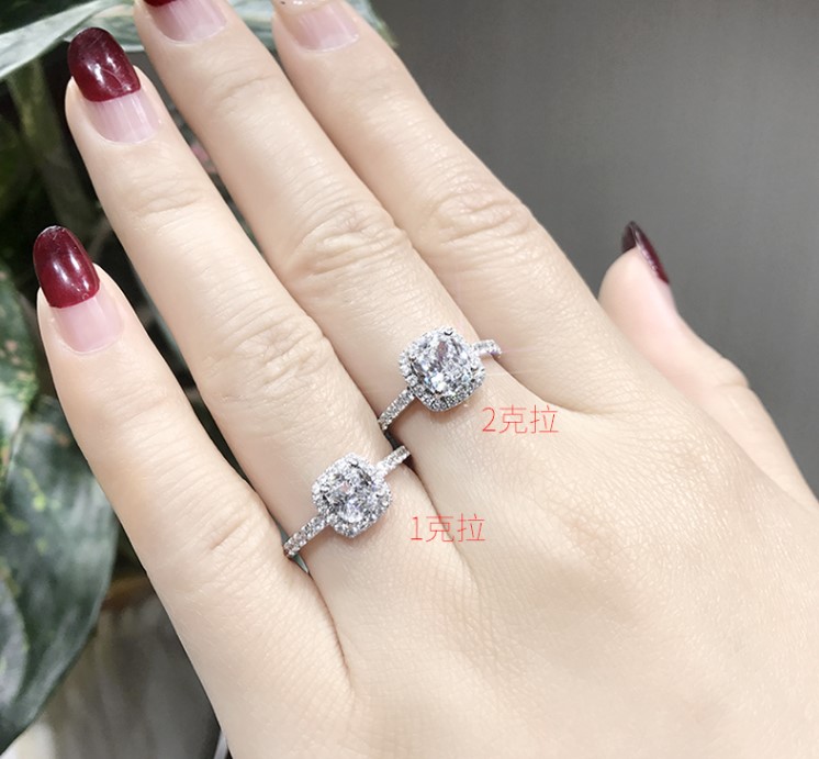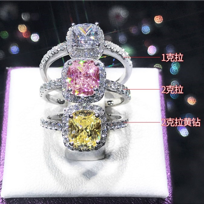 PT950铂金进口D色莫桑公主肥方戒指AU750群镶钻戒可过笔婚戒女