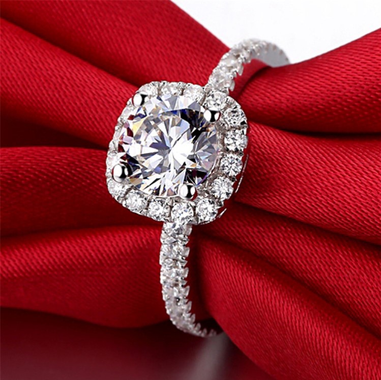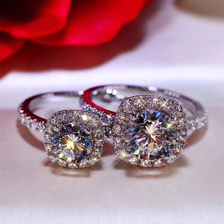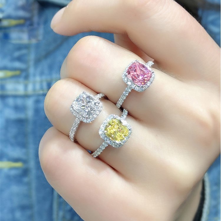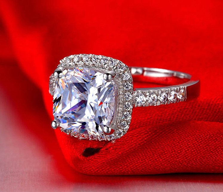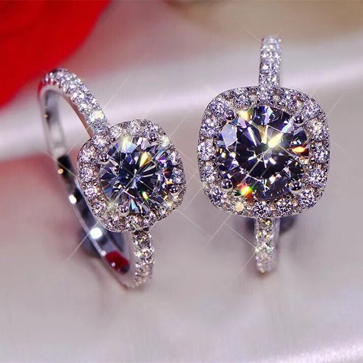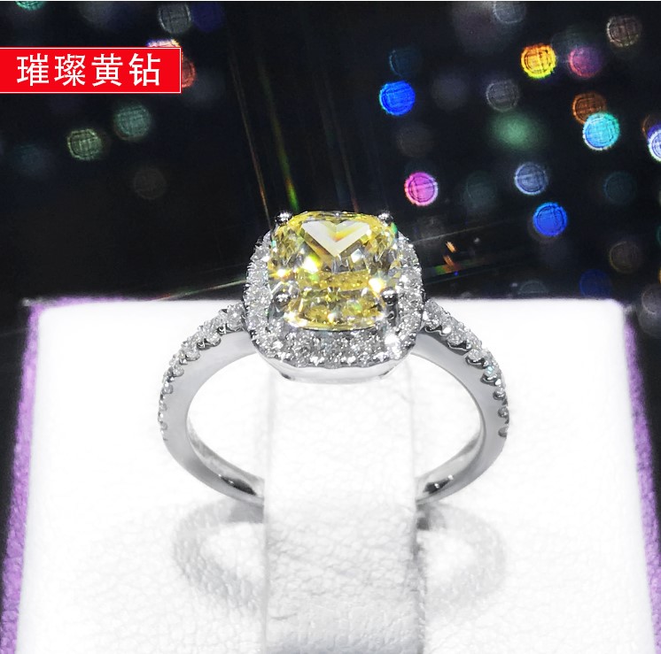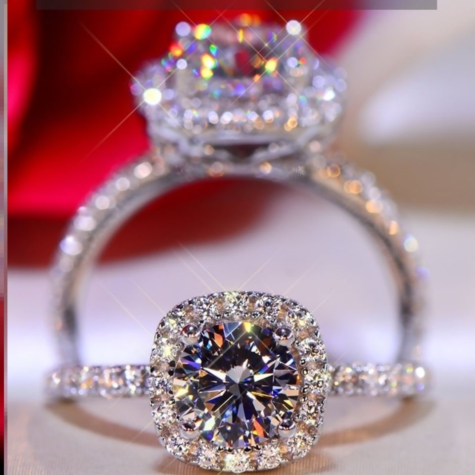 PT950铂金进口D色莫桑公主肥方戒指AU750群镶钻戒可过笔婚戒女