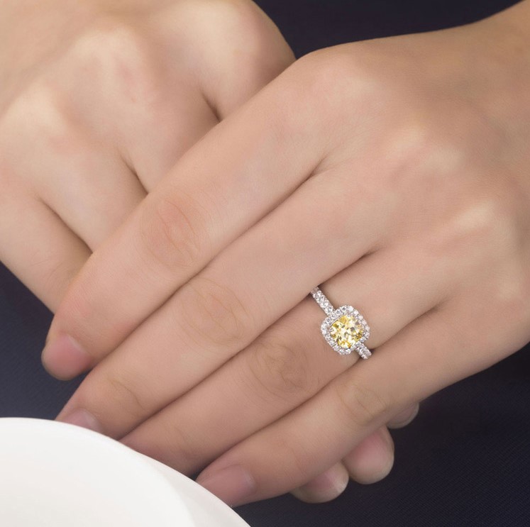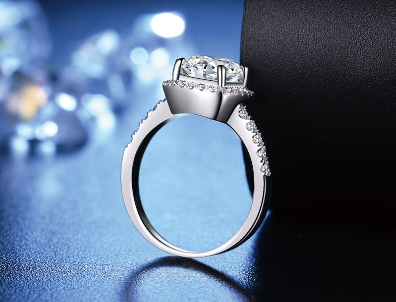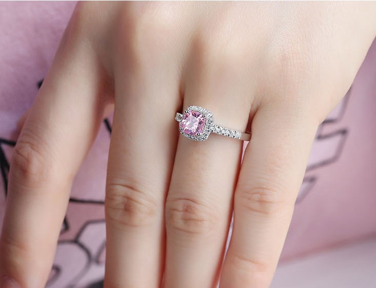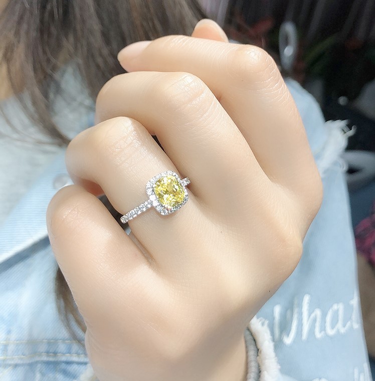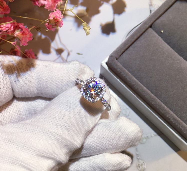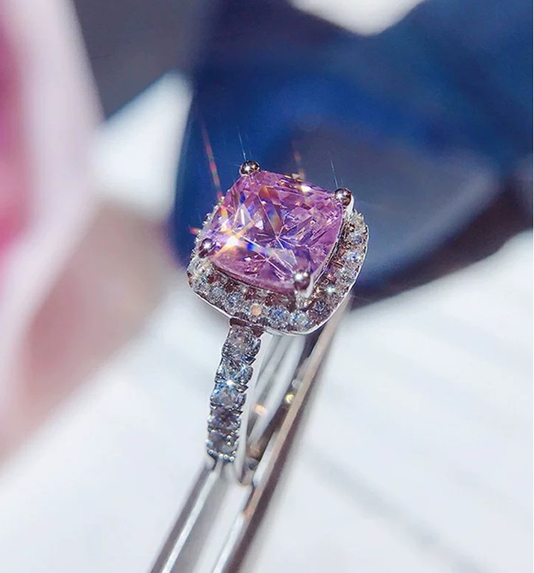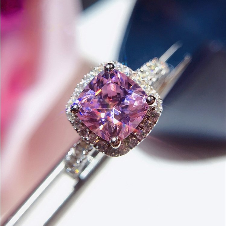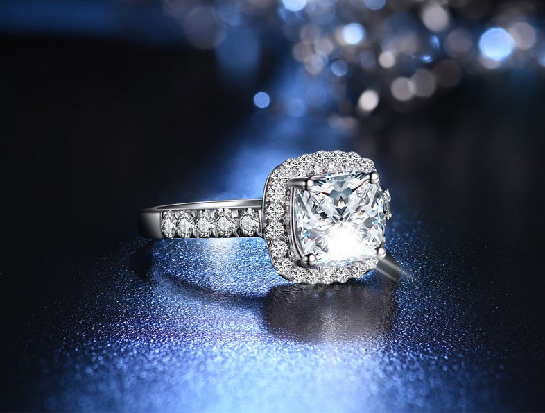 PT950铂金进口D色莫桑公主肥方戒指AU750群镶钻戒可过笔婚戒女