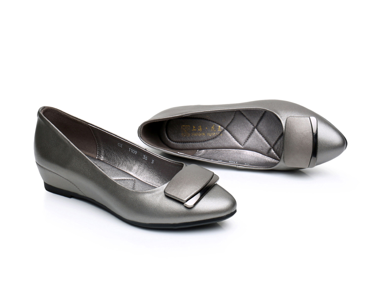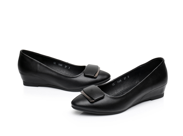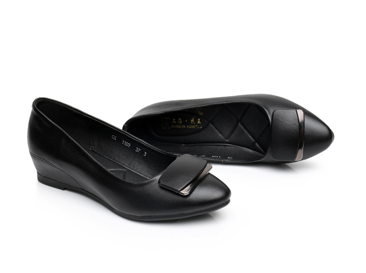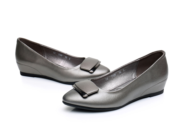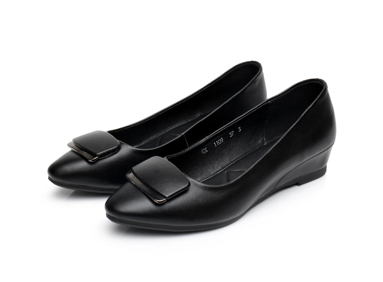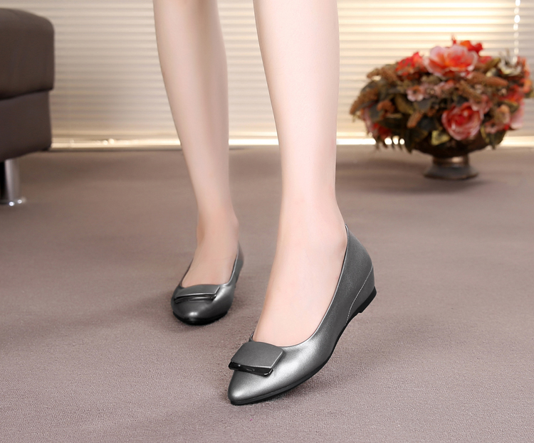 舒适防滑坡跟软底真皮单鞋妈妈鞋春秋款百搭中年女式浅口皮鞋休闲