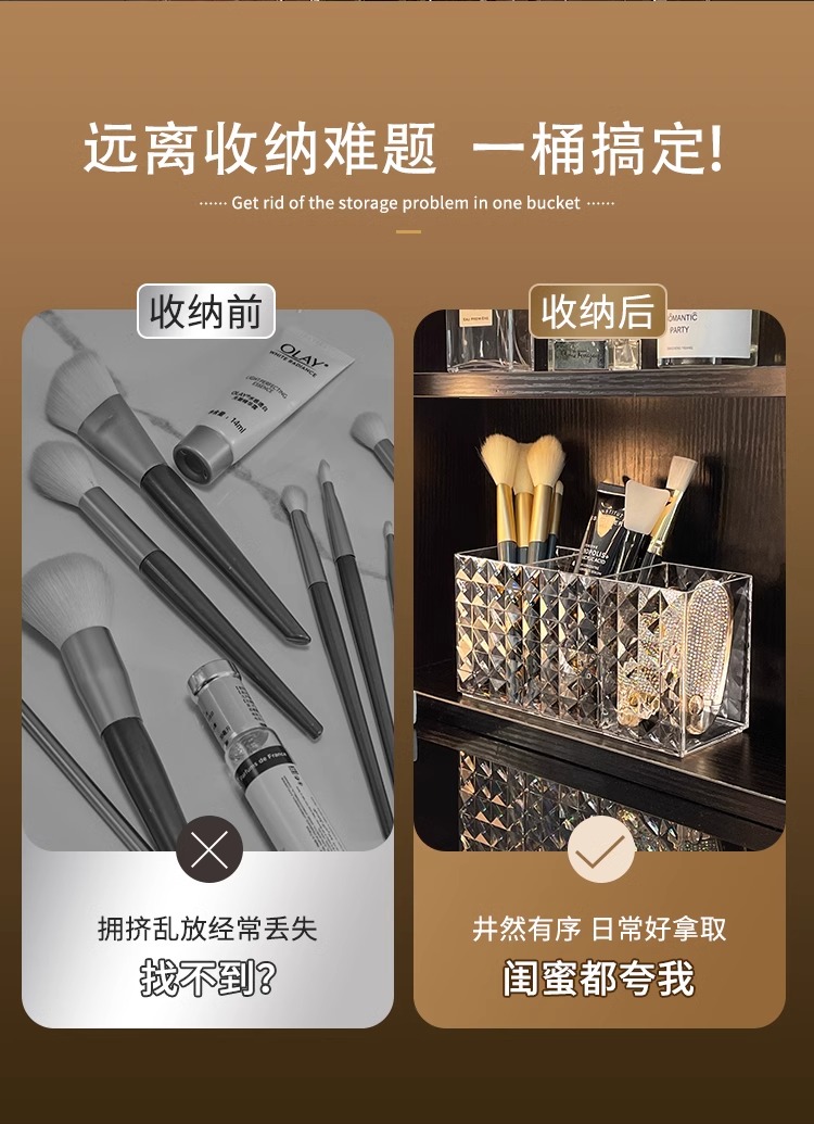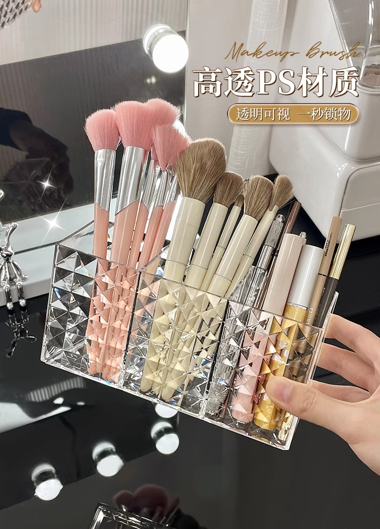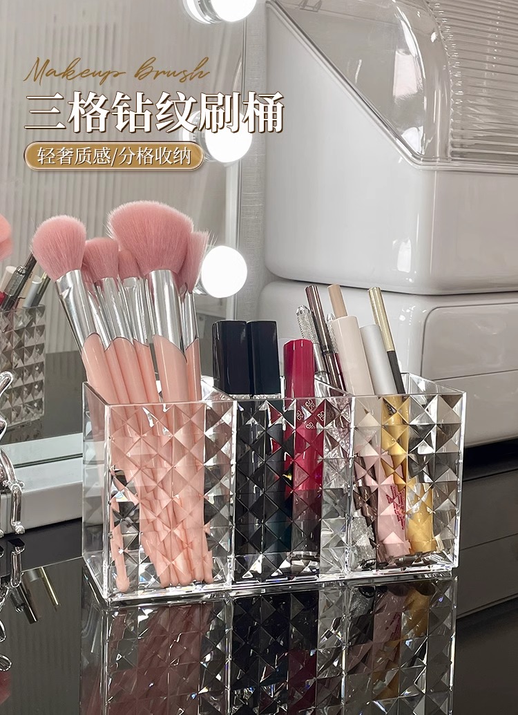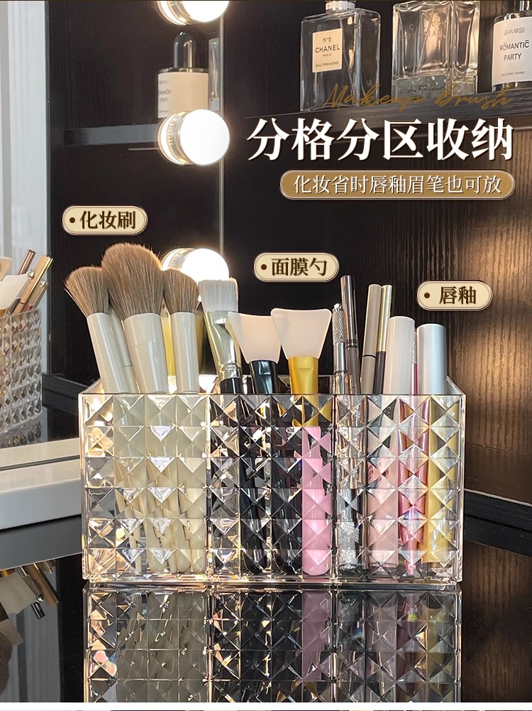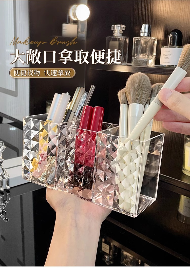 化妆刷筒卧室梳妆台口红眼影眉笔整理透明亚克力镜柜化妆品收纳盒