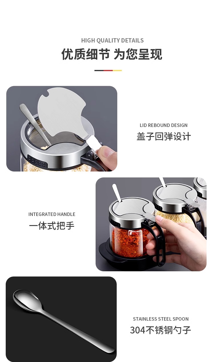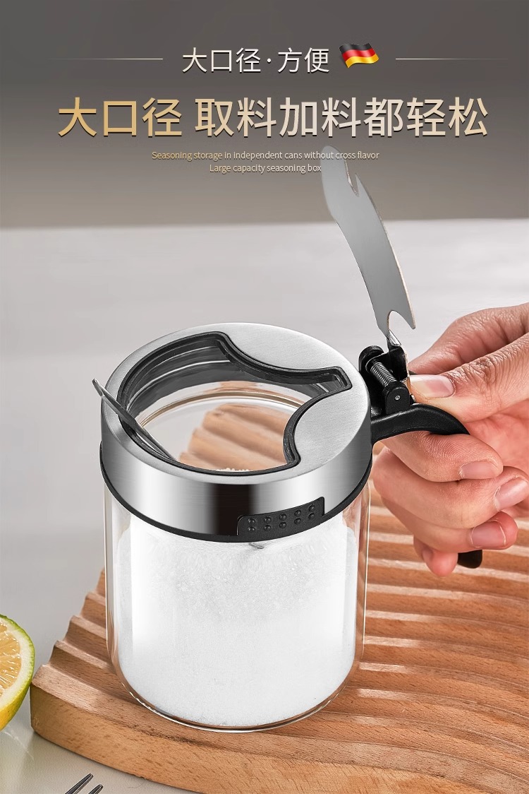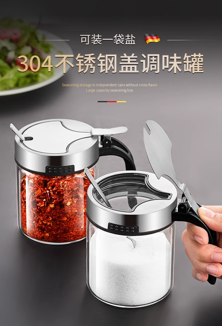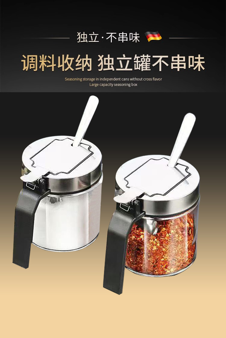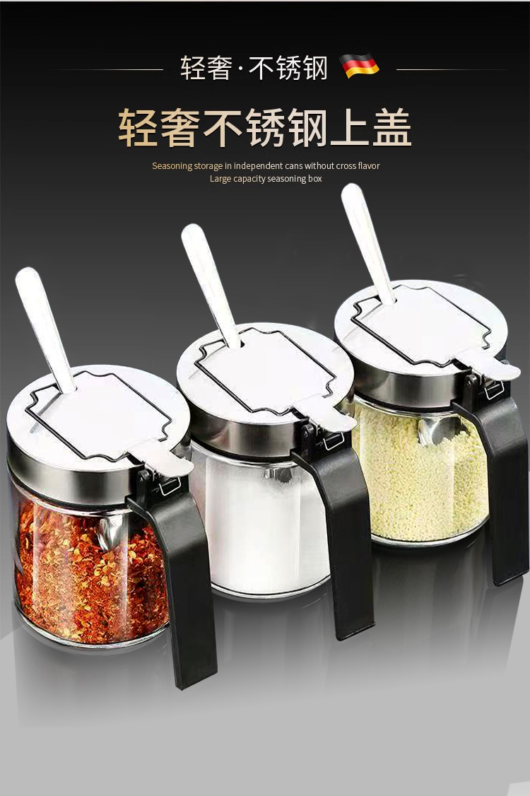 304不锈钢套装调味厨房家用玻璃调味瓶盐罐收纳调自动防潮轻奢