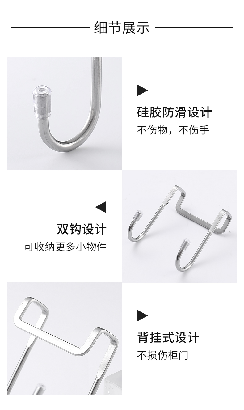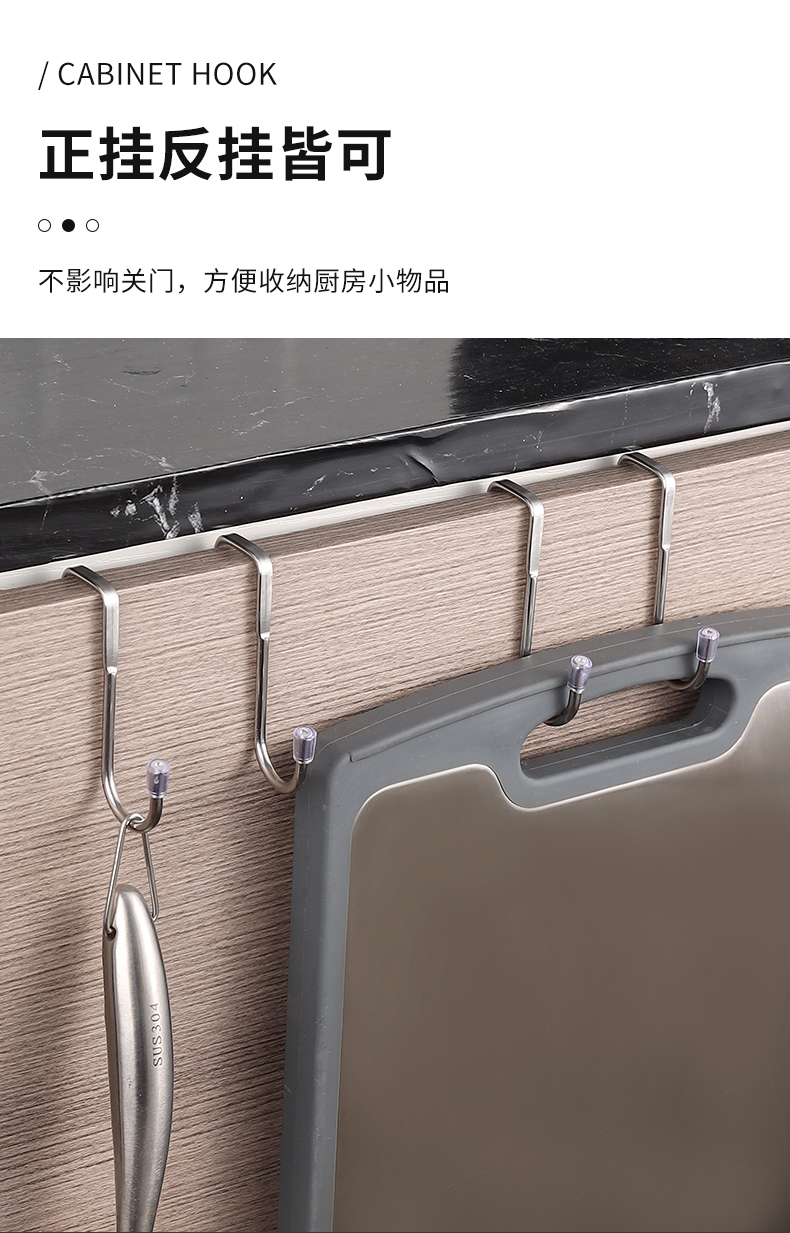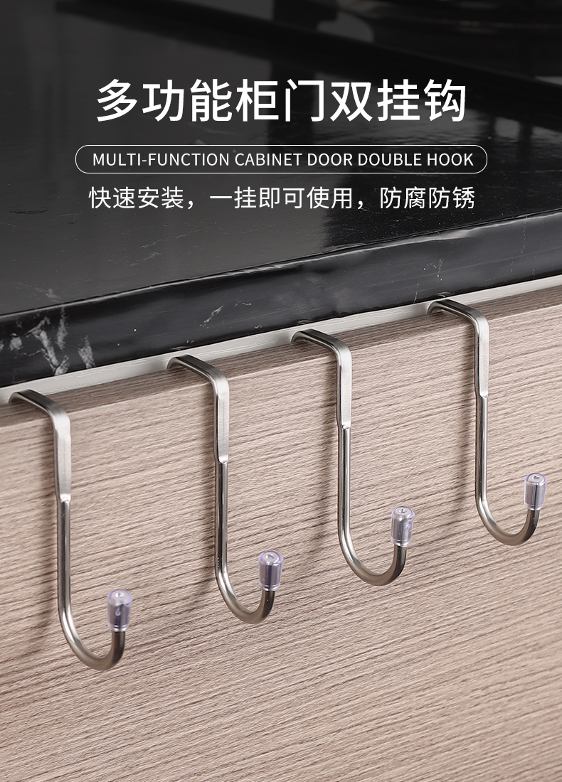 304不锈钢s型挂钩厨房宿舍门后挂衣钩免打孔衣柜鞋柜双钩强力承重