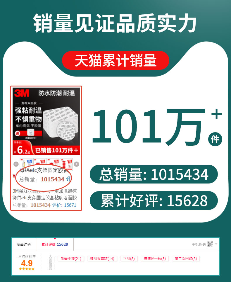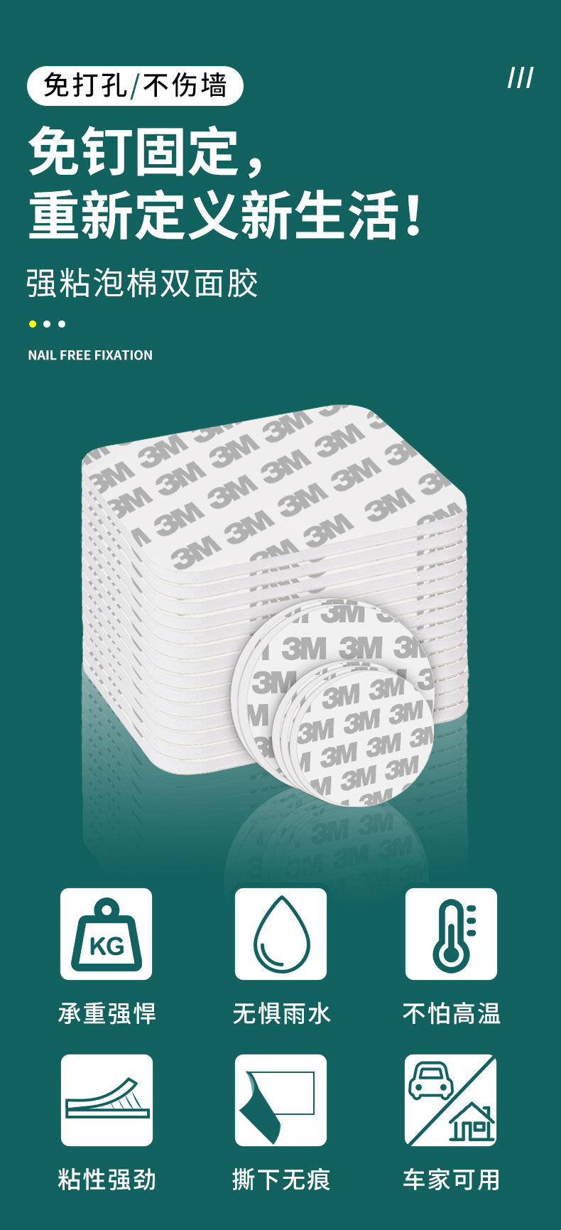 3M泡沫双面胶强力泡棉海绵贴片高粘度粘贴胶插座厨房墙面固定家用