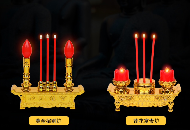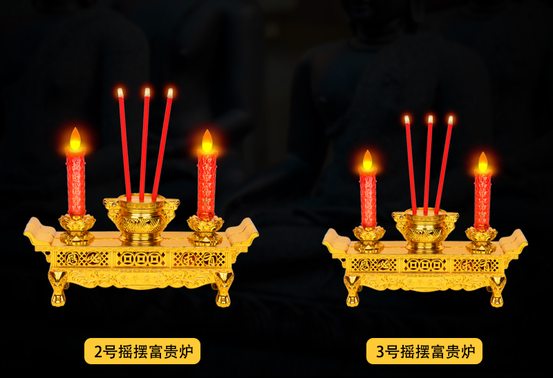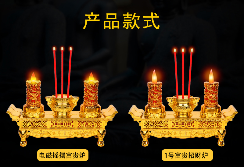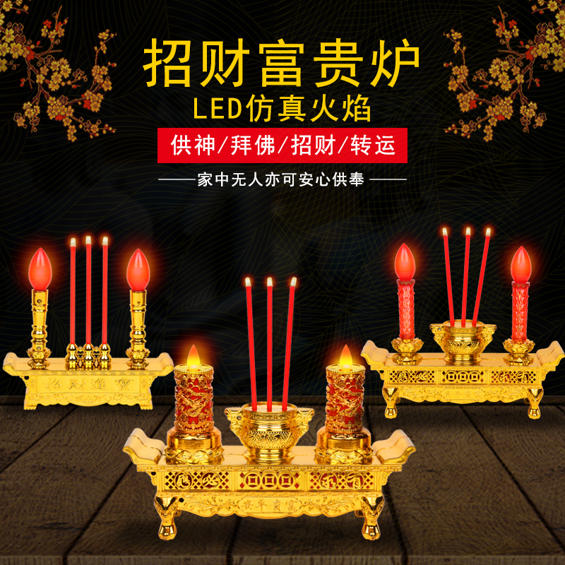 LED富贵招财炉佛前电子香炉摇摆烛台财神灯长明灯电子蜡烛灯插电