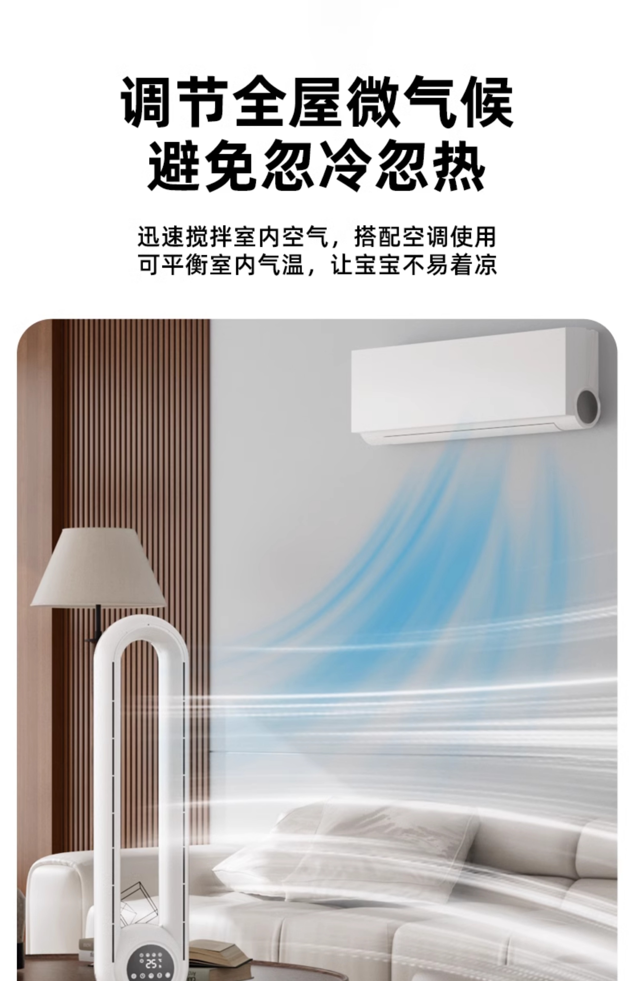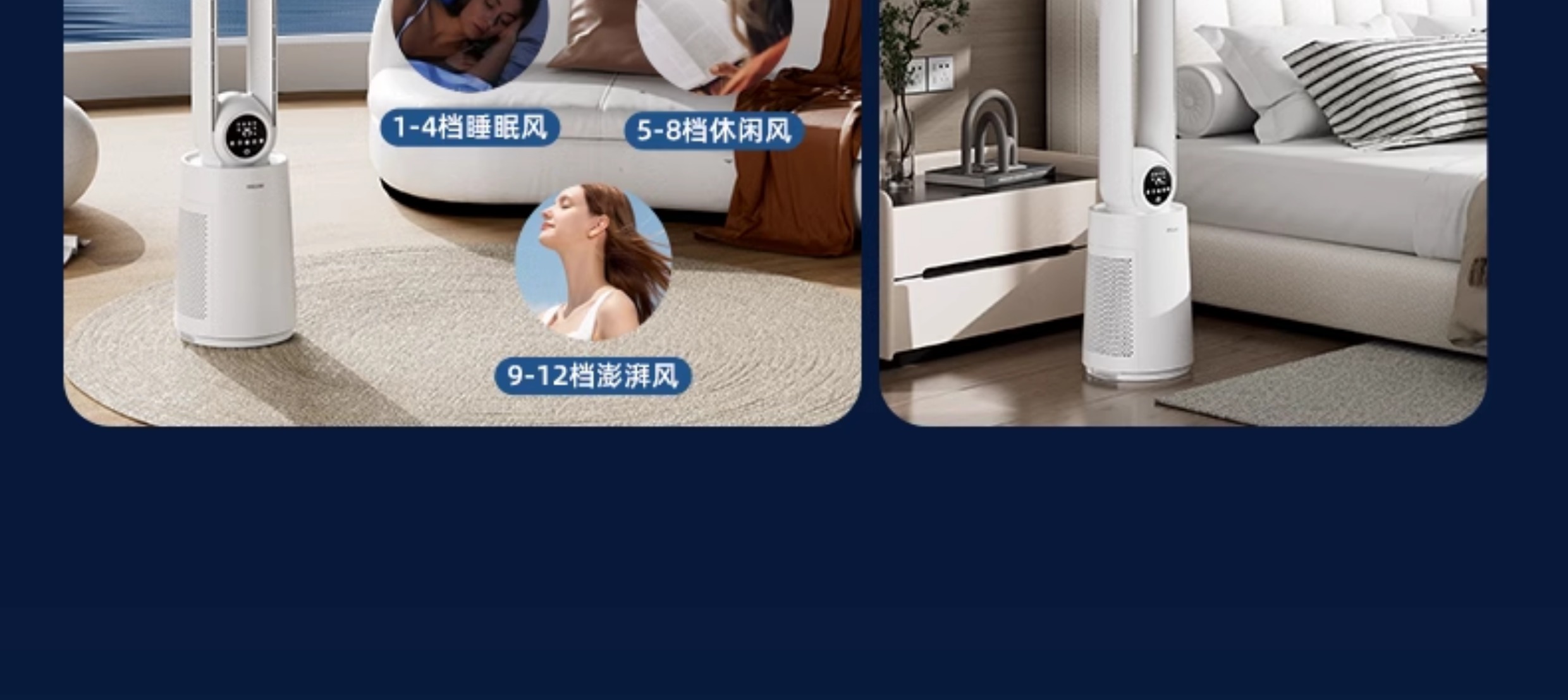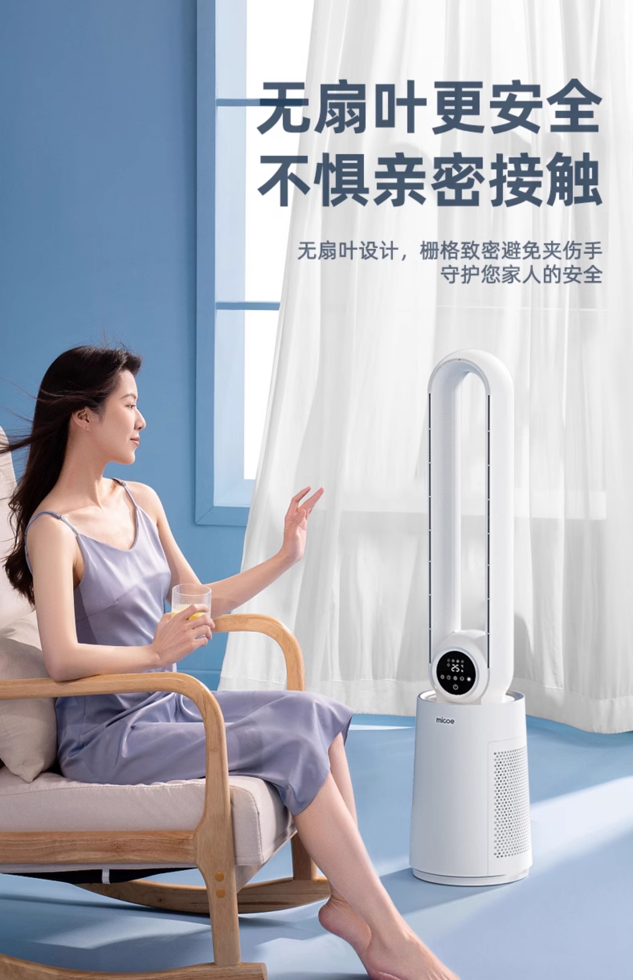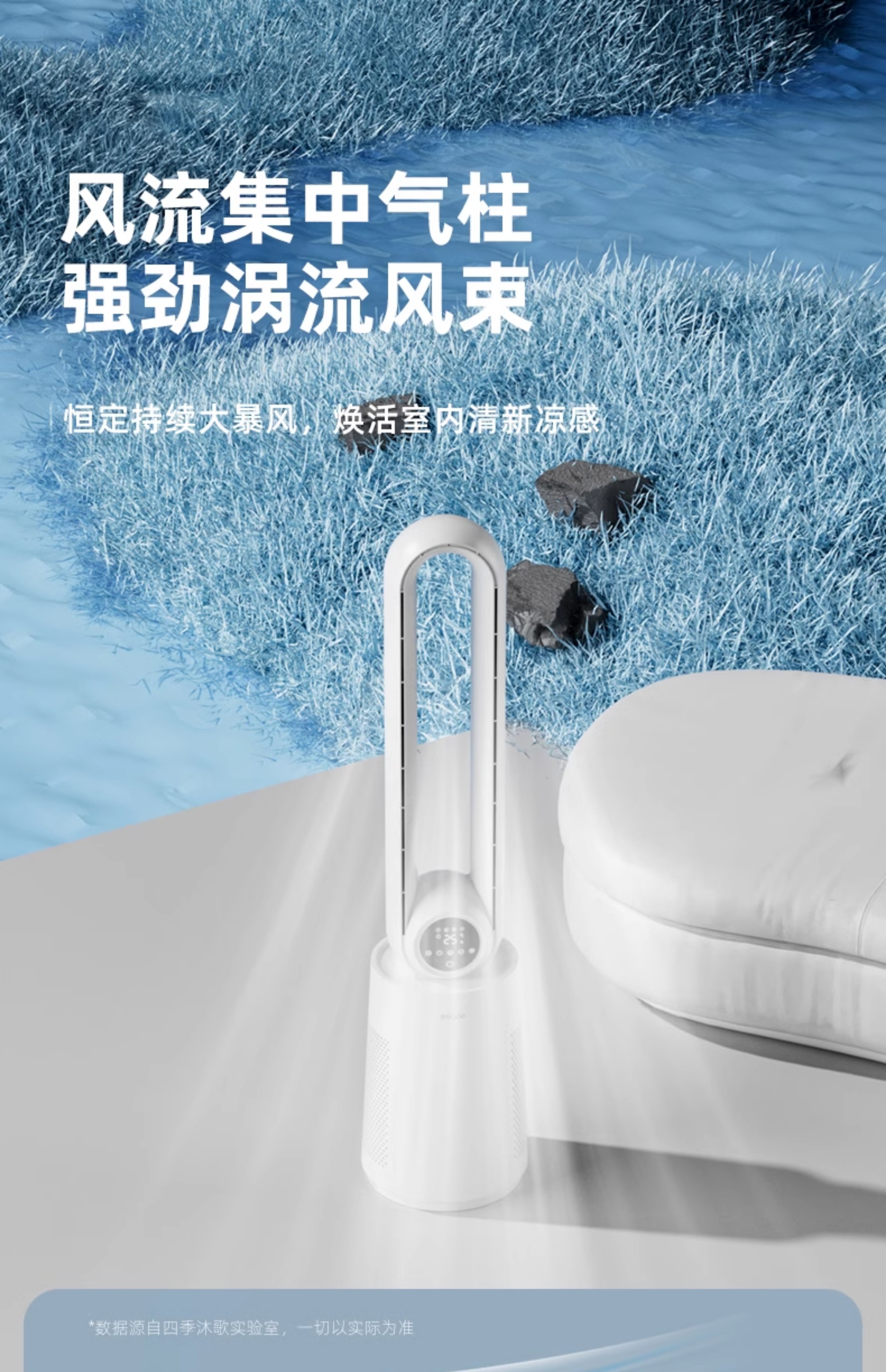 四季沐歌无叶风扇塔式大厦扇安全无叶家用客厅卧室落地电风扇节能