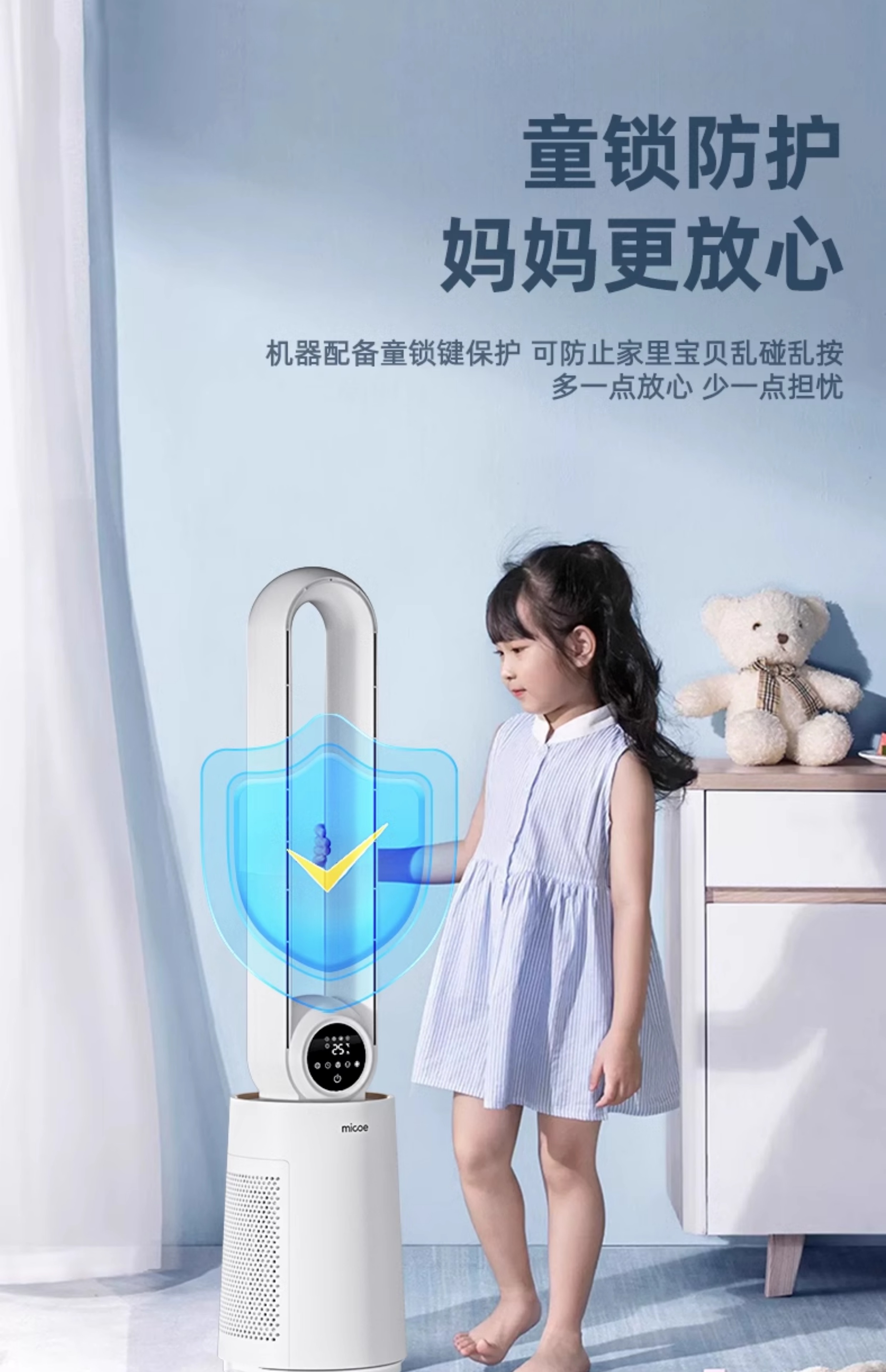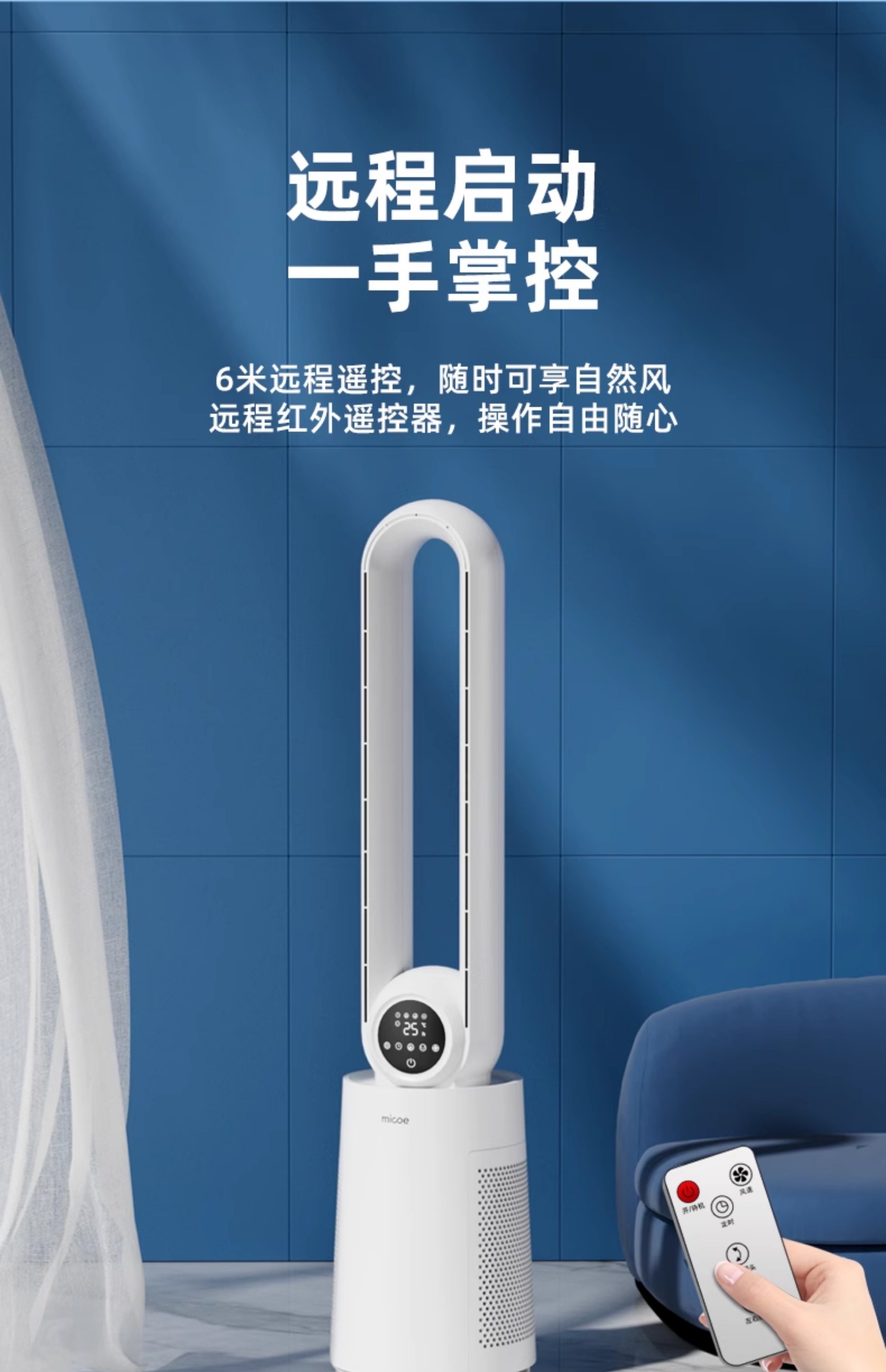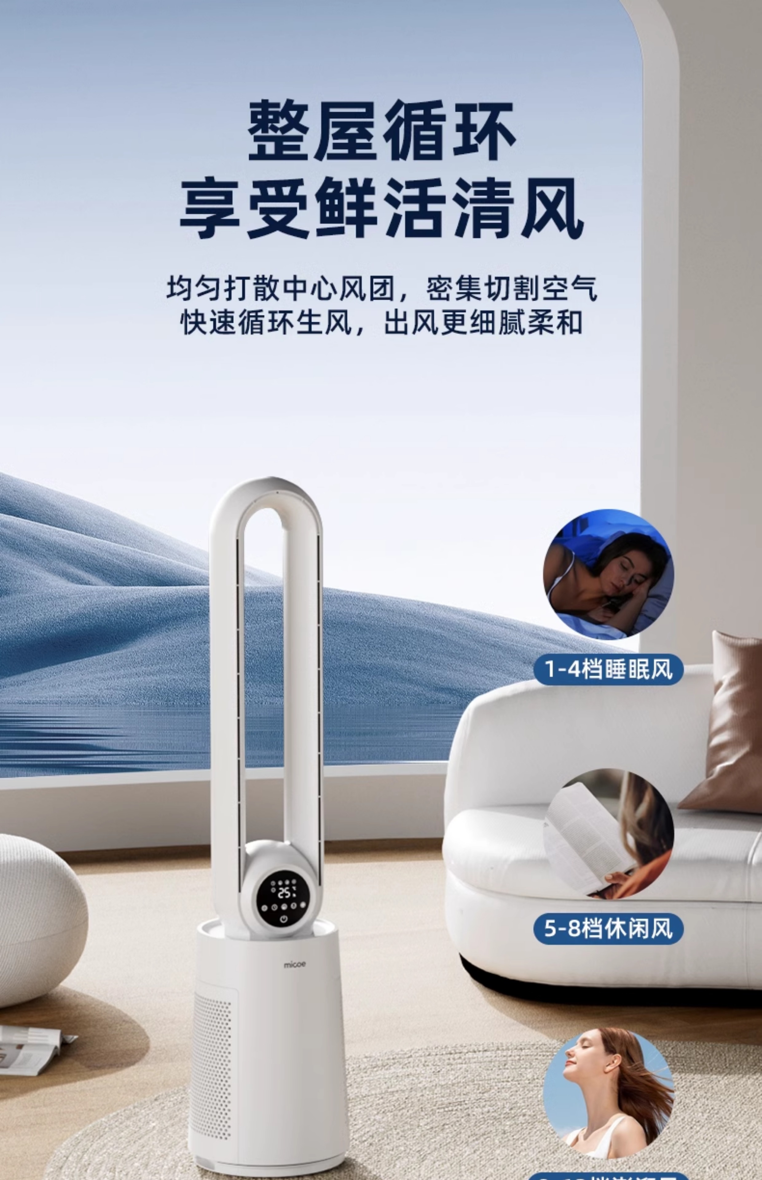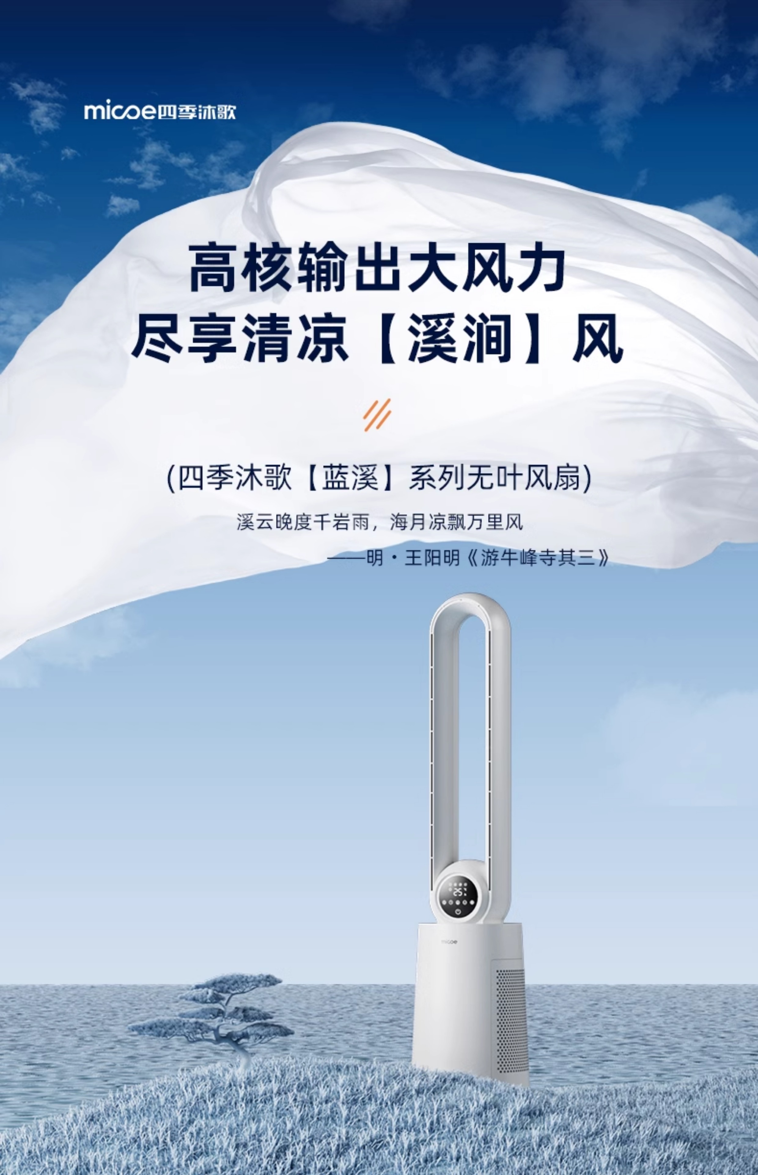 四季沐歌无叶风扇塔式大厦扇安全无叶家用客厅卧室落地电风扇节能