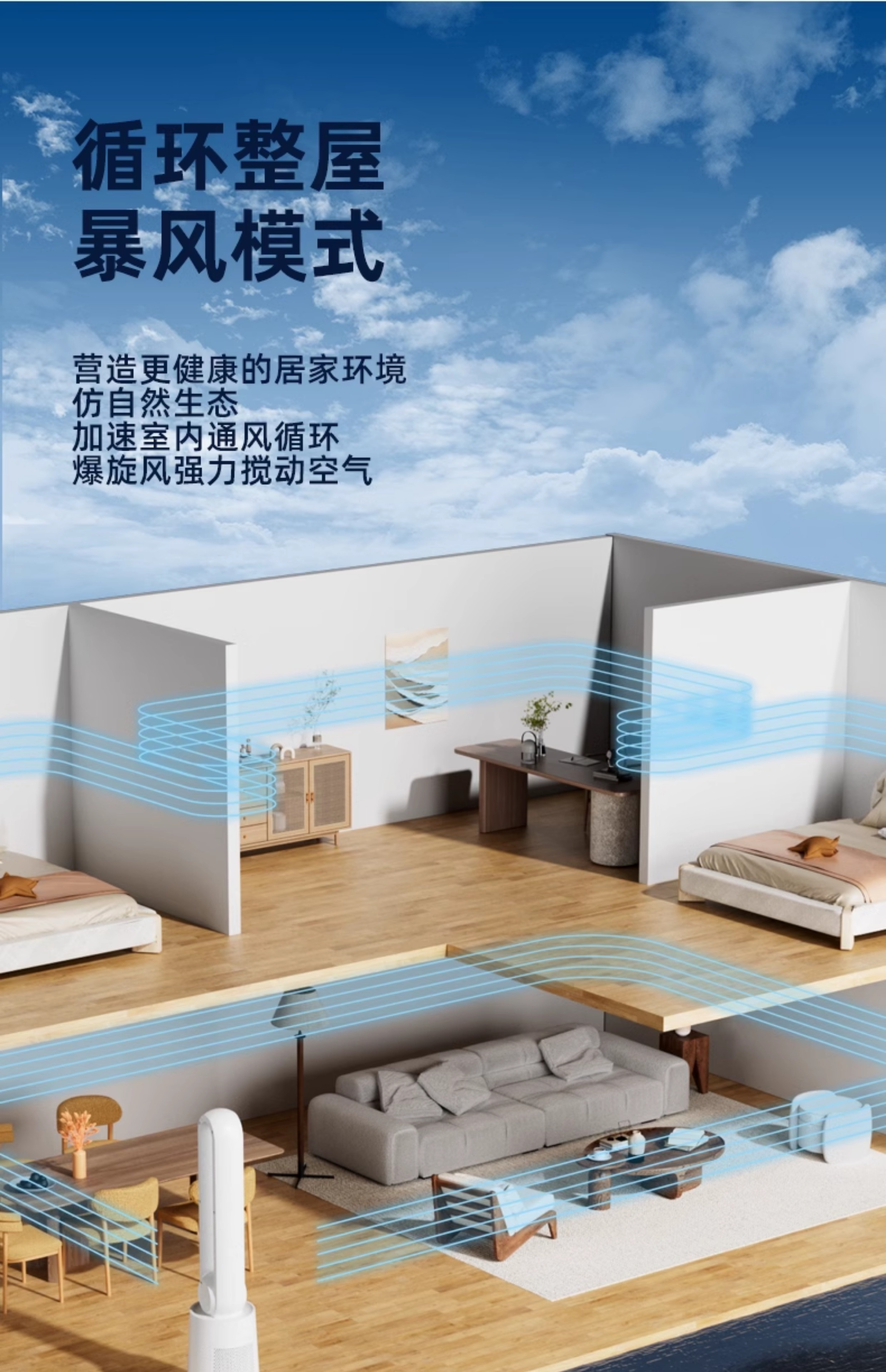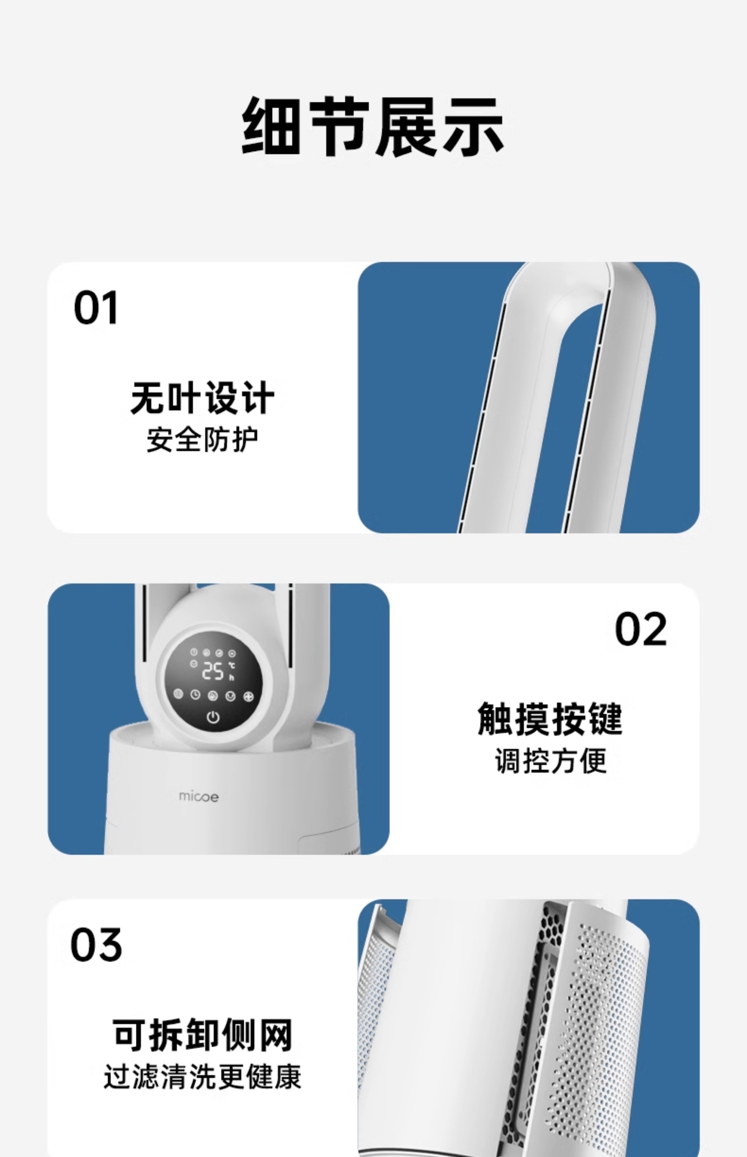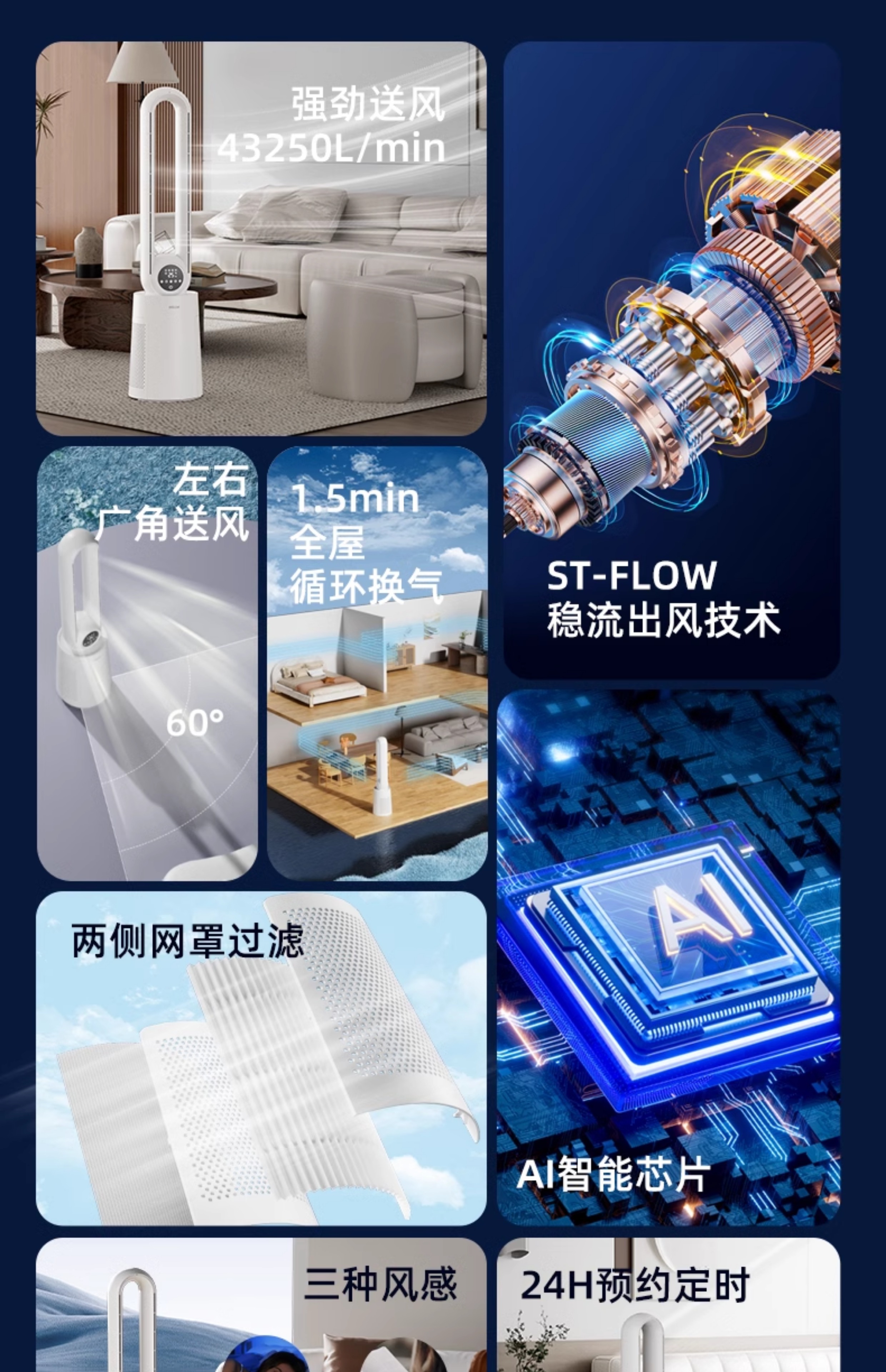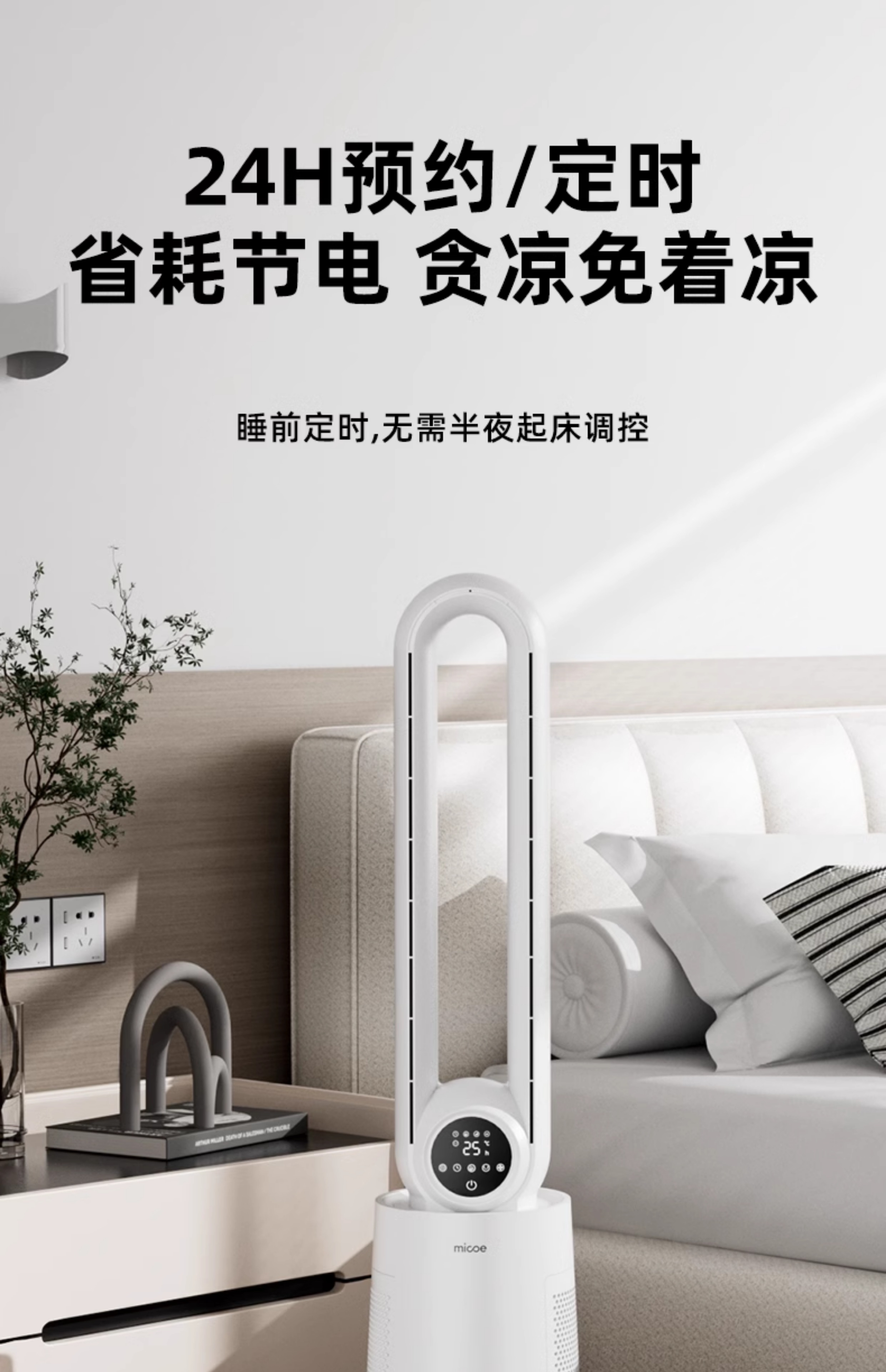 四季沐歌无叶风扇塔式大厦扇安全无叶家用客厅卧室落地电风扇节能