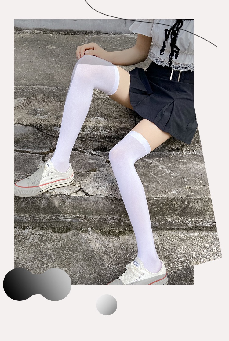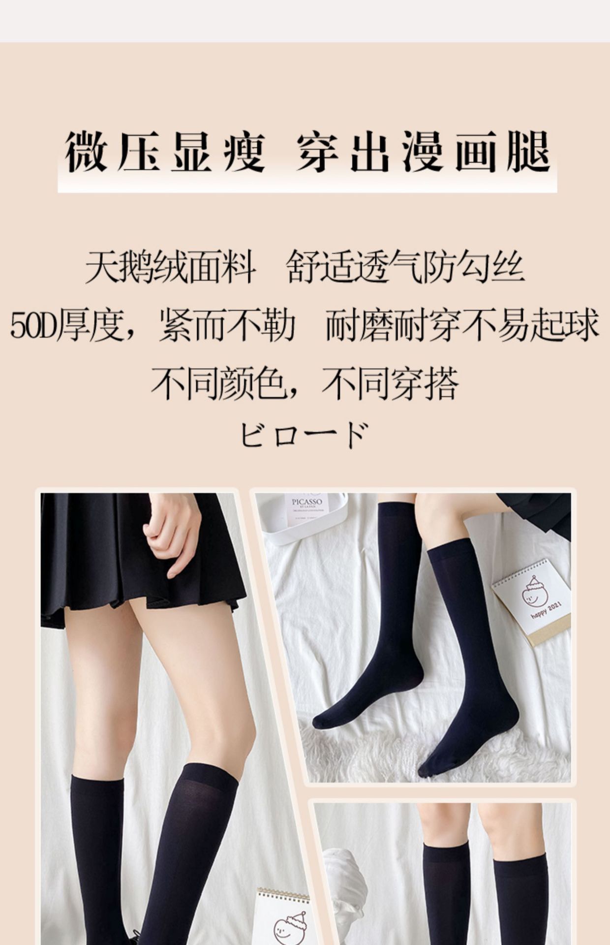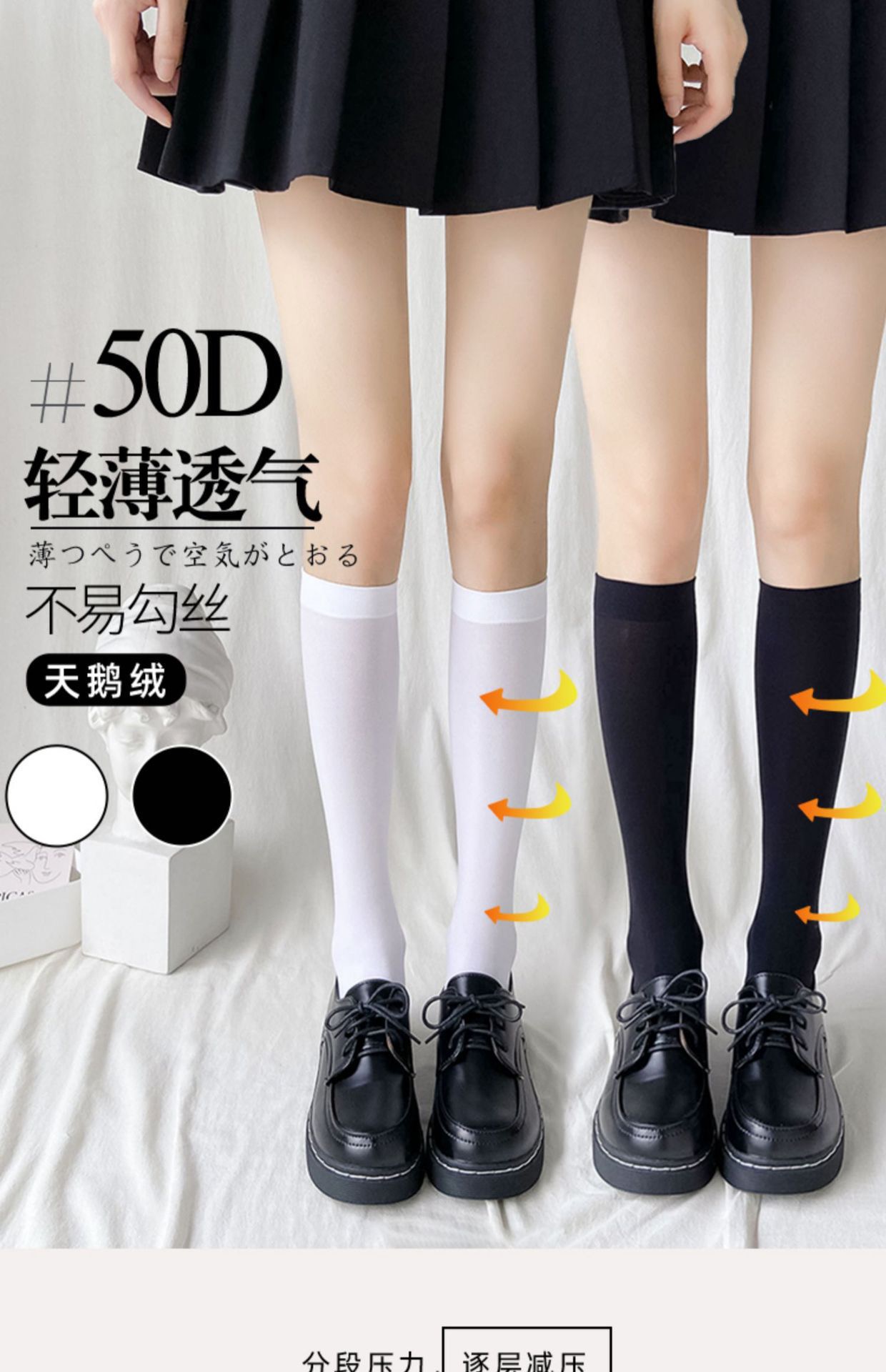 黑色天鹅绒过膝袜jk袜奶白色日系袜子薄款性感女大小腿袜长筒丝袜