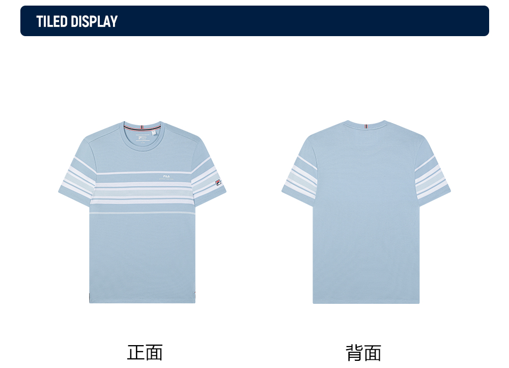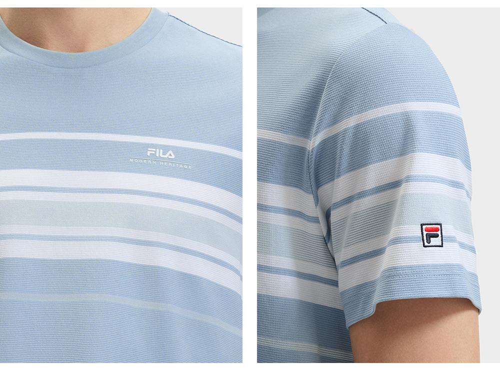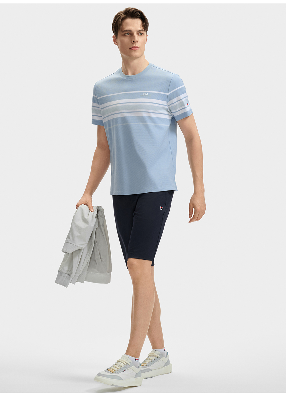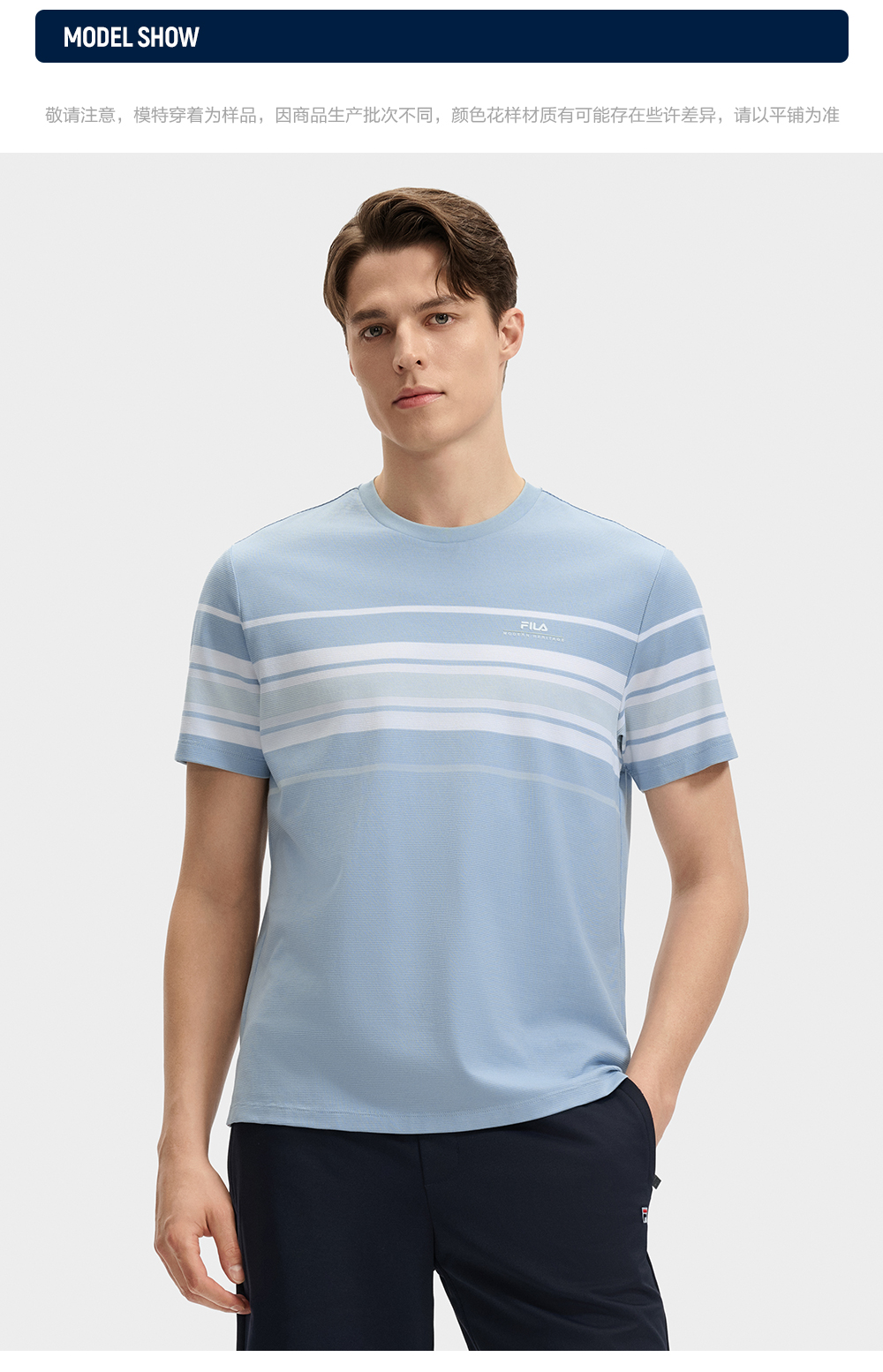 FILA 斐乐官方男子针织短袖衫2024秋新款时尚休闲条纹基础纯棉T恤