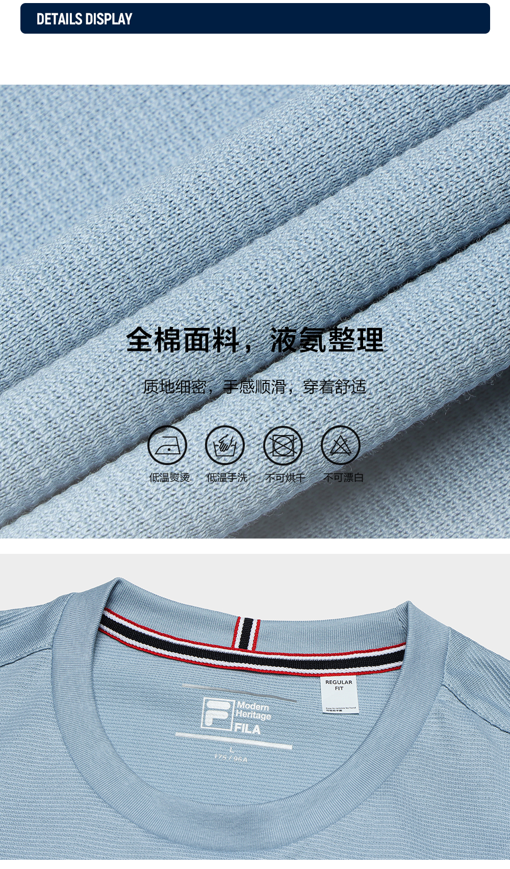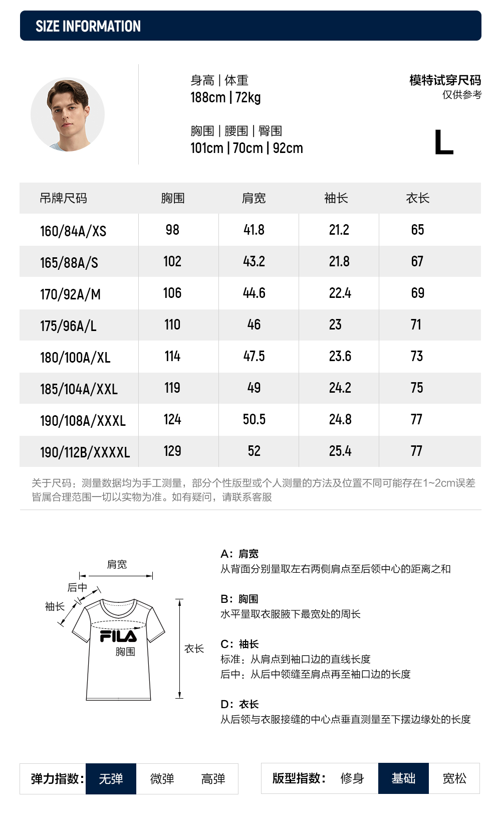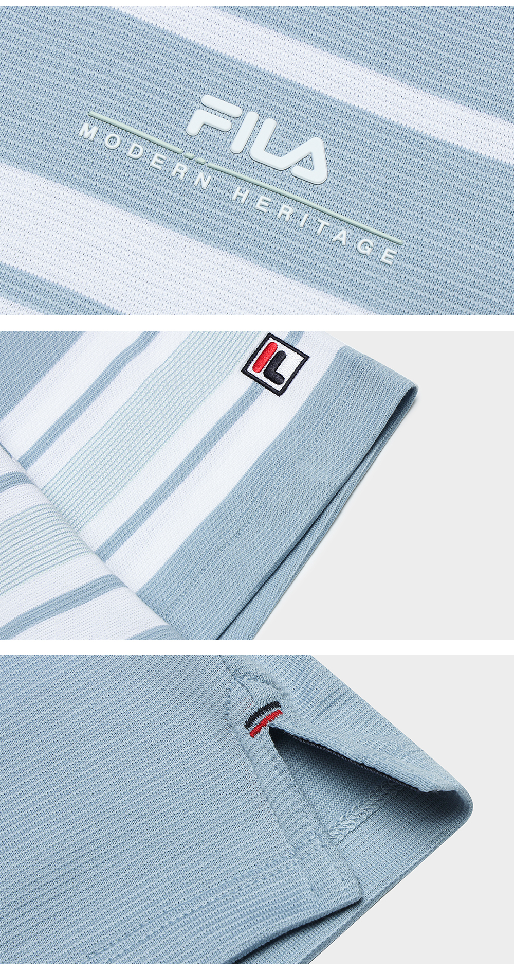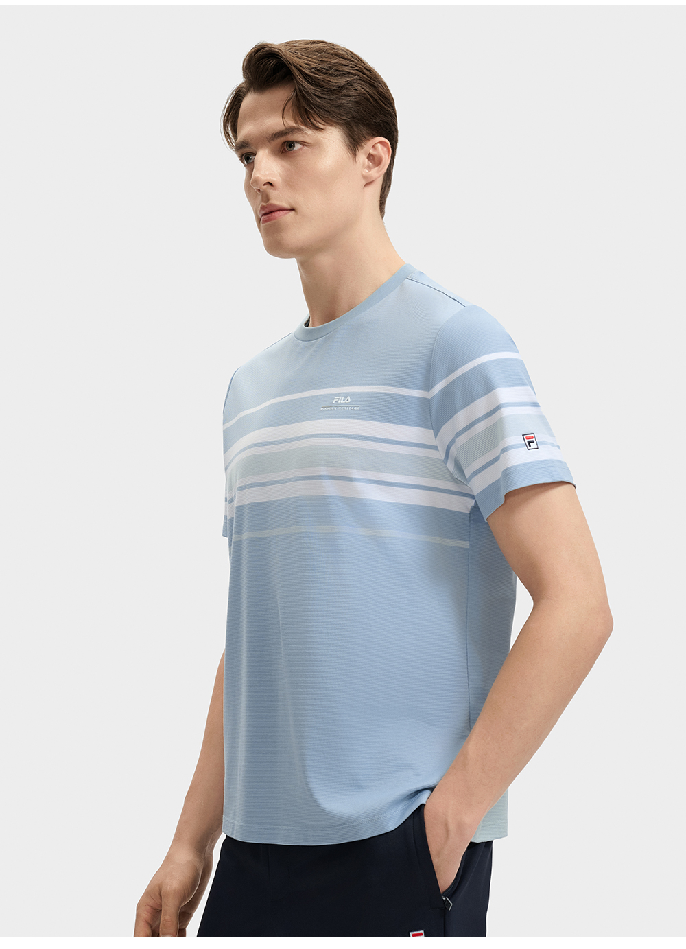 FILA 斐乐官方男子针织短袖衫2024秋新款时尚休闲条纹基础纯棉T恤