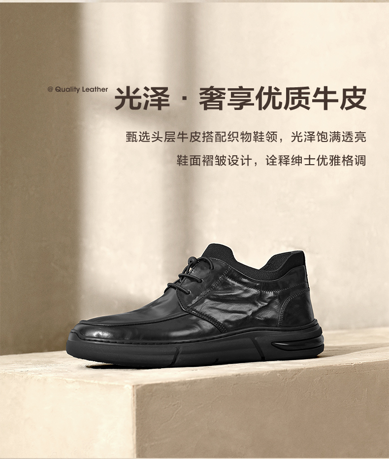 百丽男鞋高帮休闲商务皮鞋男冬季新款加绒棉鞋保暖短靴子8MP01DD4