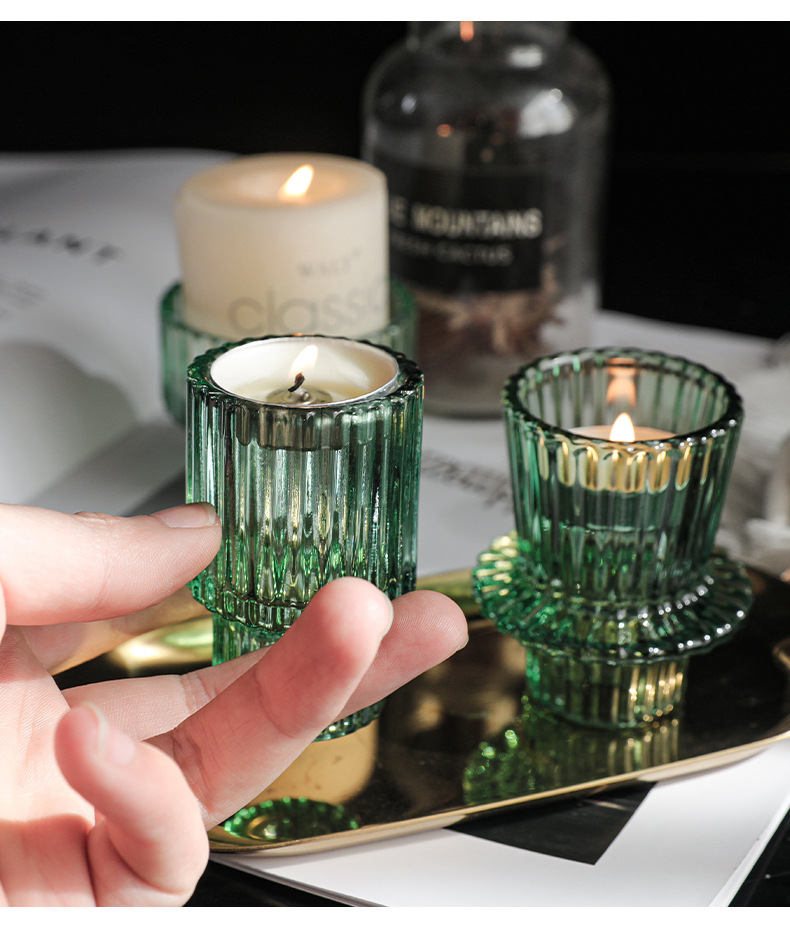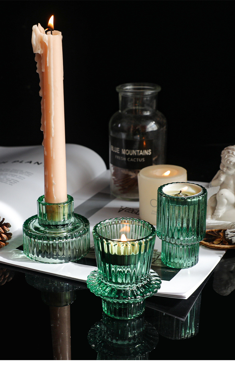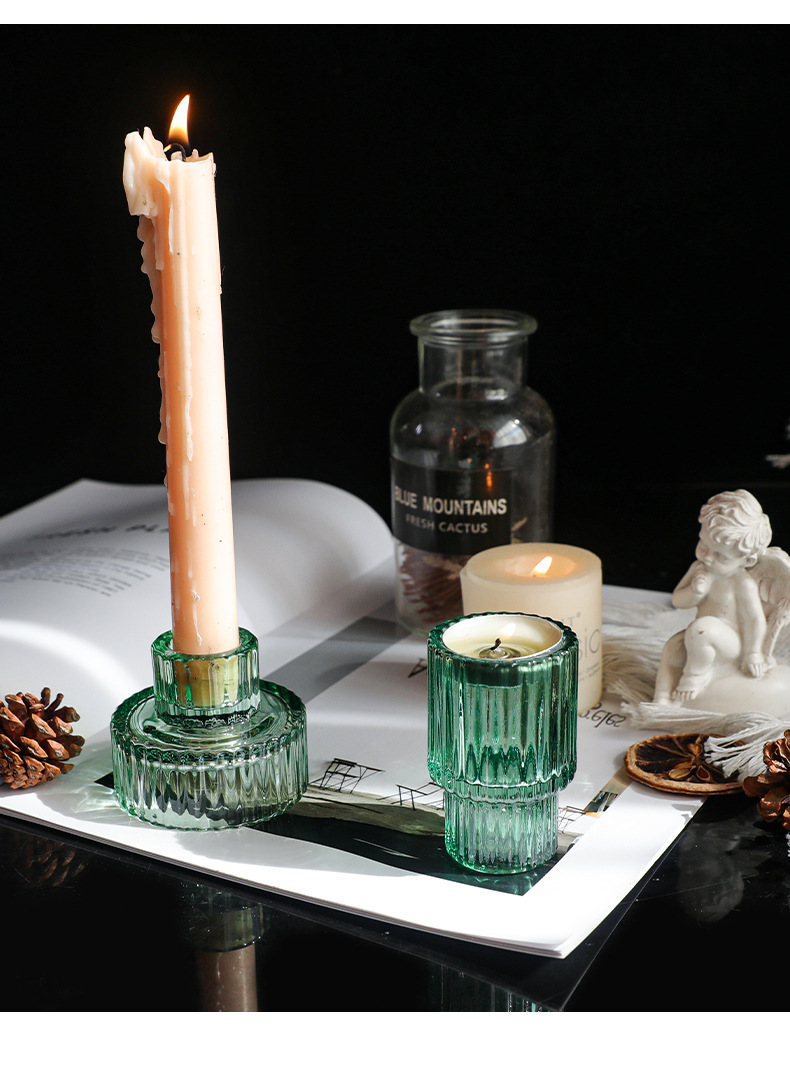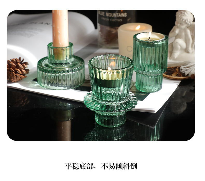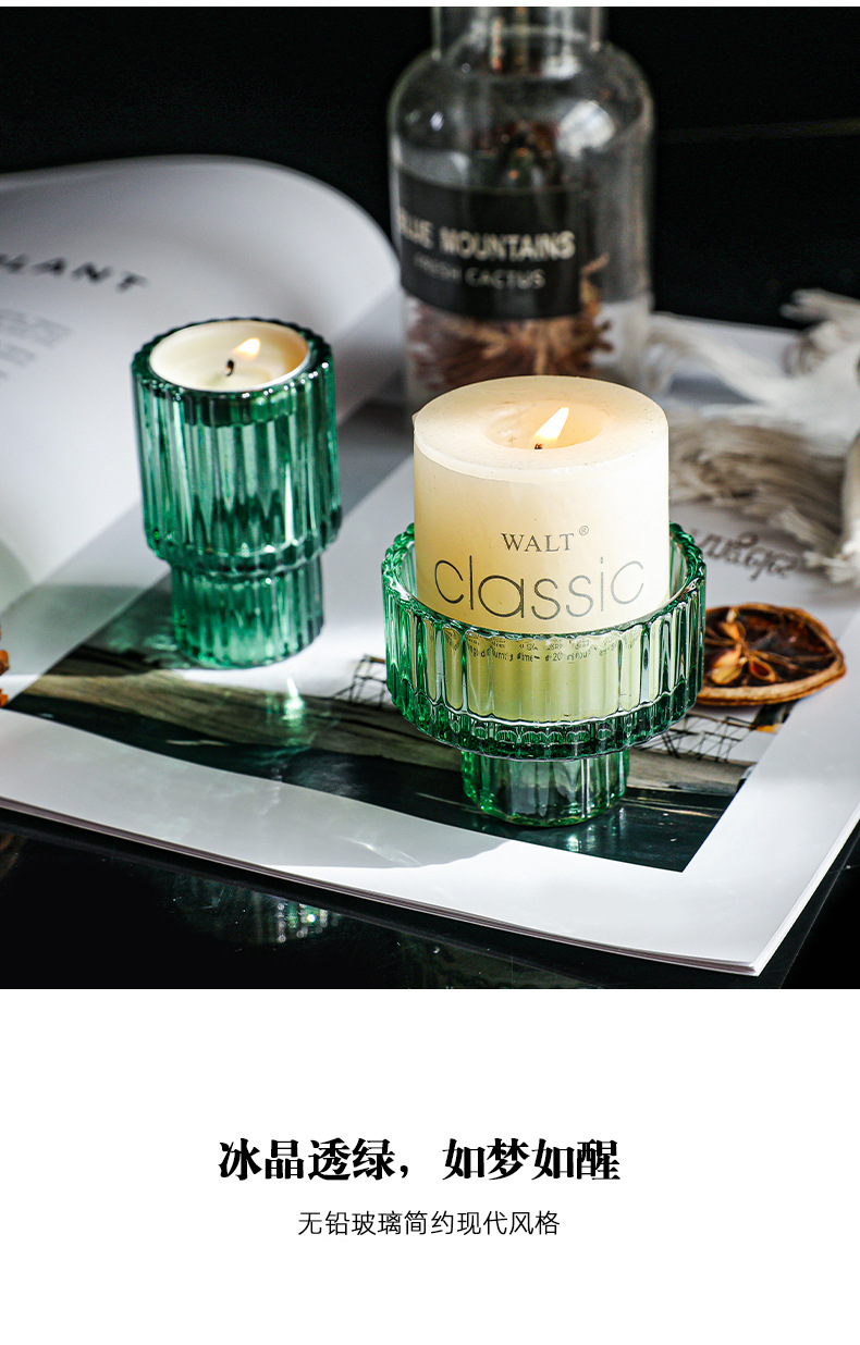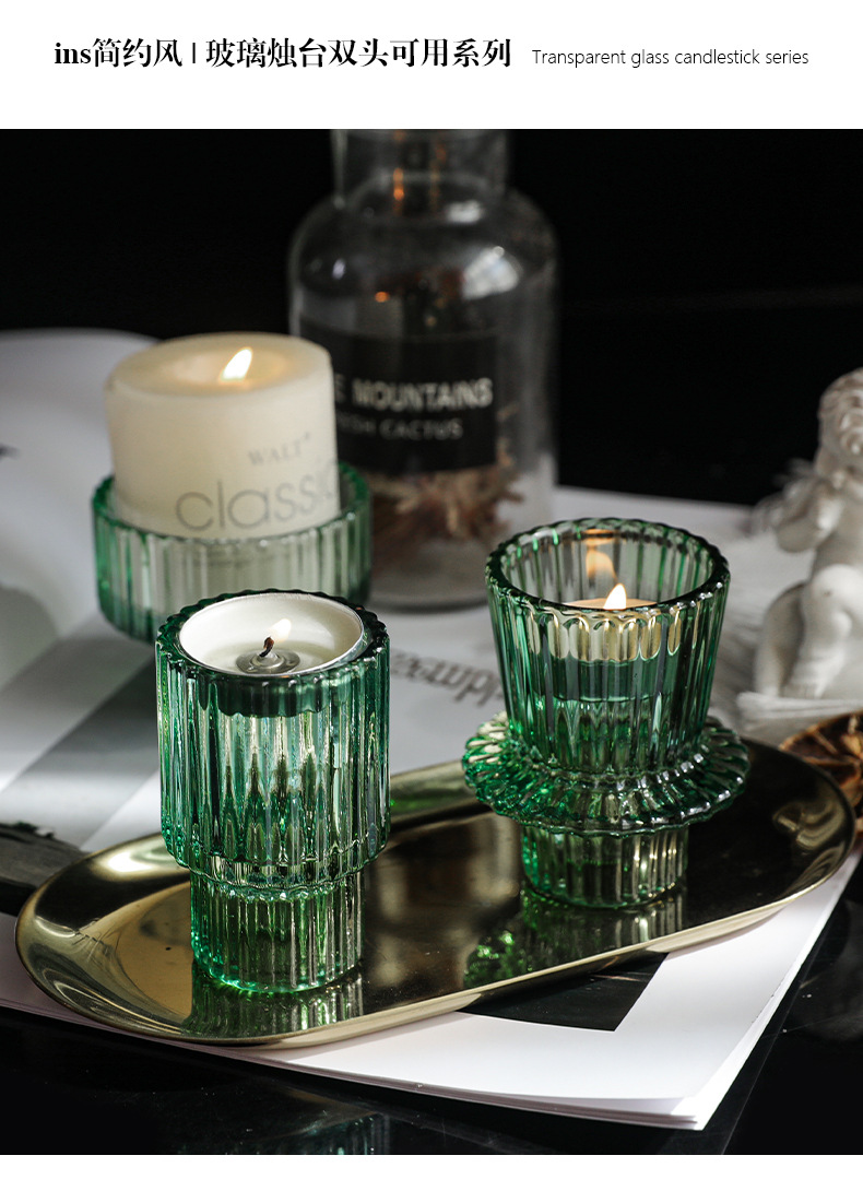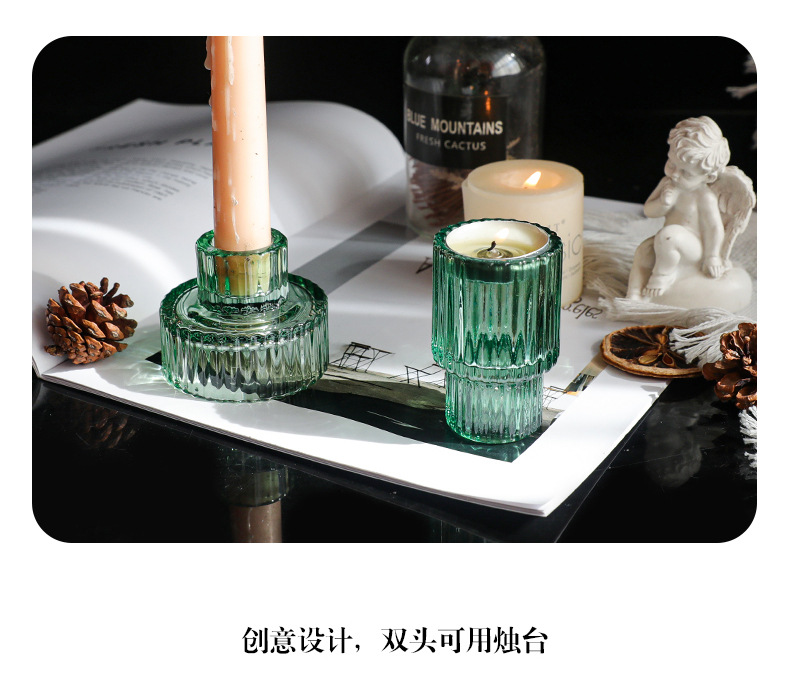 简约创意水晶玻璃烛台酒吧餐厅咖啡厅装饰品摆件小夜灯蜡烛底座