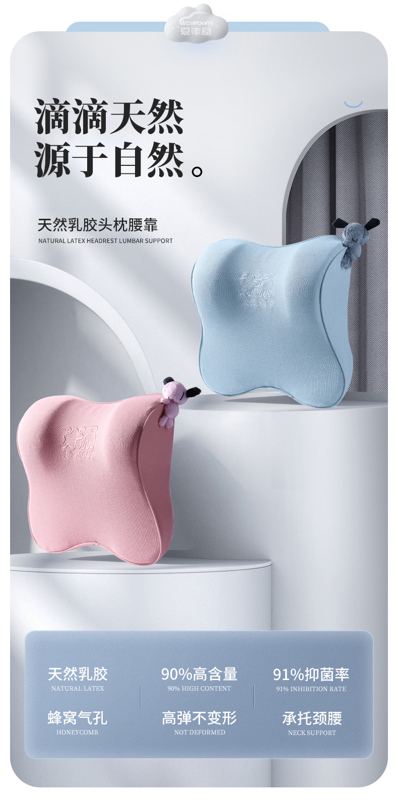 爱车屋汽车头枕乳胶枕可爱车载座椅枕头车用靠枕颈枕车内高档靠垫
