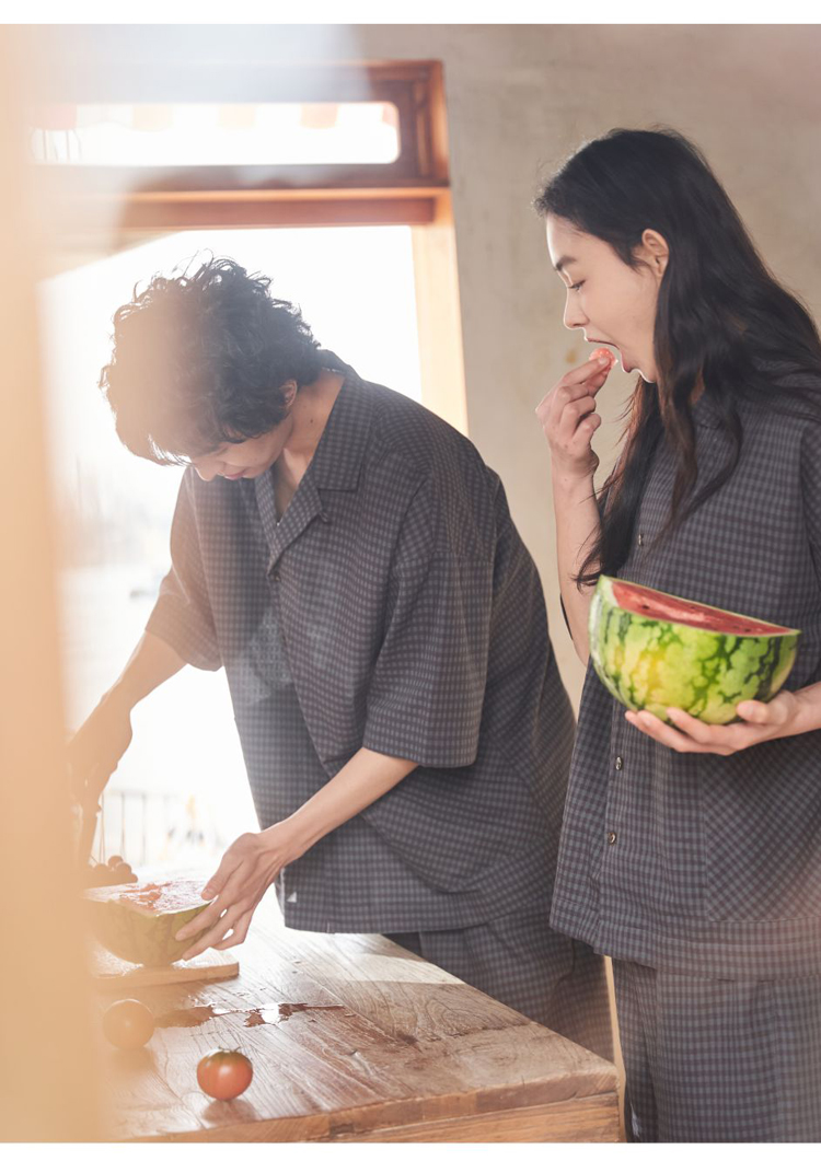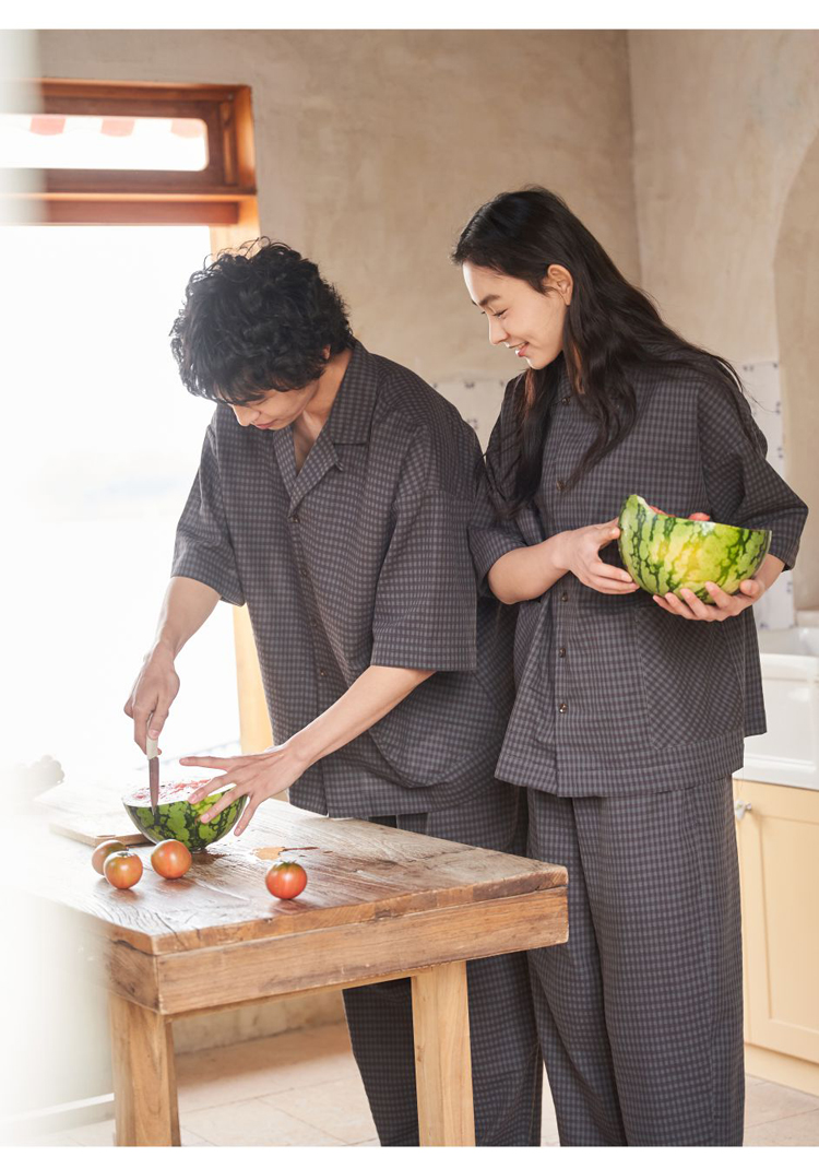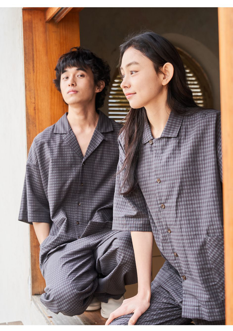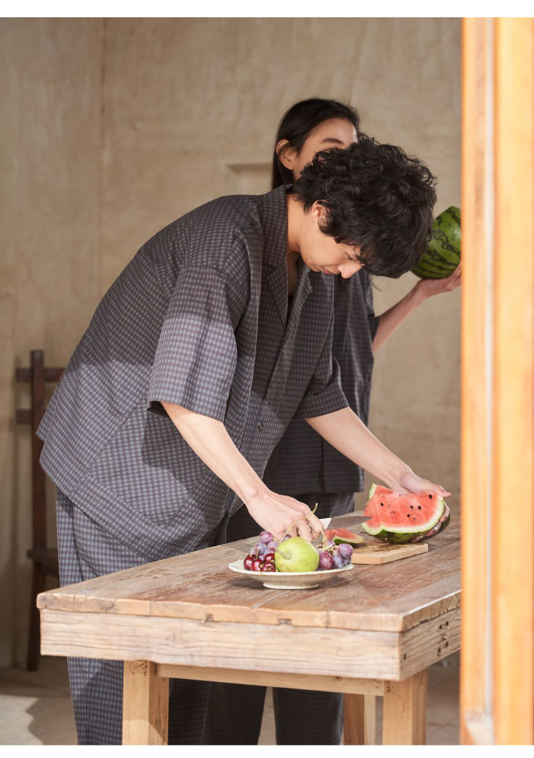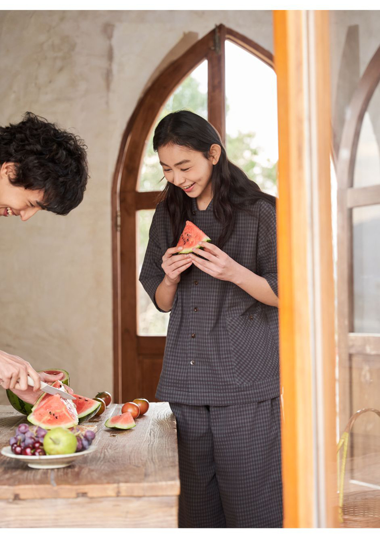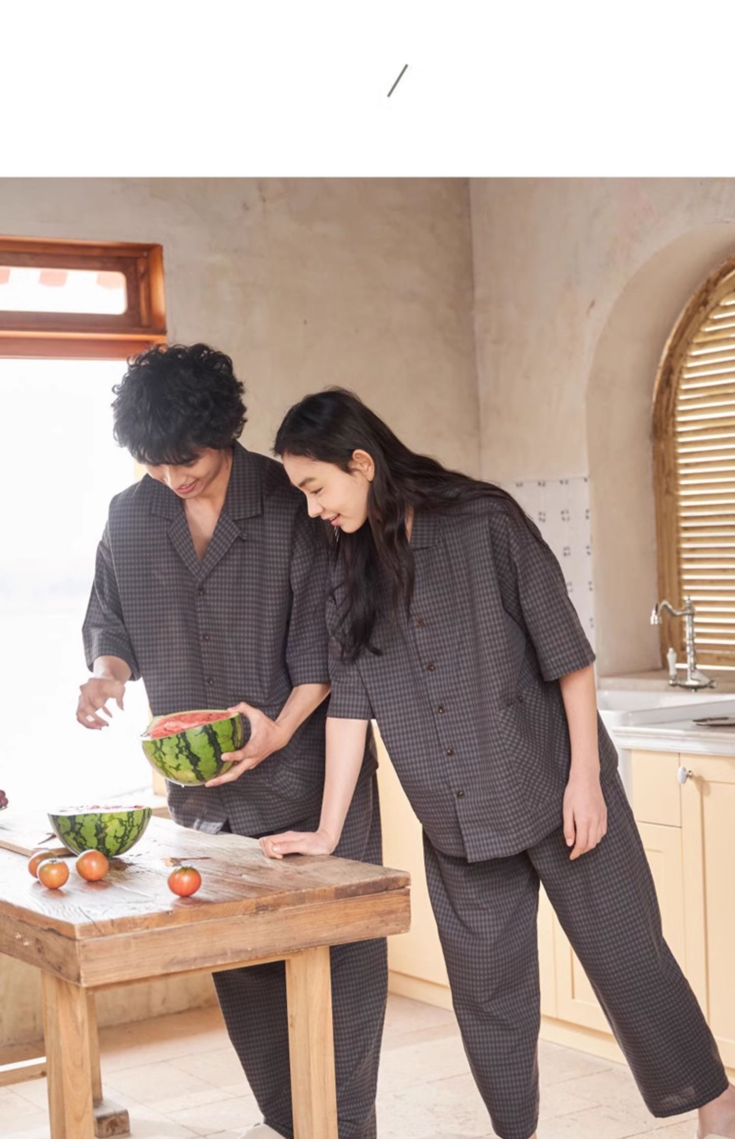 松永春夏男女情侣同款纯棉睡衣短袖九分裤百搭柔软家居服套装薄款