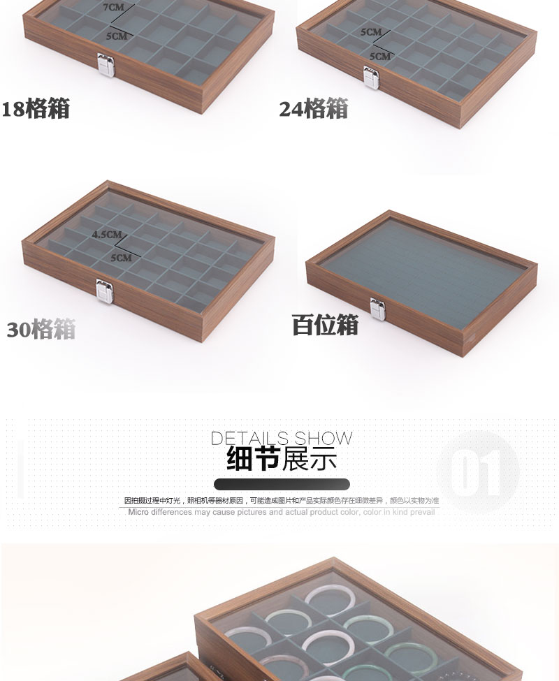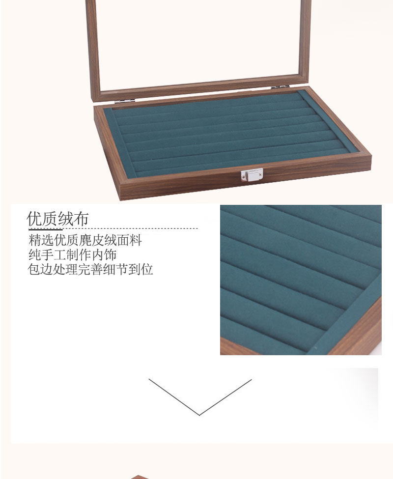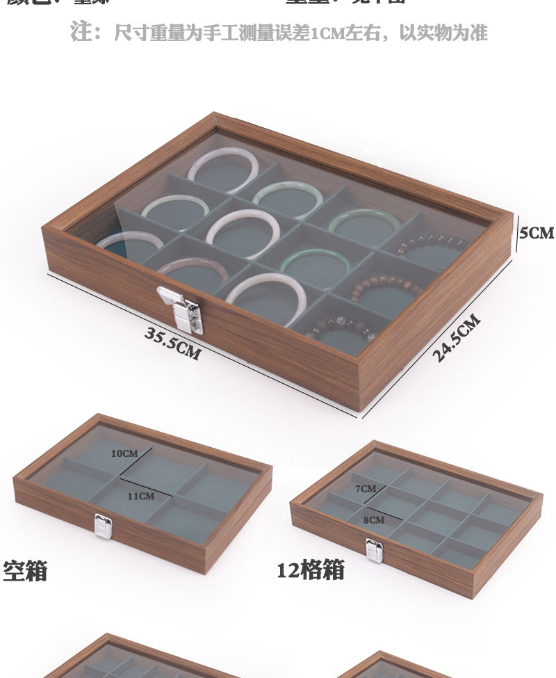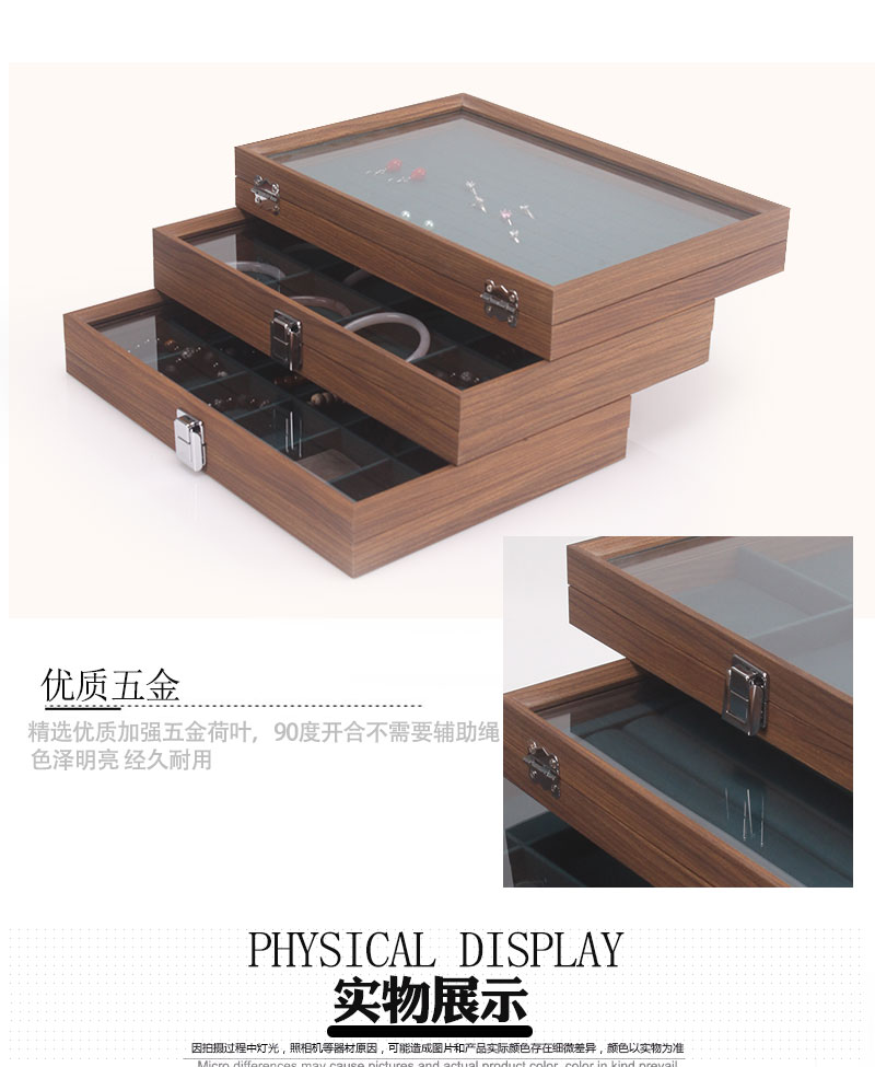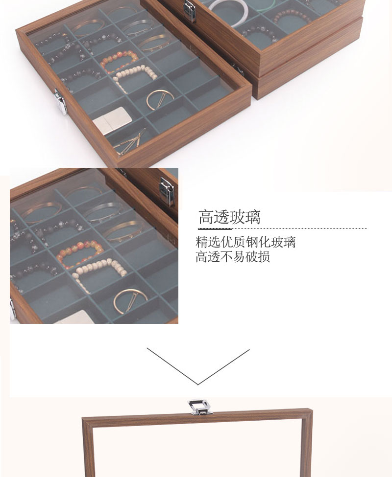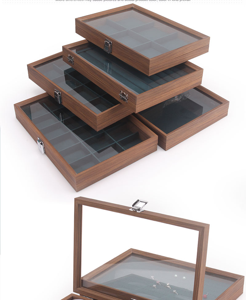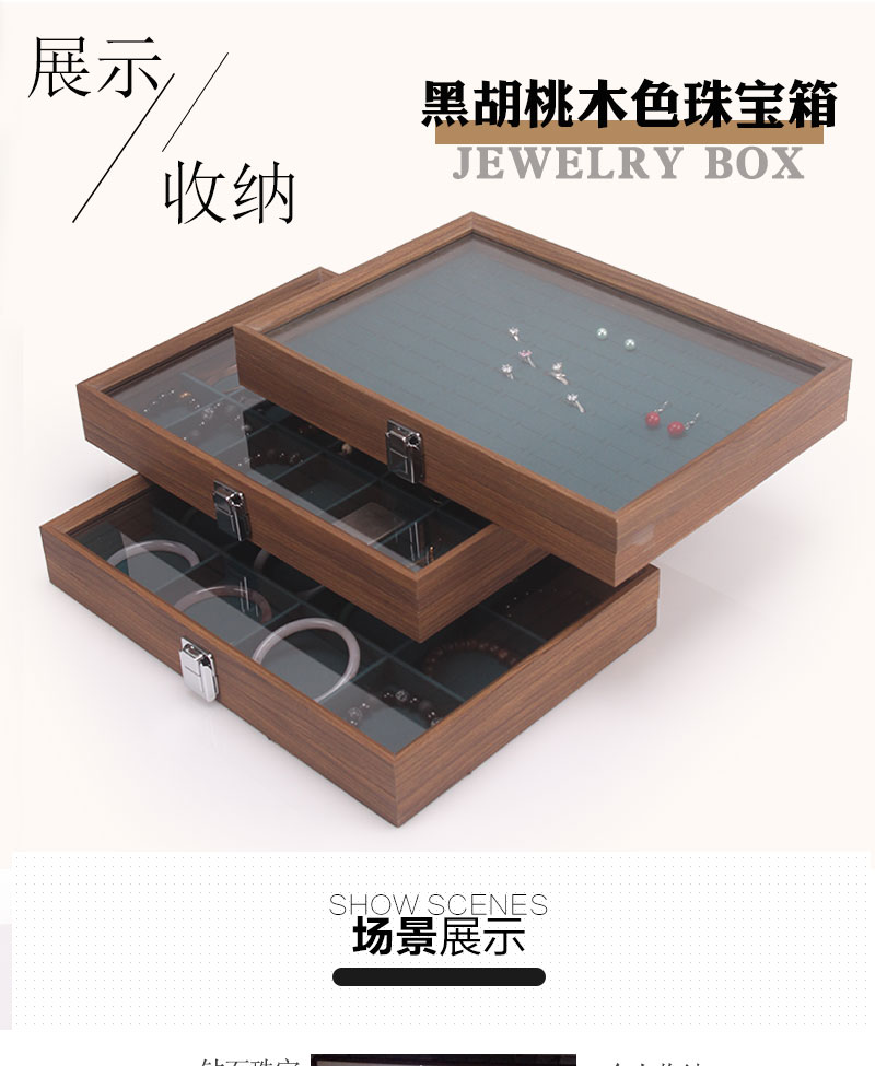 黑胡桃木耳环耳钉首饰箱项链饰品盒耳饰戒指透明玻璃收纳盒桌面