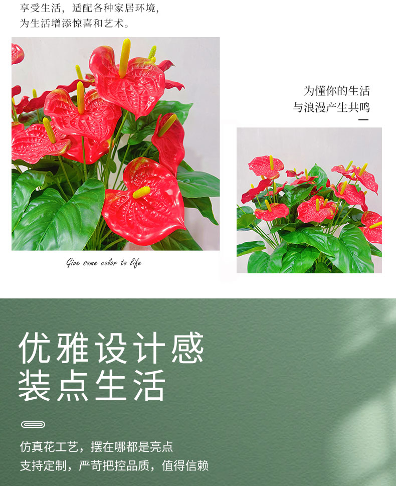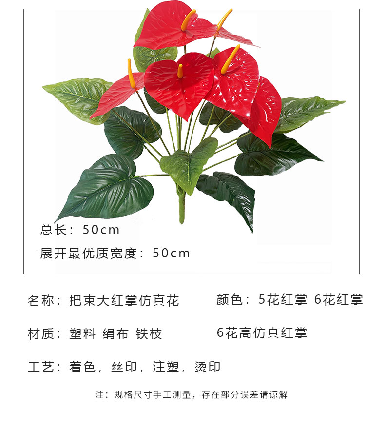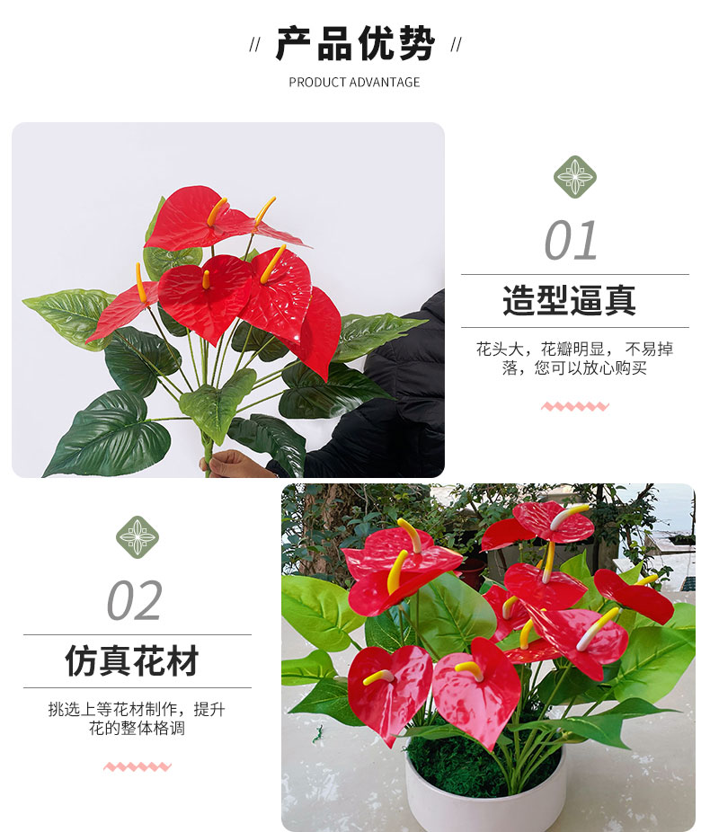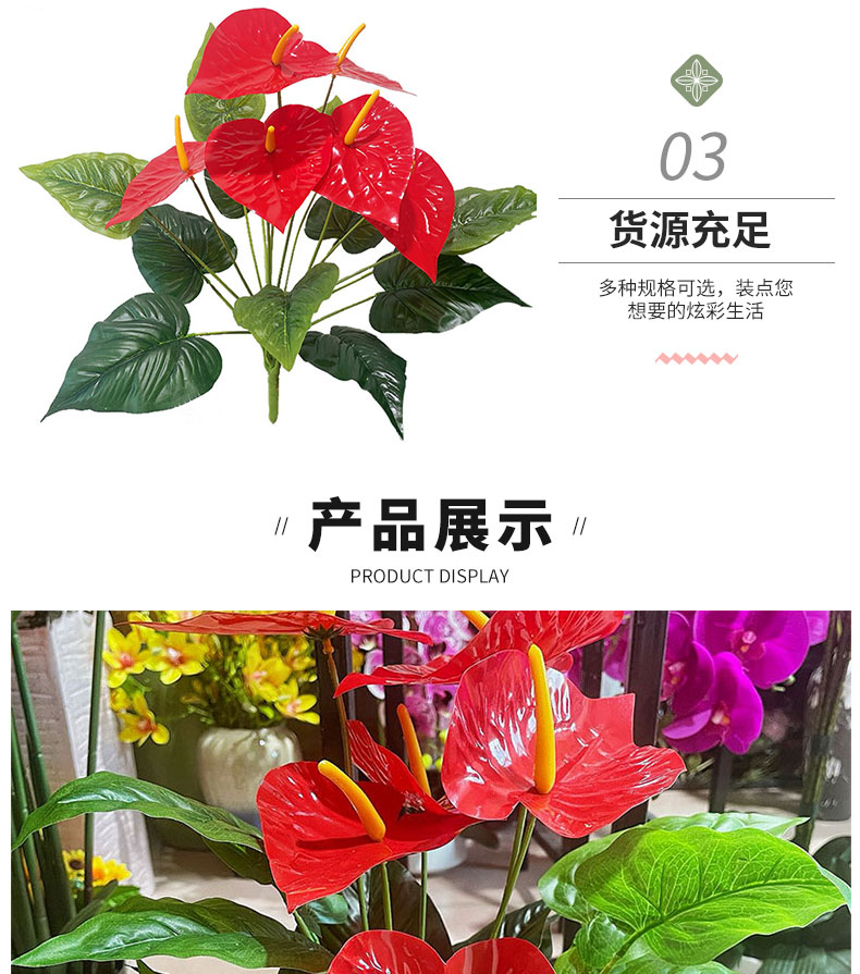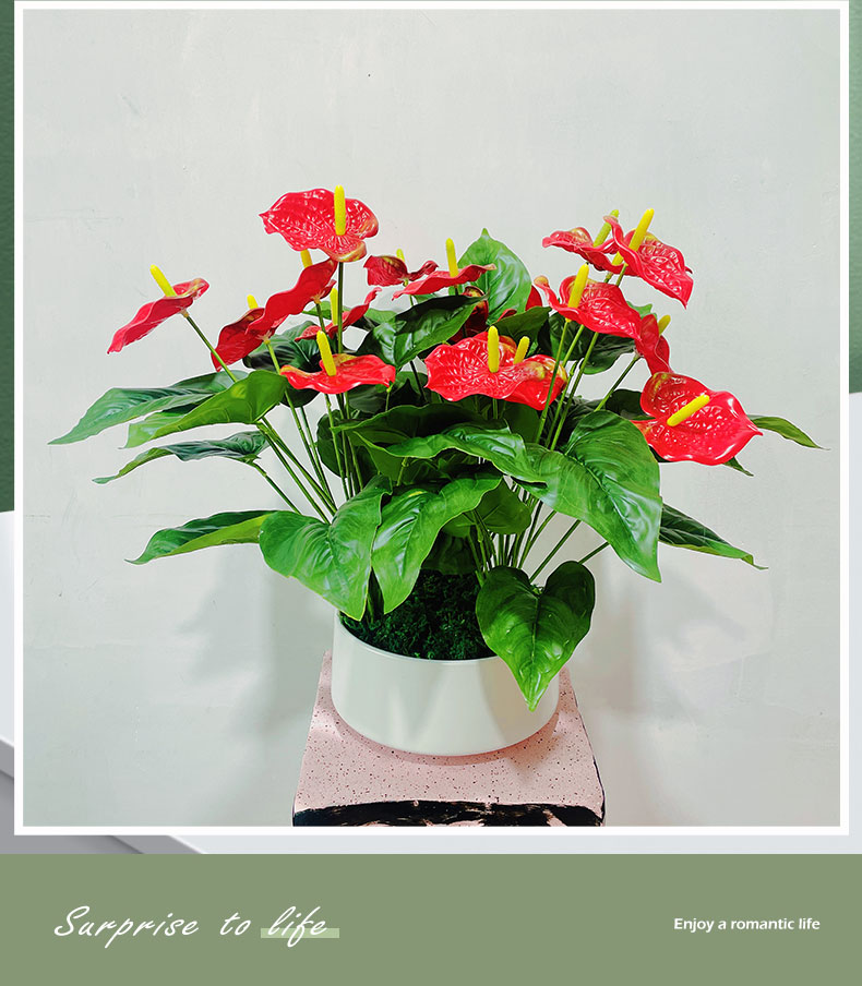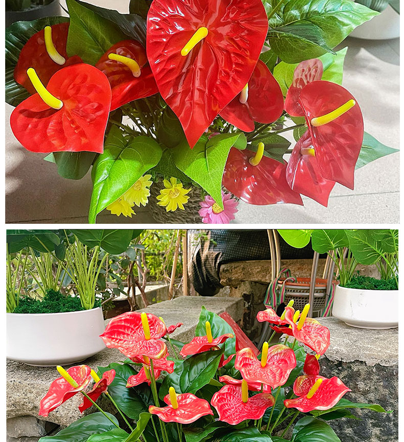 红掌一束卫生间办公室一品红花箱塑胶假花装饰花卉仿真花高档摆设