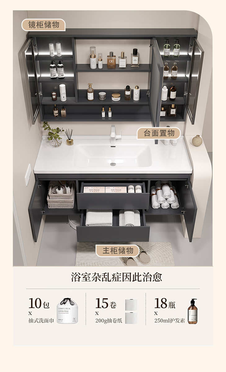 JONIMW橡木浴室柜广东陶瓷一体盆卫生间洗手台洗漱洗脸盆柜组合