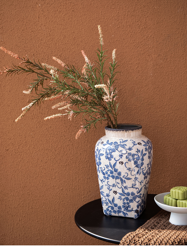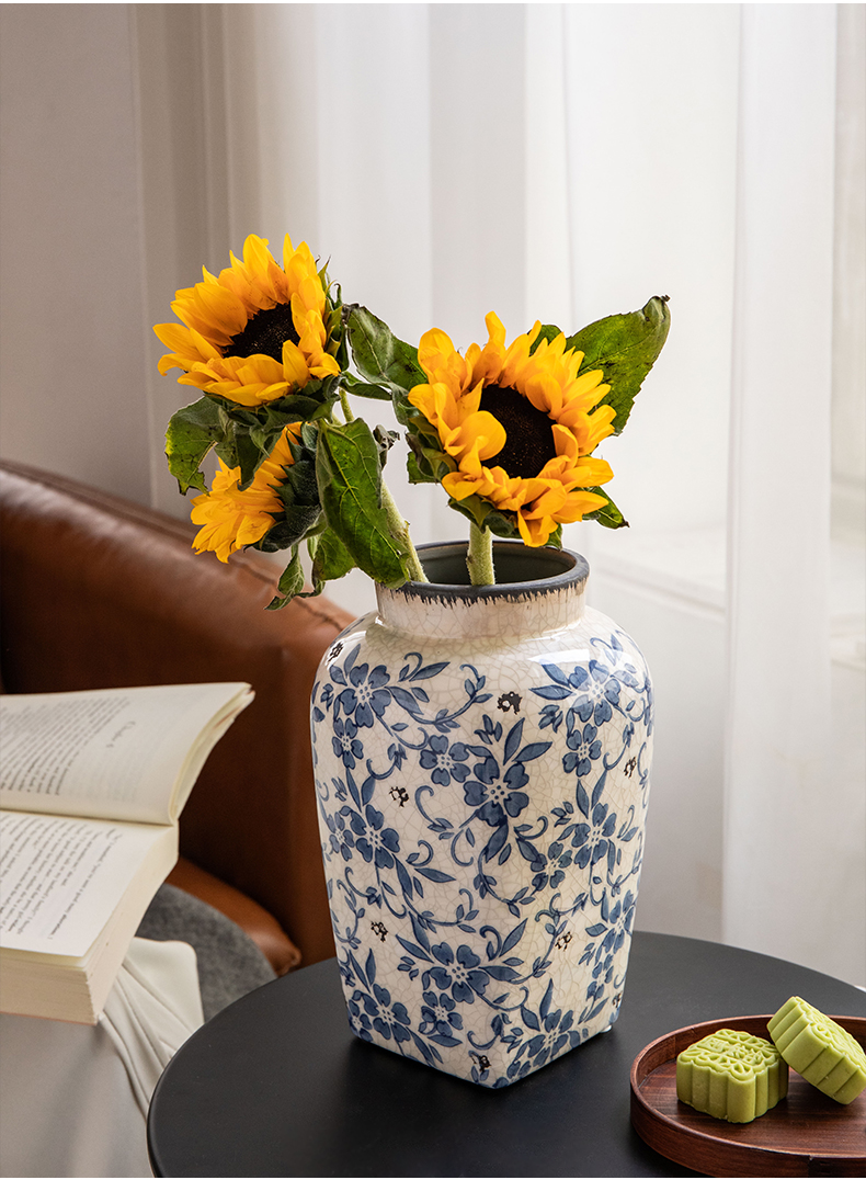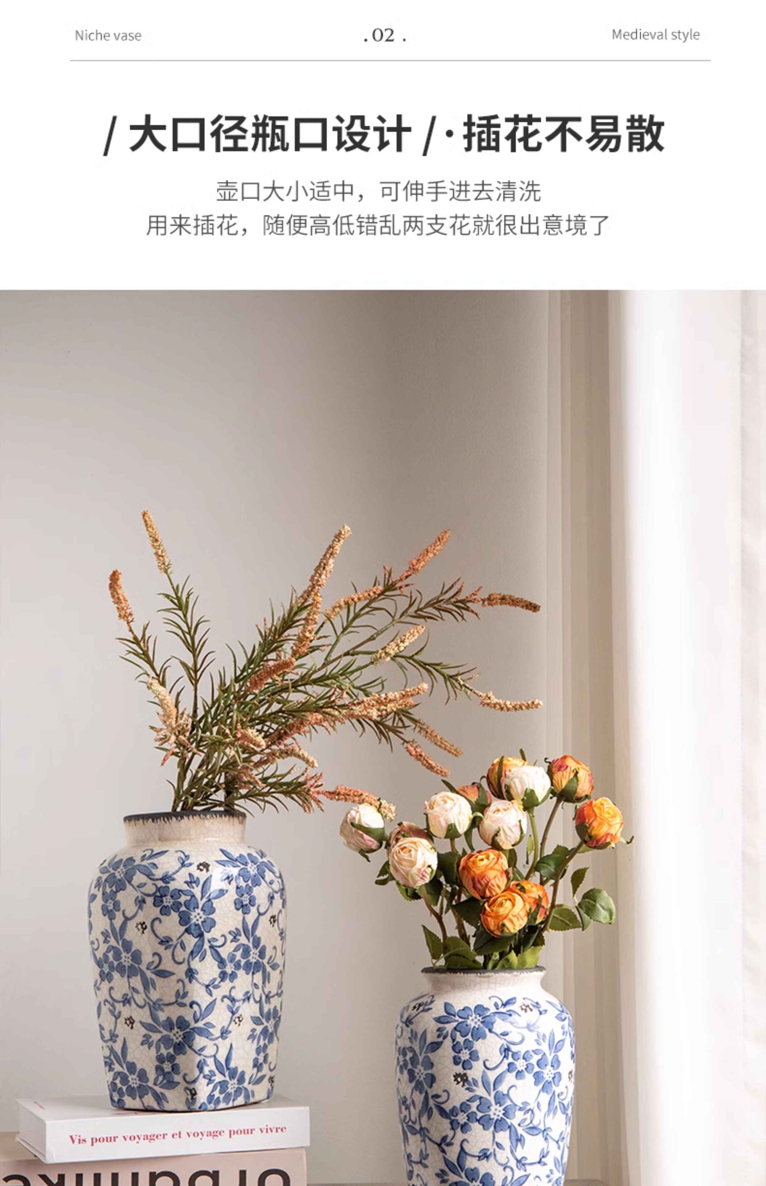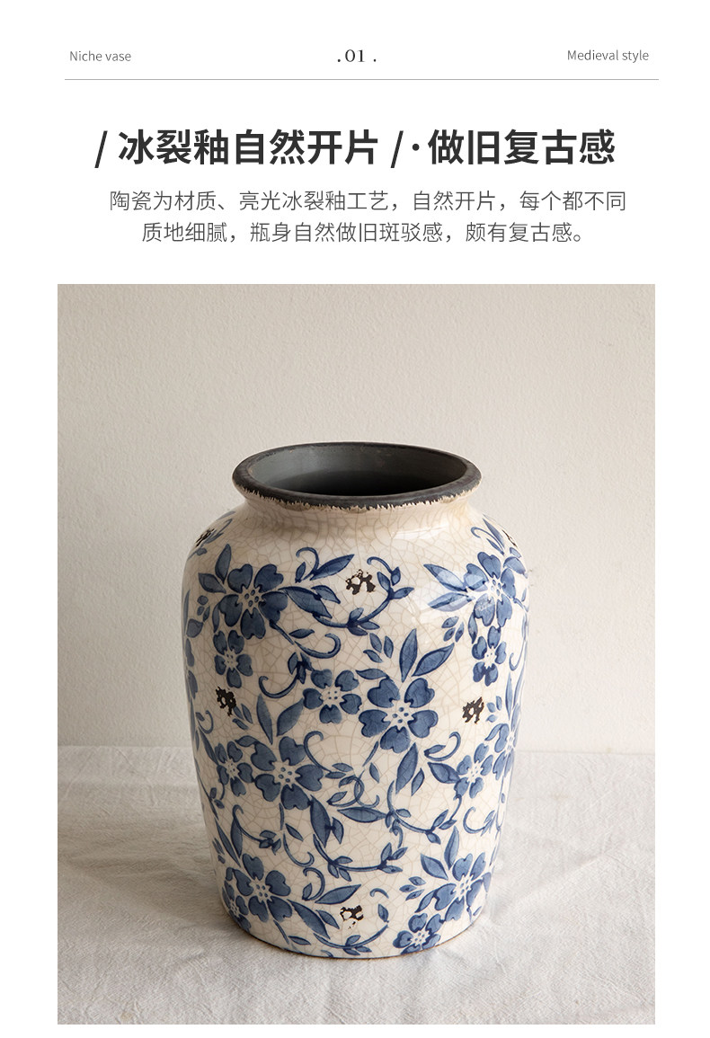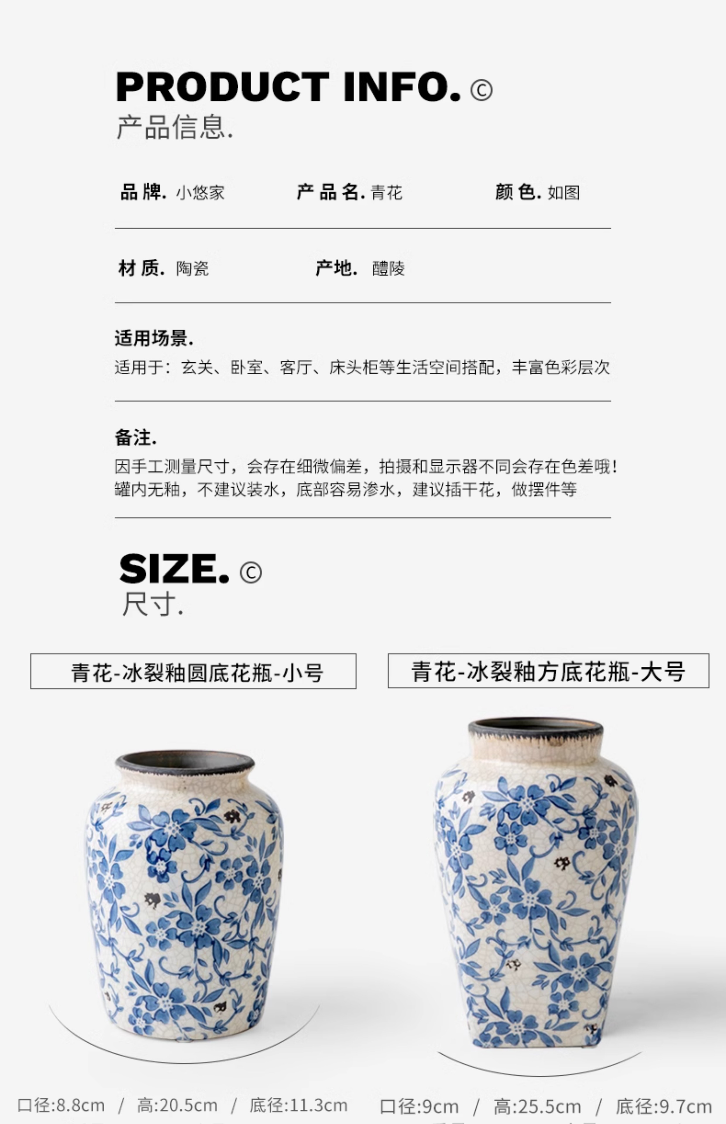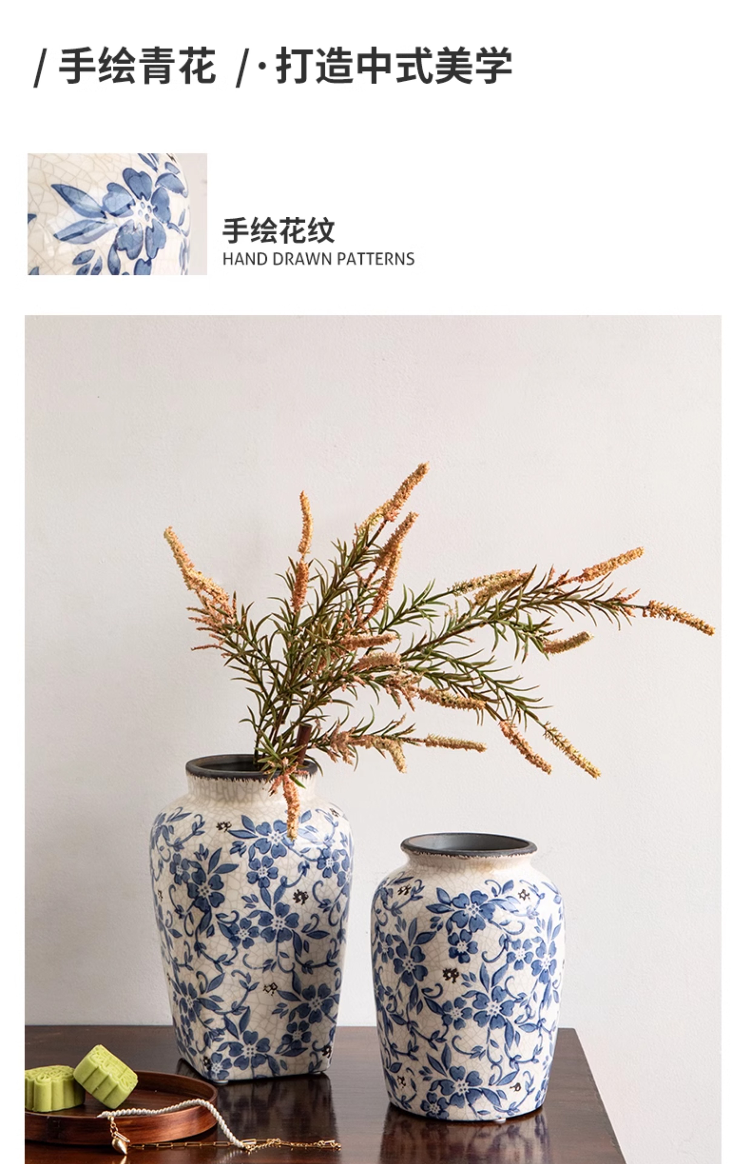 小悠家〖中式美学〗青花瓷复古冰裂纹陶瓷花瓶客厅玄关高级感摆件