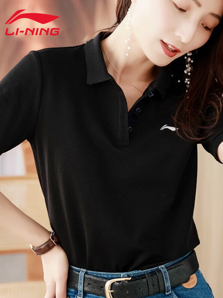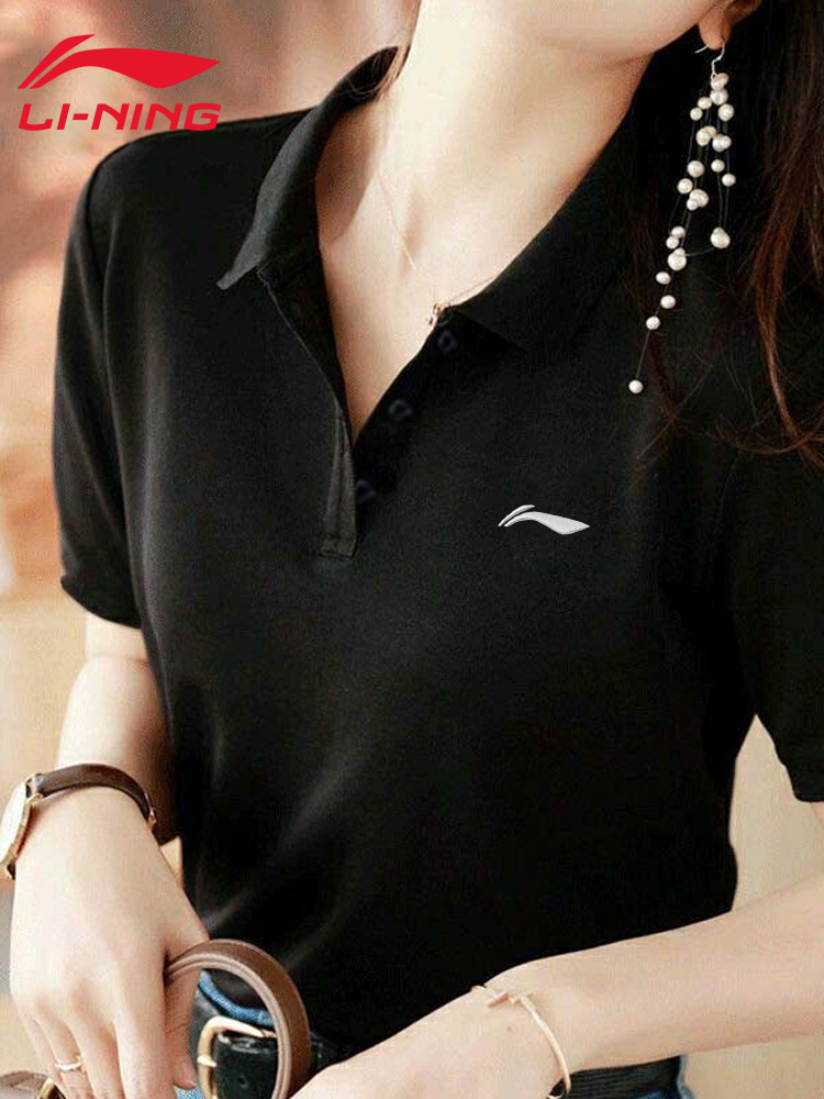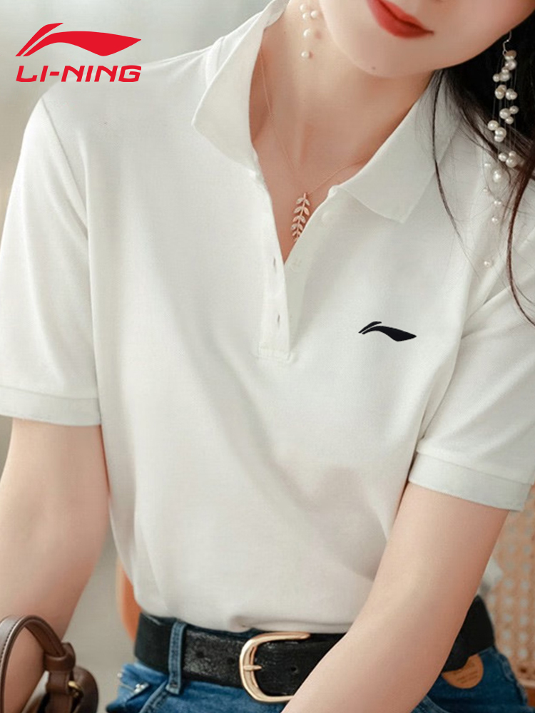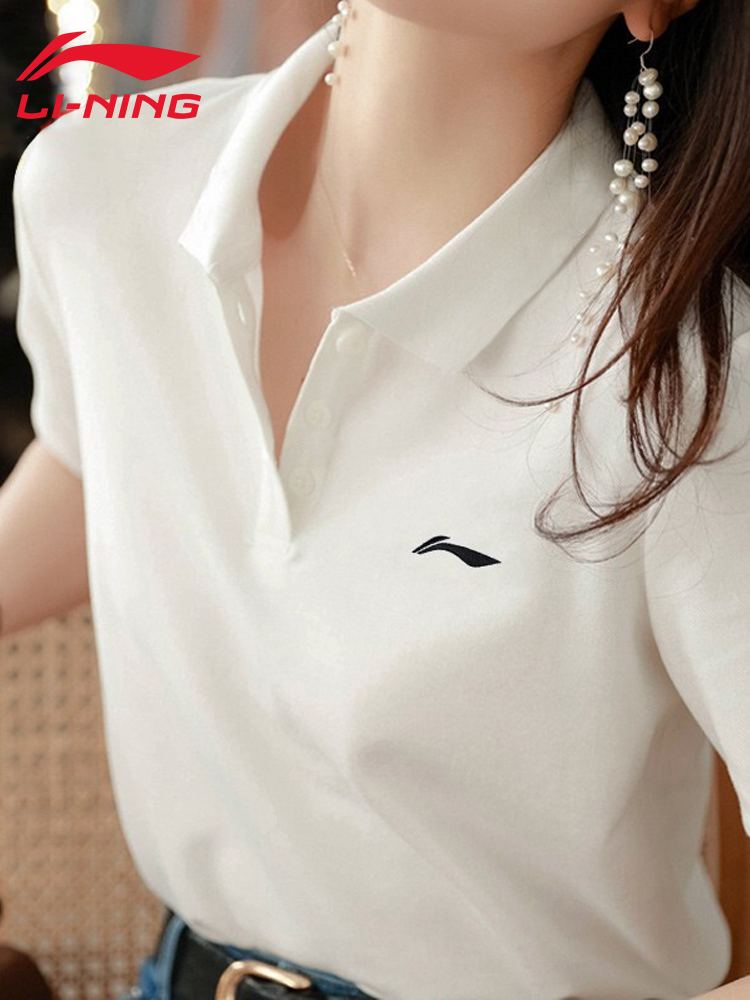 李宁速干翻领polo衫女士冰丝轻薄透气短袖时尚百搭 运动t恤夏季款