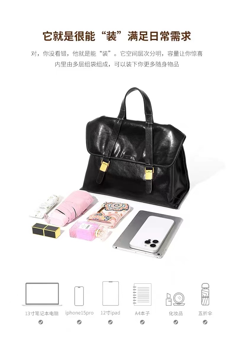 游历公文包头层植鞣牛皮手提电脑包斜挎男女山行双肩包