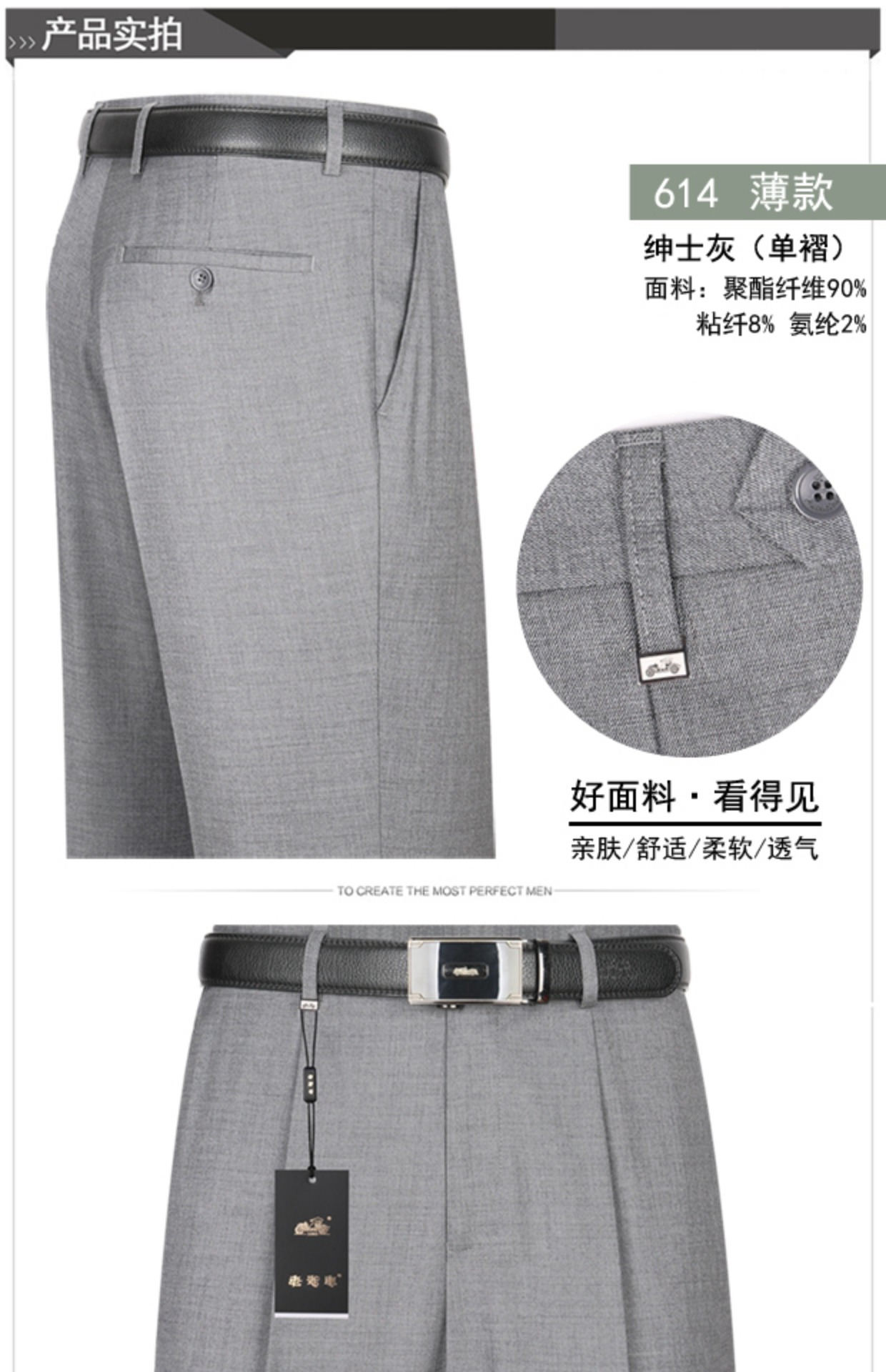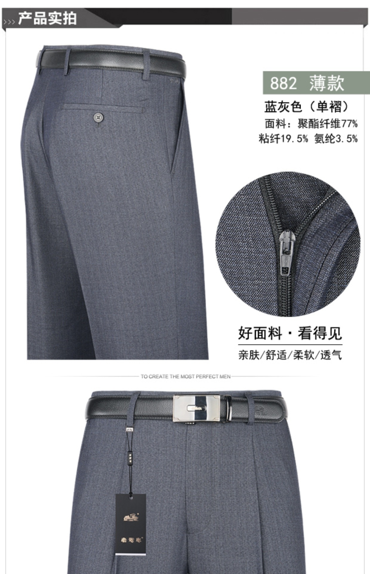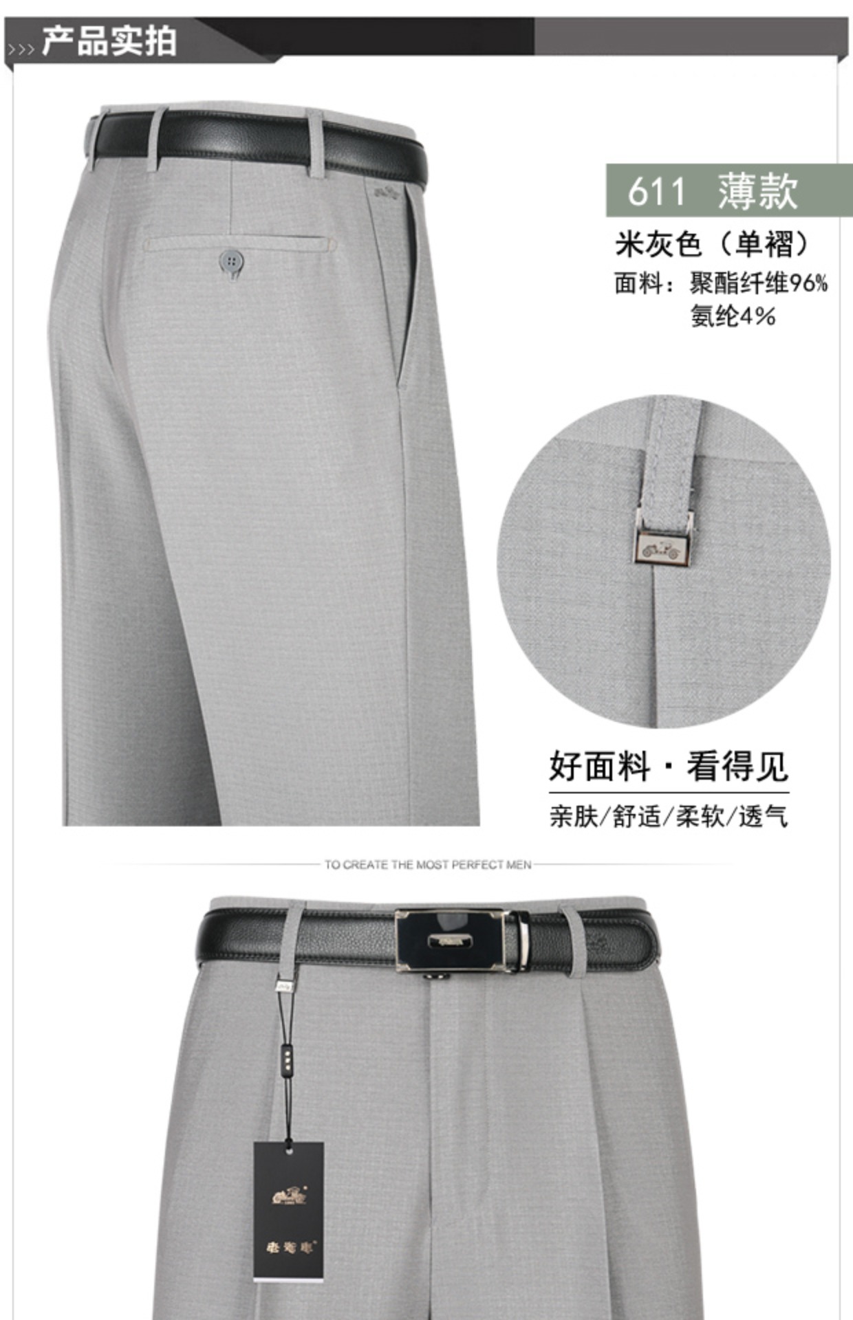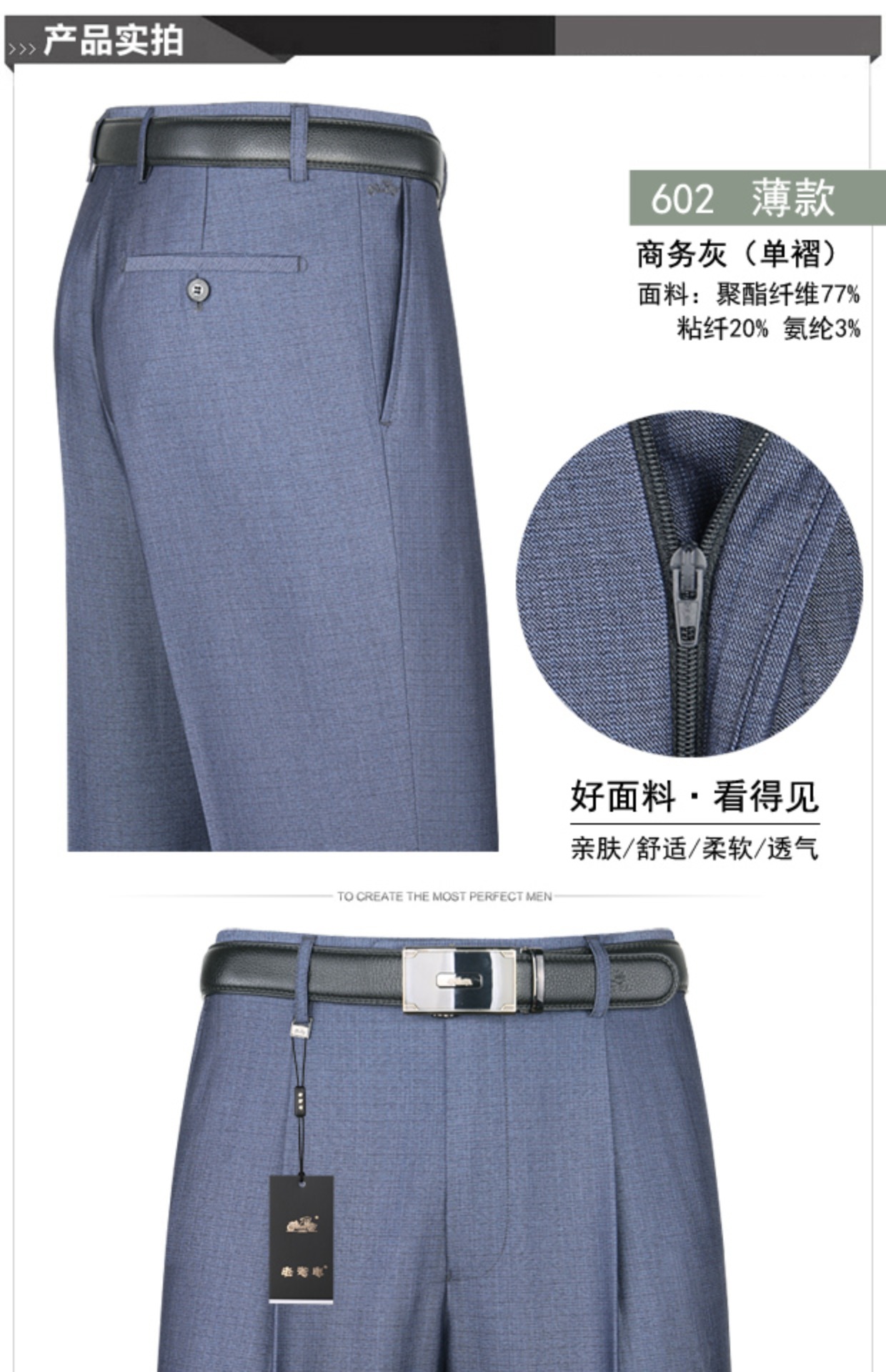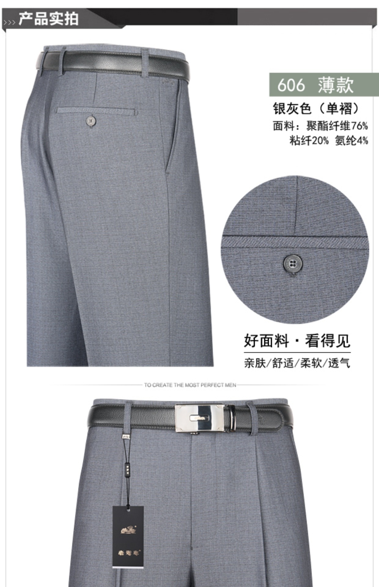 老爷车男士中年夏季薄款西裤宽松直筒免烫高腰西装裤爸爸装长裤子
