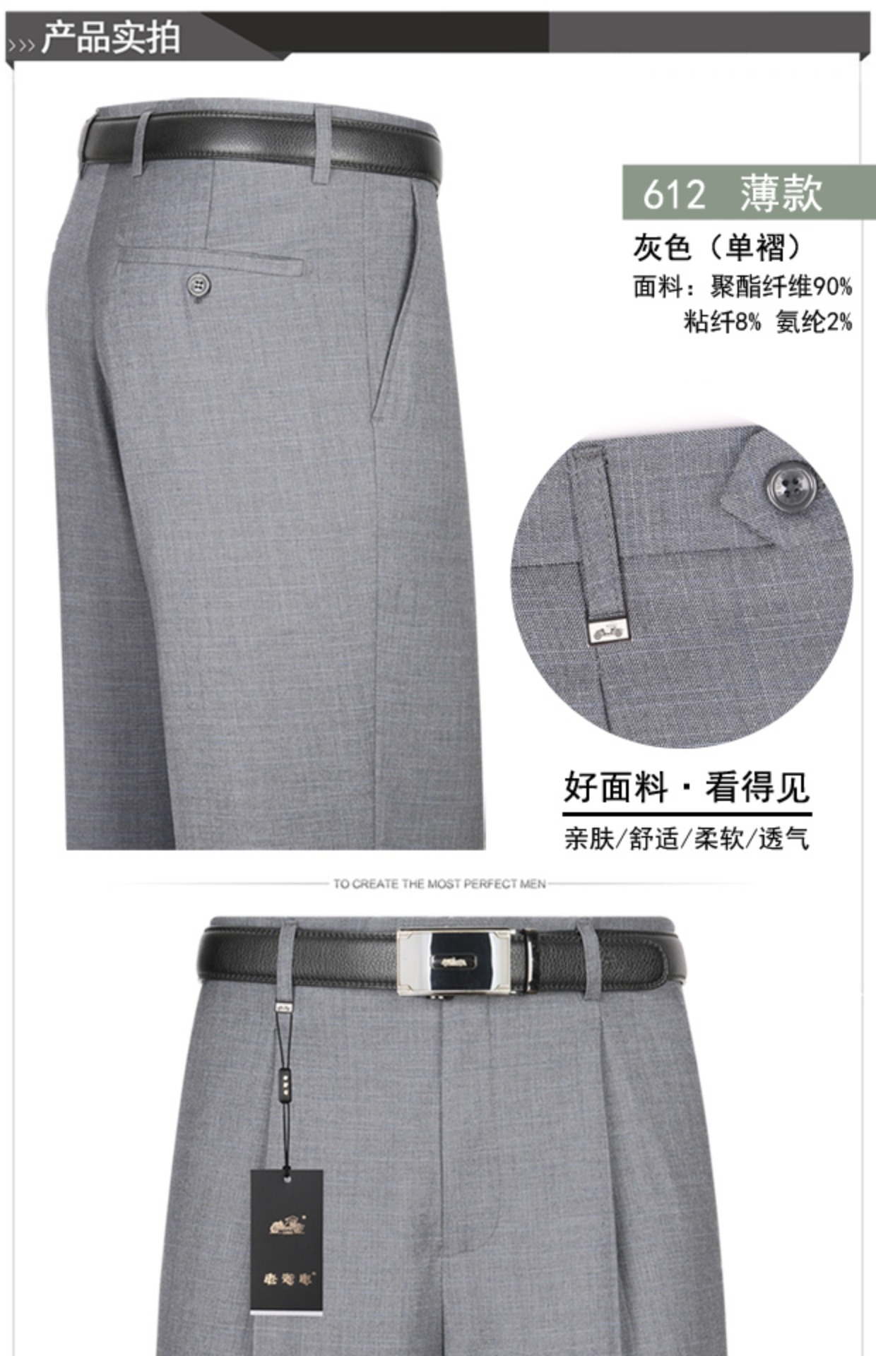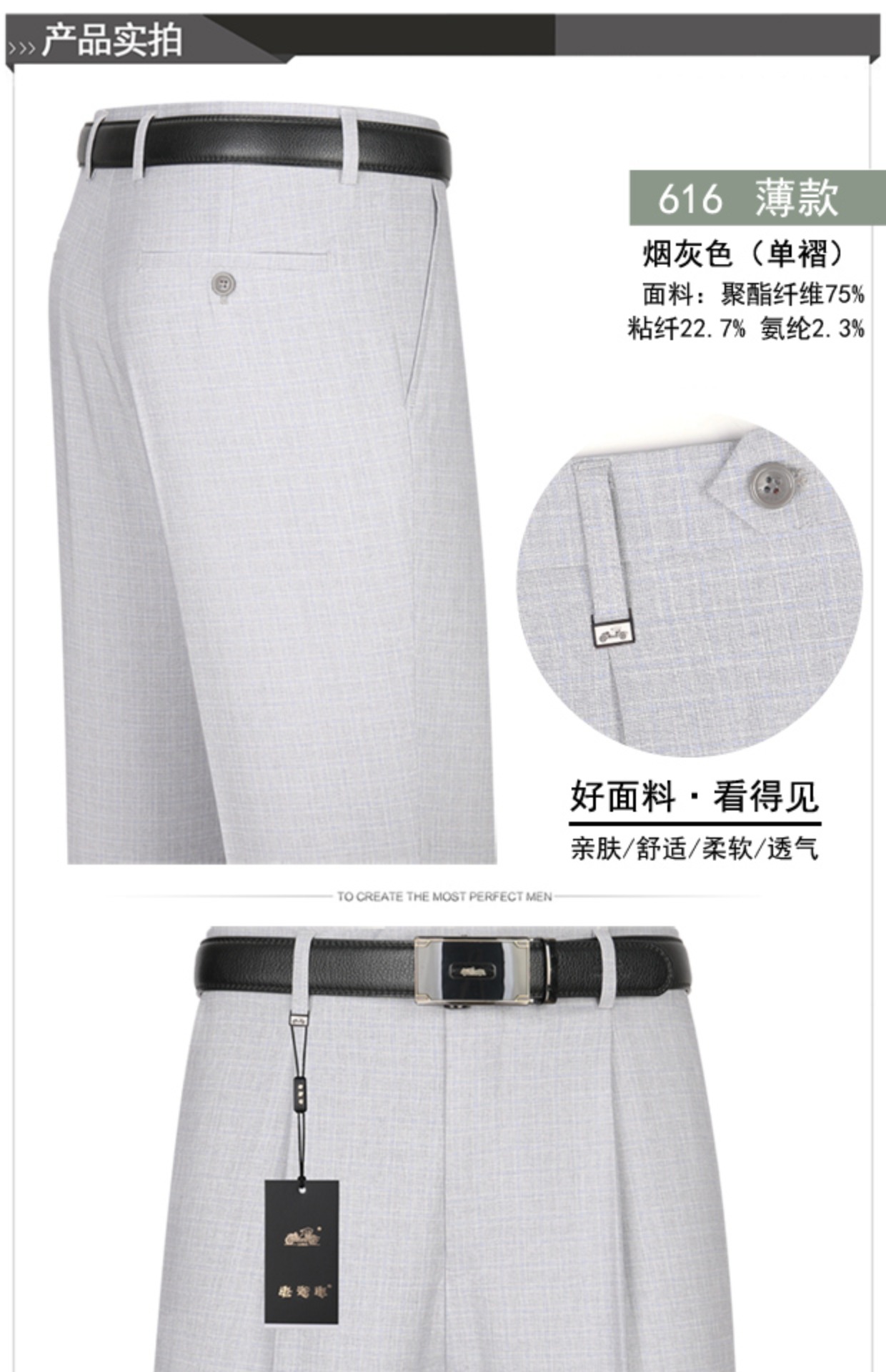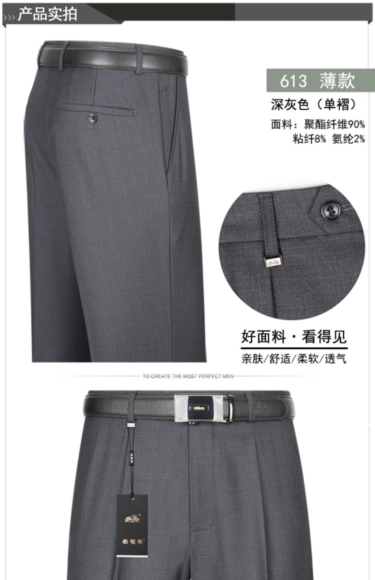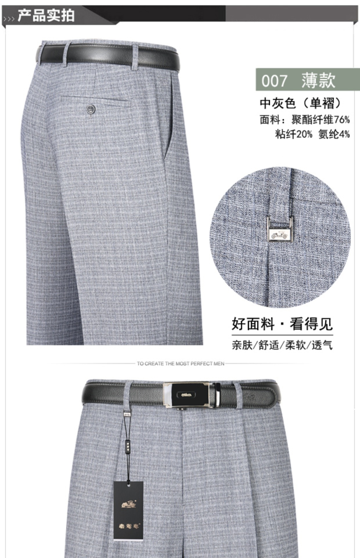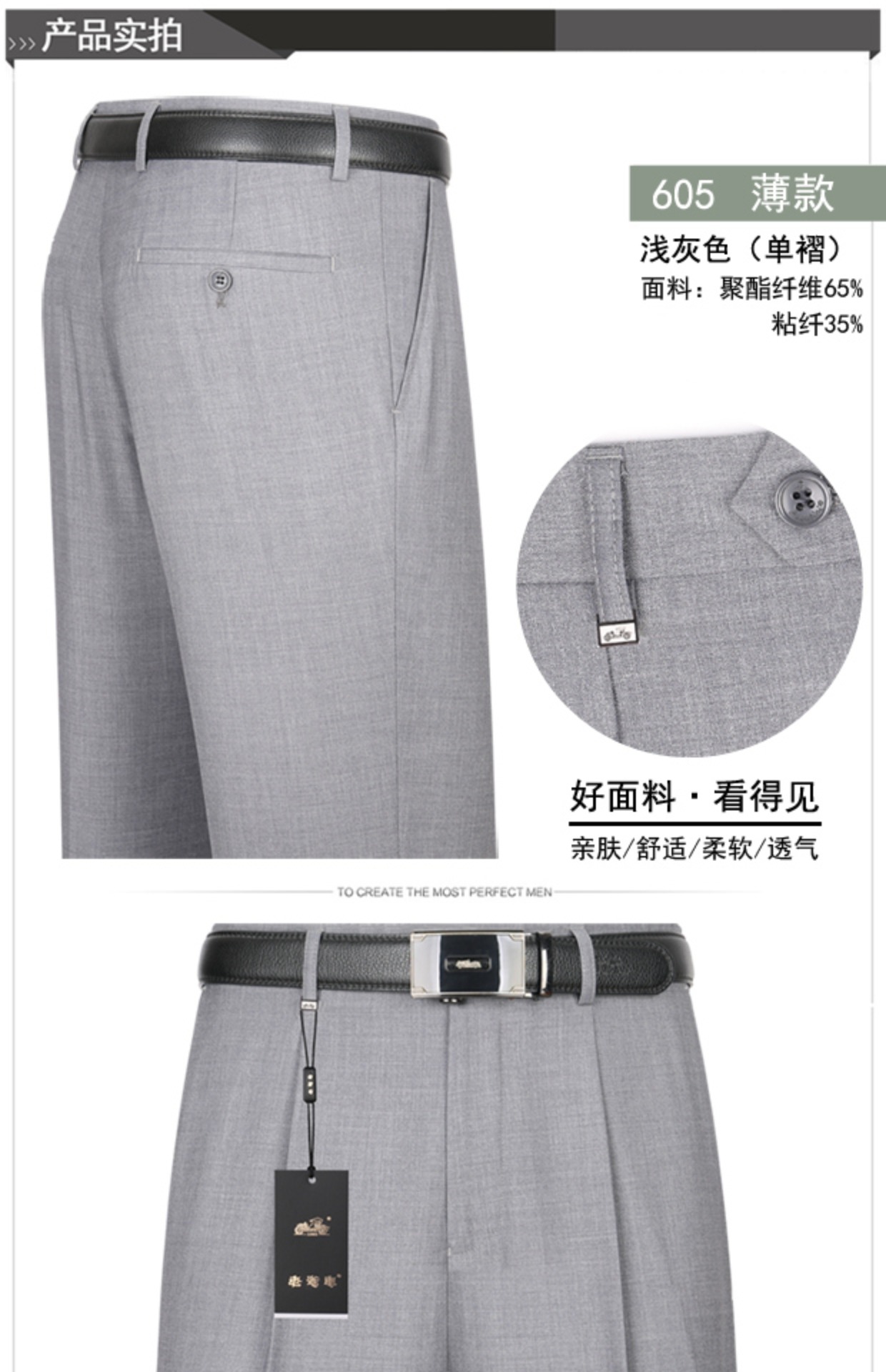 老爷车男士中年夏季薄款西裤宽松直筒免烫高腰西装裤爸爸装长裤子