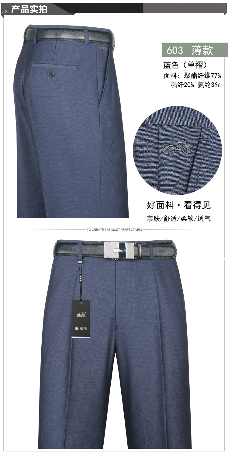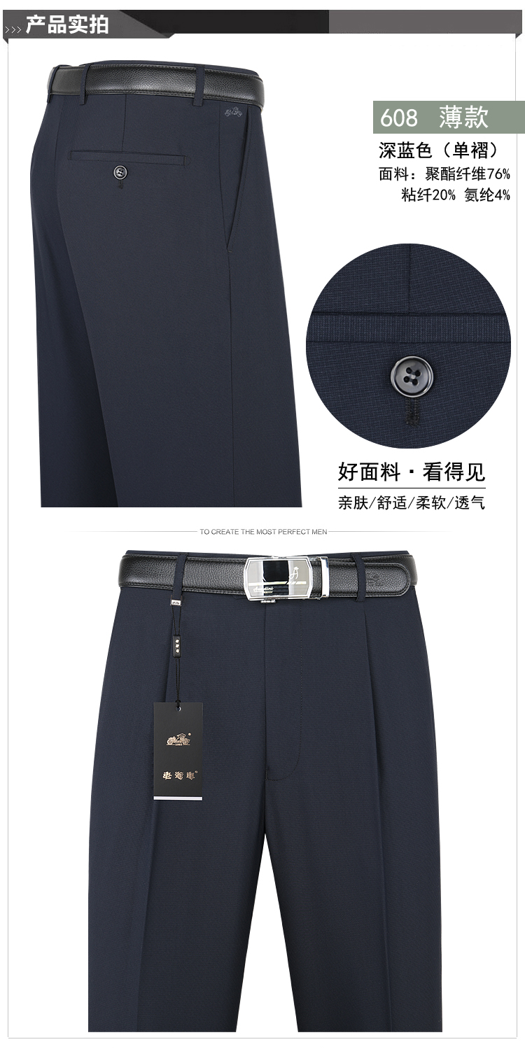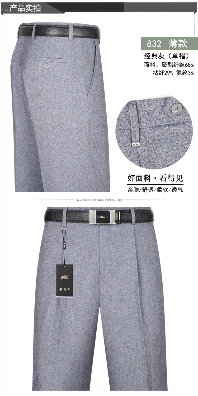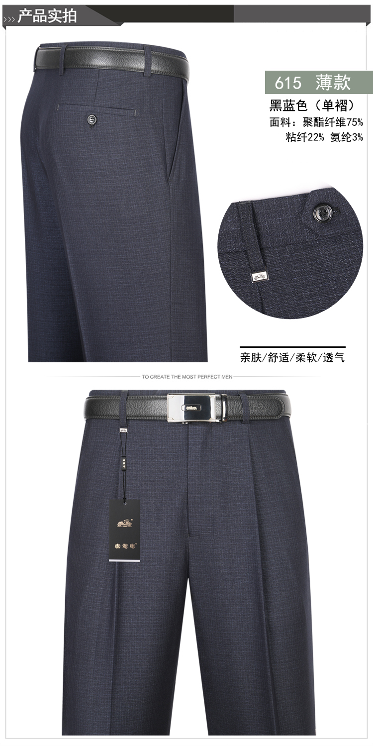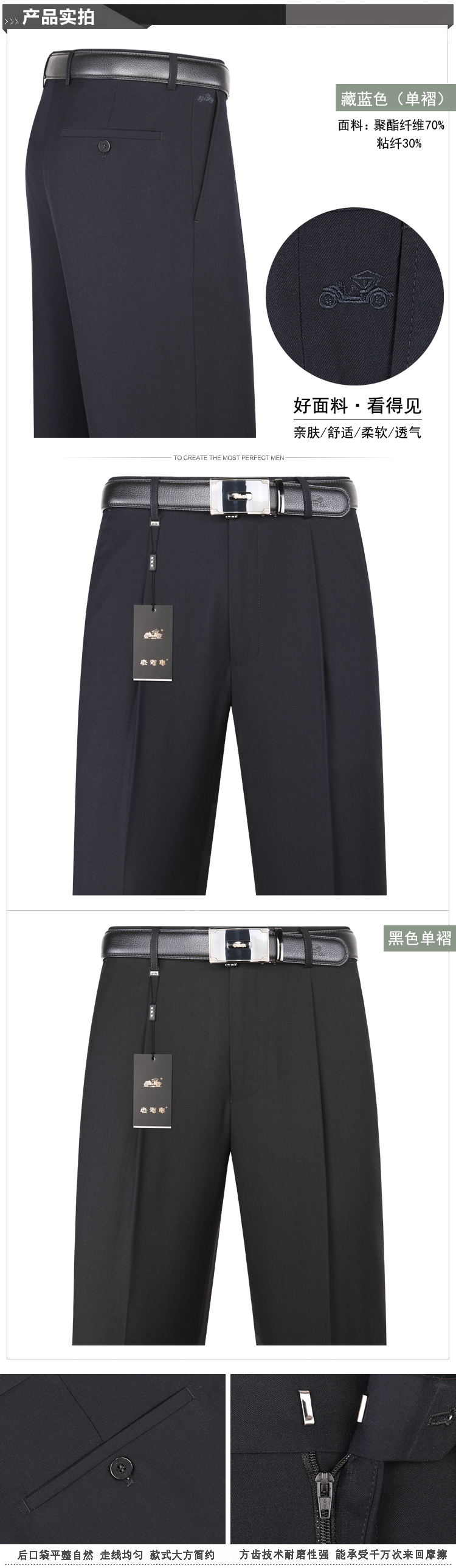 老爷车男士中年夏季薄款西裤宽松直筒免烫高腰西装裤爸爸装长裤子