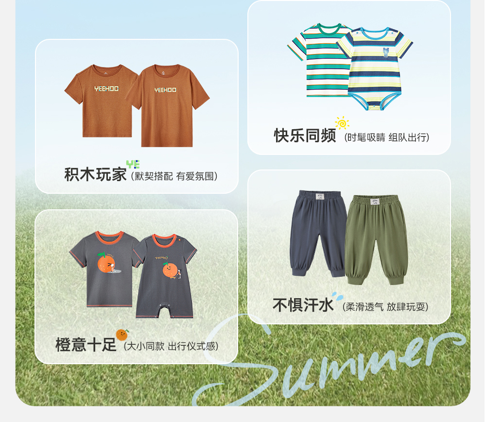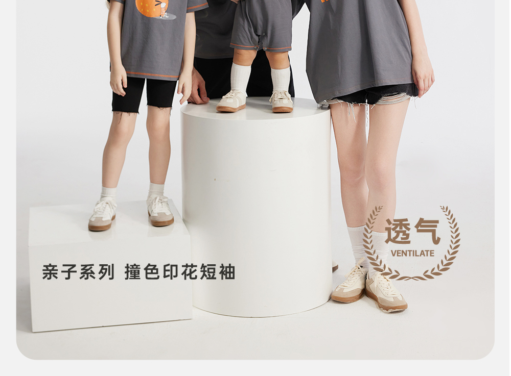 英氏亲子装一家三口四口新款夏天速干婴儿薄儿童短袖t恤夏装
