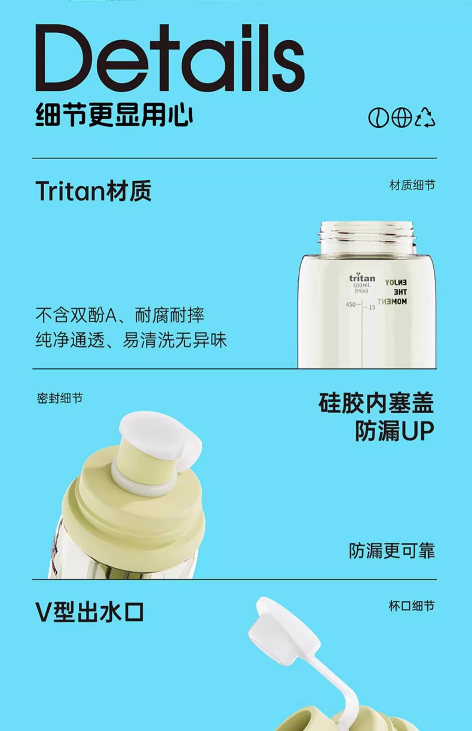 高颜值水杯女生2025新款tritan吸管杯子学生夏季双饮便携随手杯