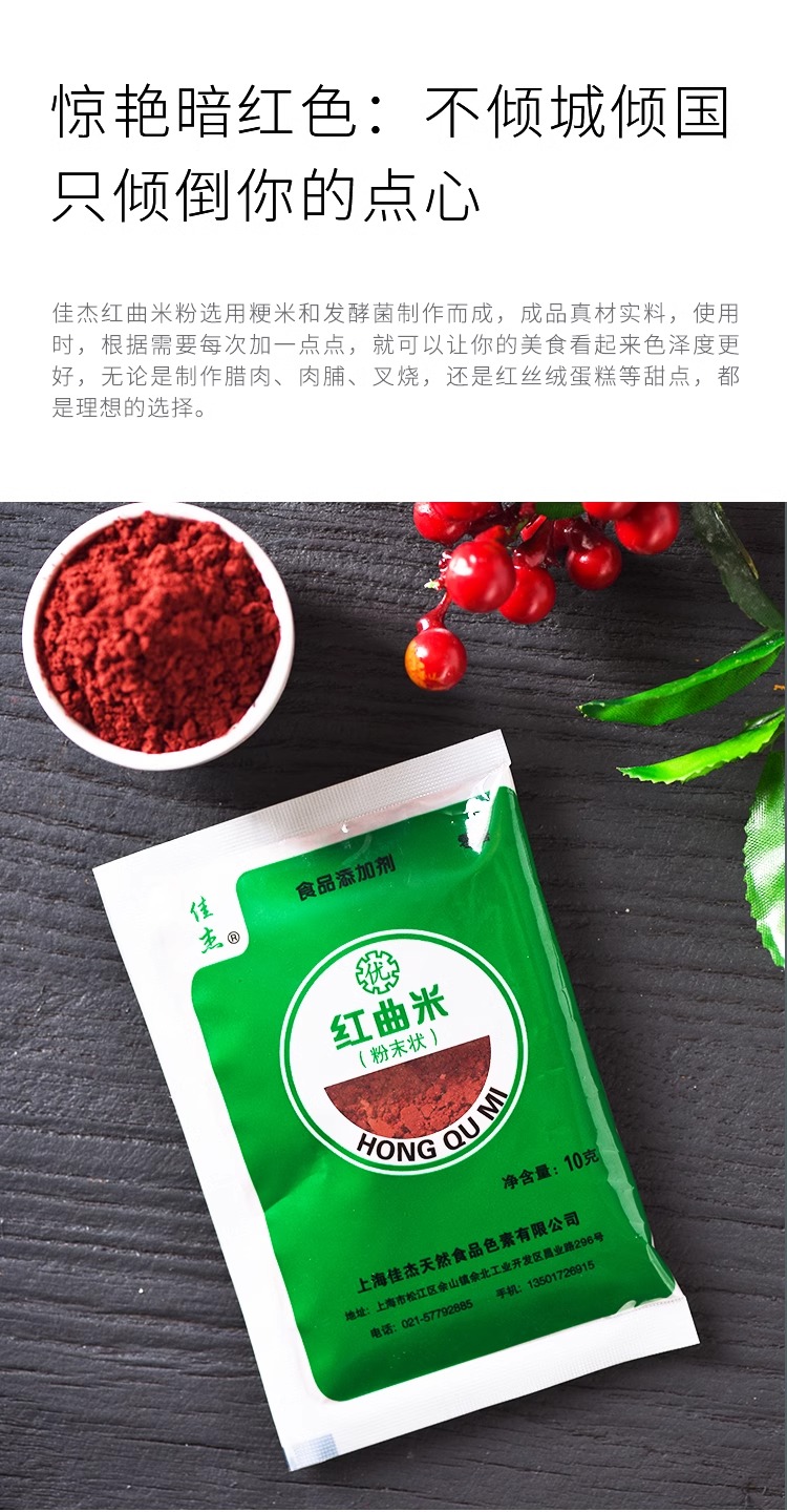 佳杰红曲粉食用香肠灌肠色素红丝绒蛋糕烘焙卤肉专用米粉10克小包