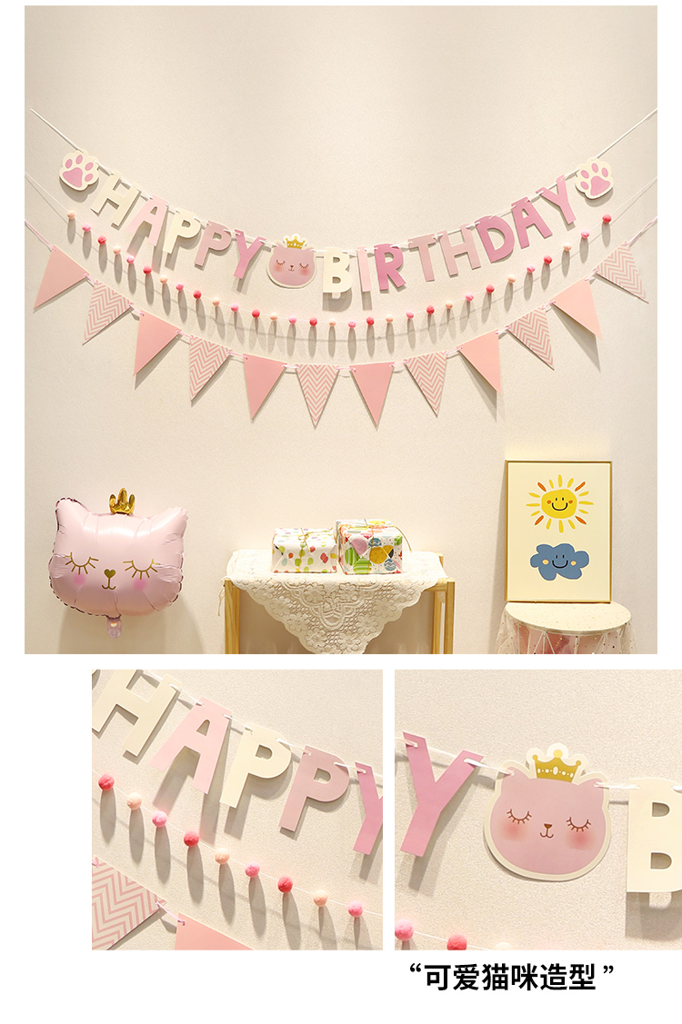 ins生日快乐装饰品拉旗拉花宝宝周岁派对拍照道具背景墙场景布置