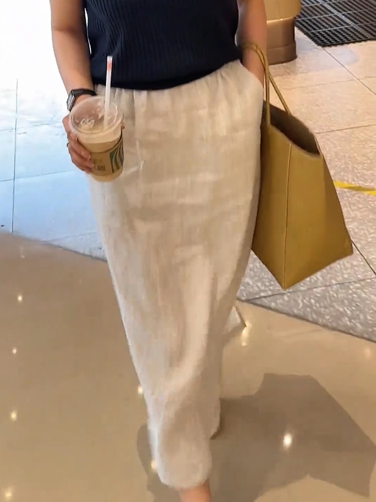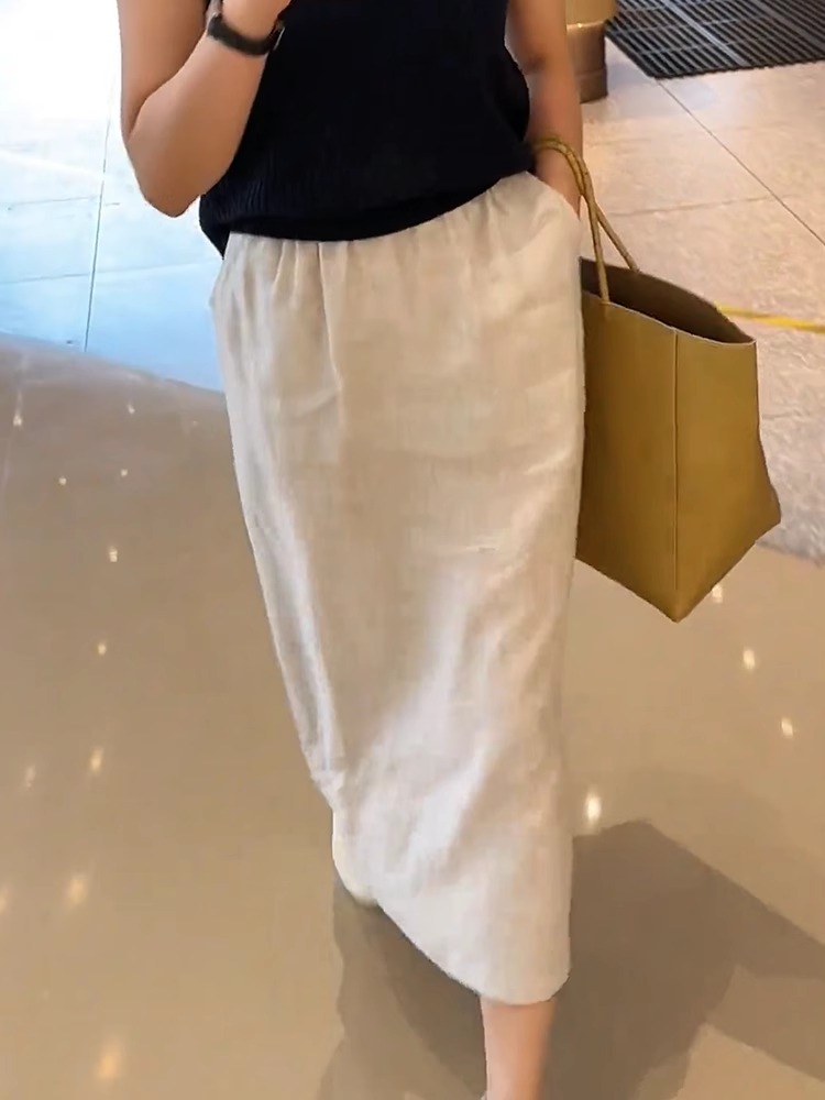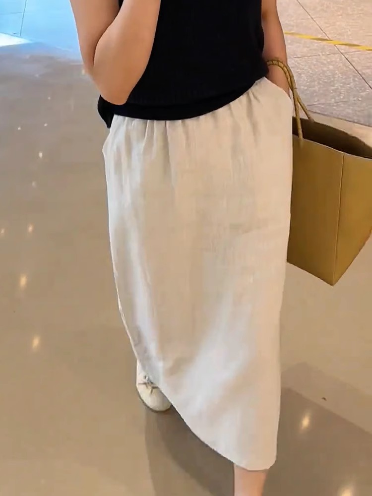 复古简约高腰褶皱插袋设计直筒半身裙2025年夏季新款修身显瘦长裙