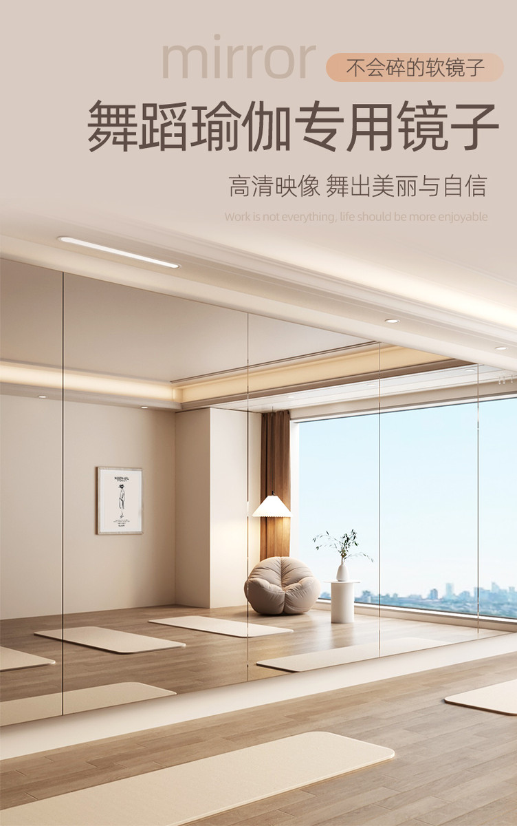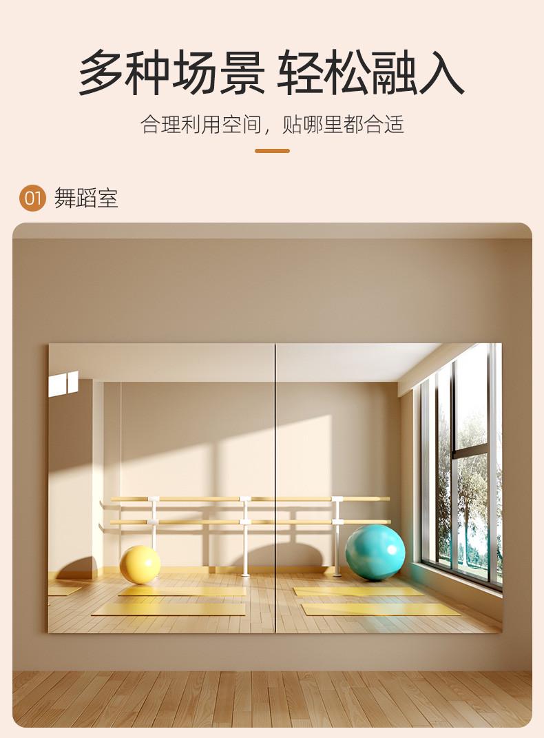 家用跳舞软镜子贴墙自粘亚克力高清健身房瑜伽舞蹈室大尺寸全身镜