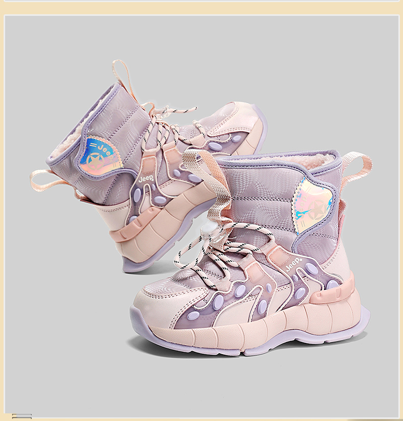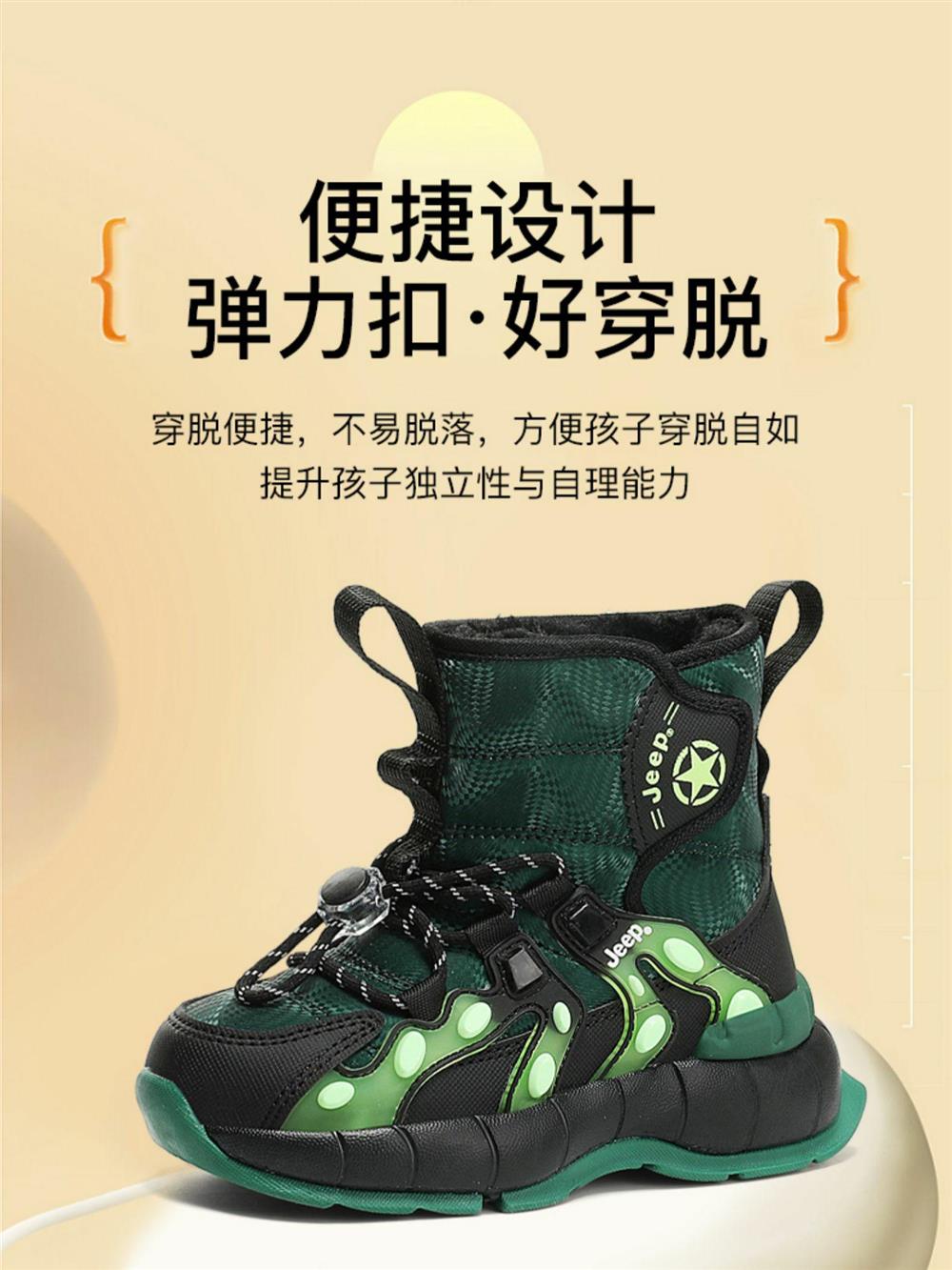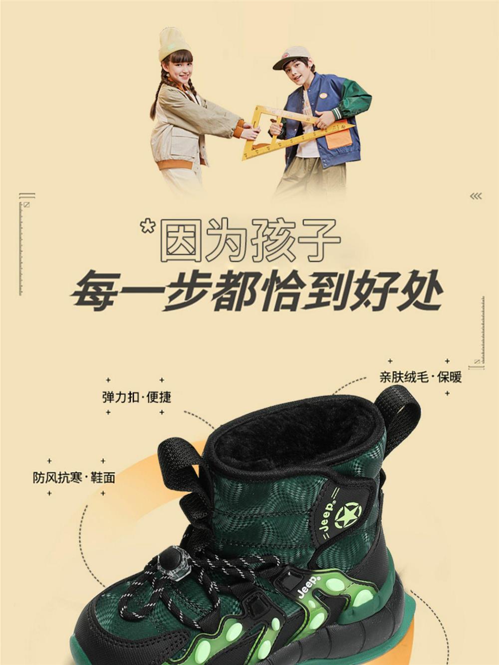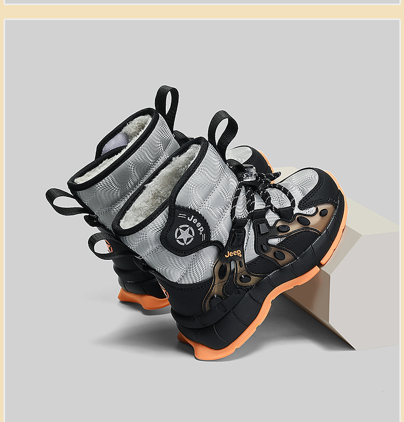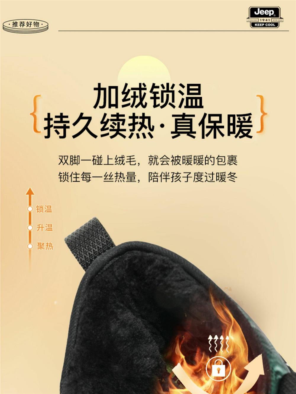 Jeep男童雪地靴加绒加厚东北棉靴冬季2025新款儿童大棉鞋女童靴子