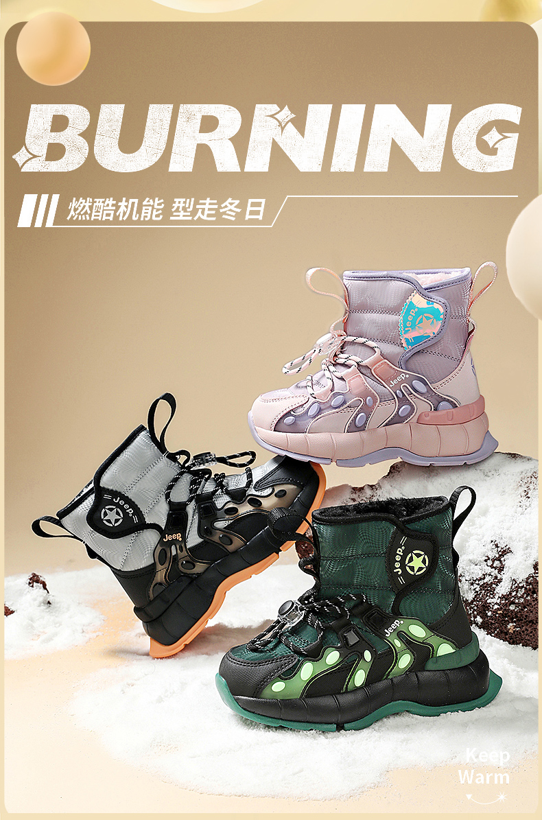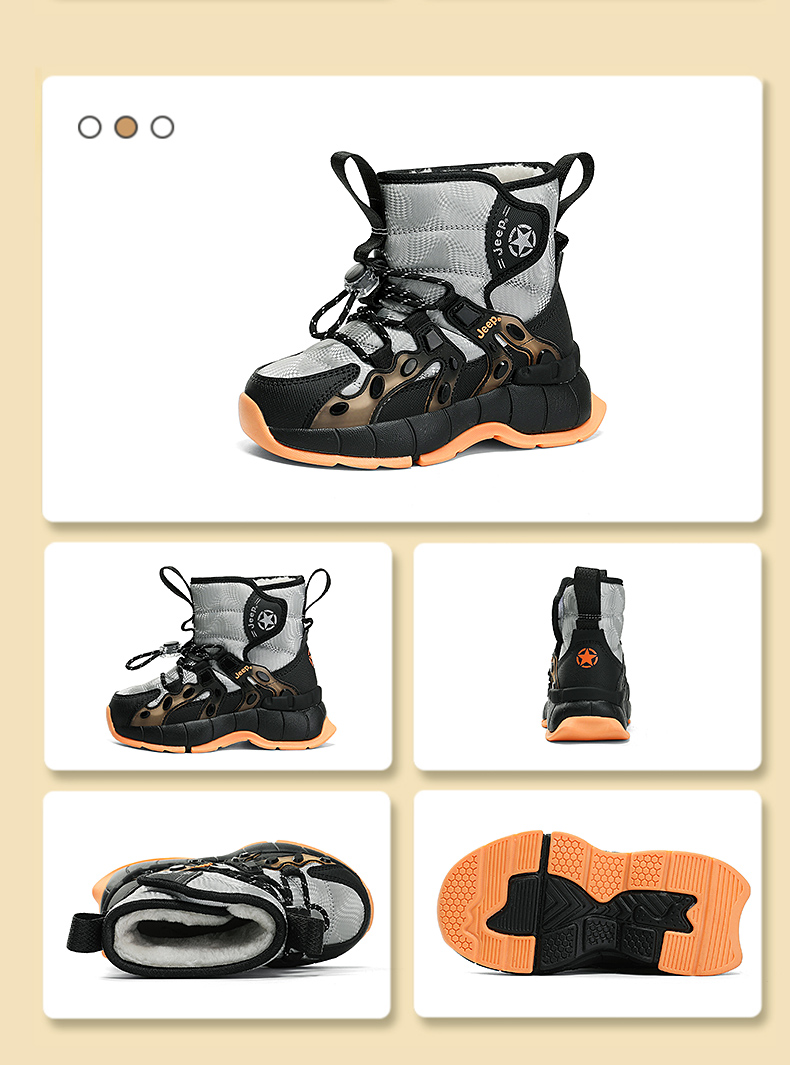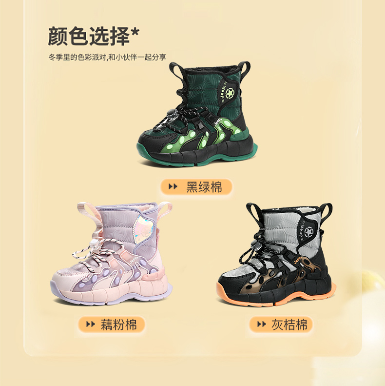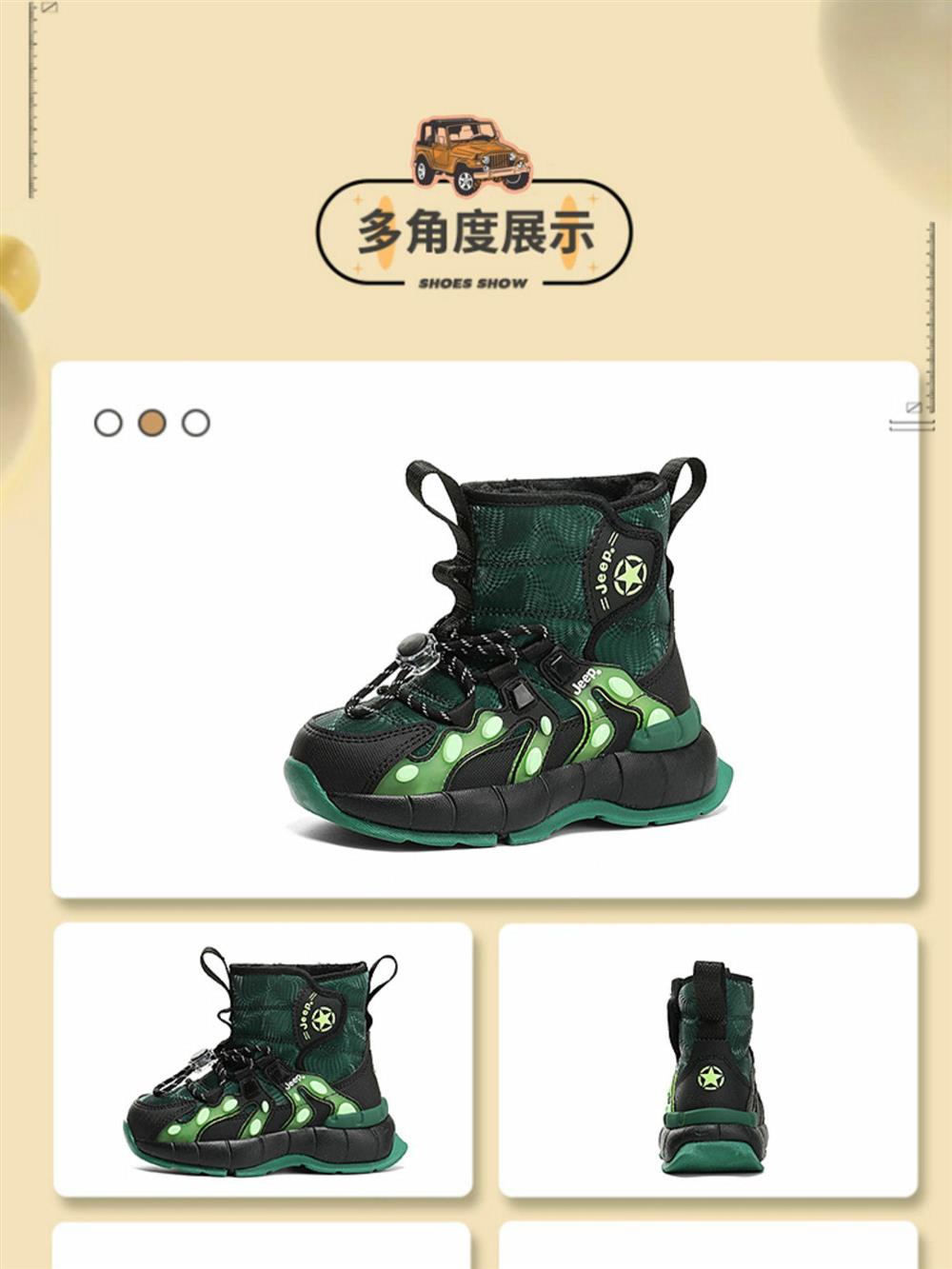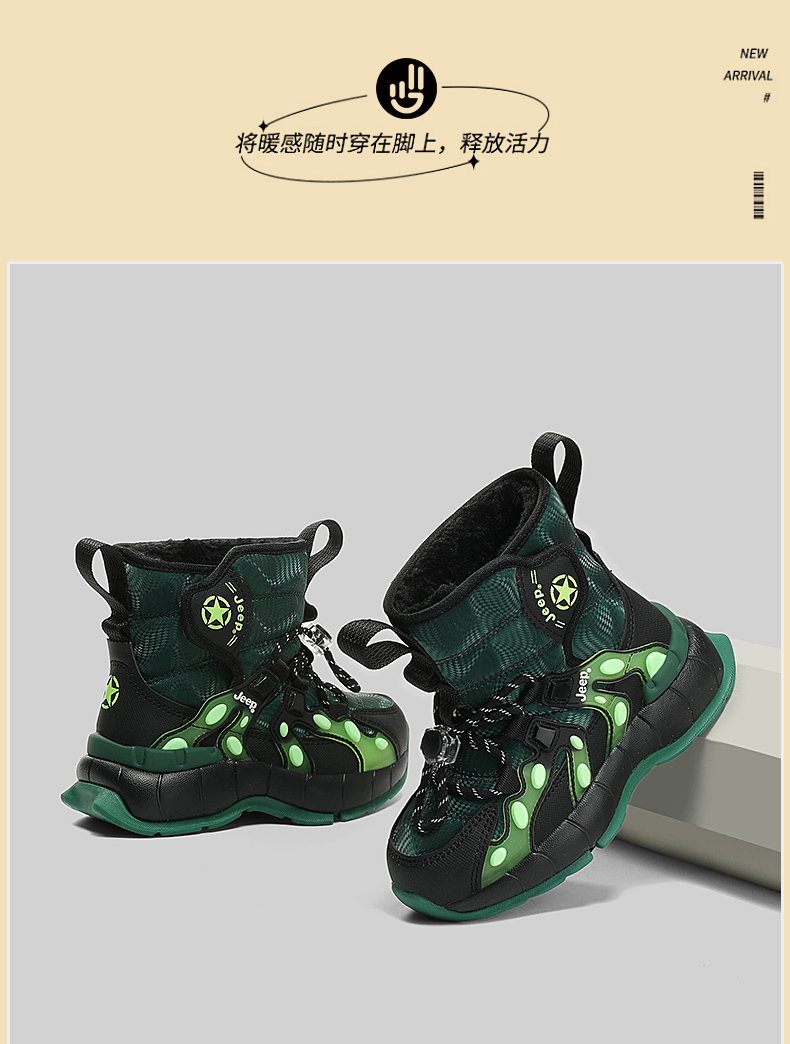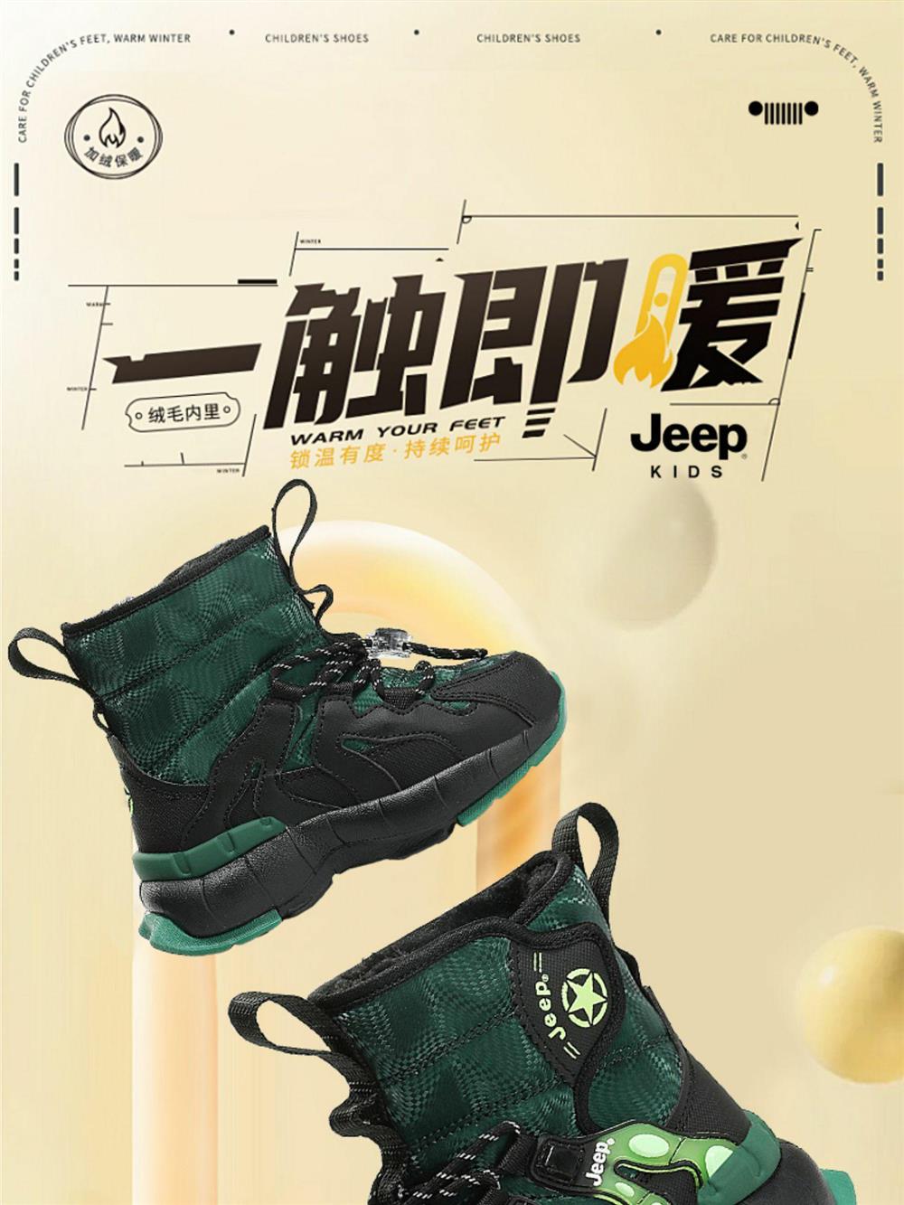 Jeep男童雪地靴加绒加厚东北棉靴冬季2025新款儿童大棉鞋女童靴子