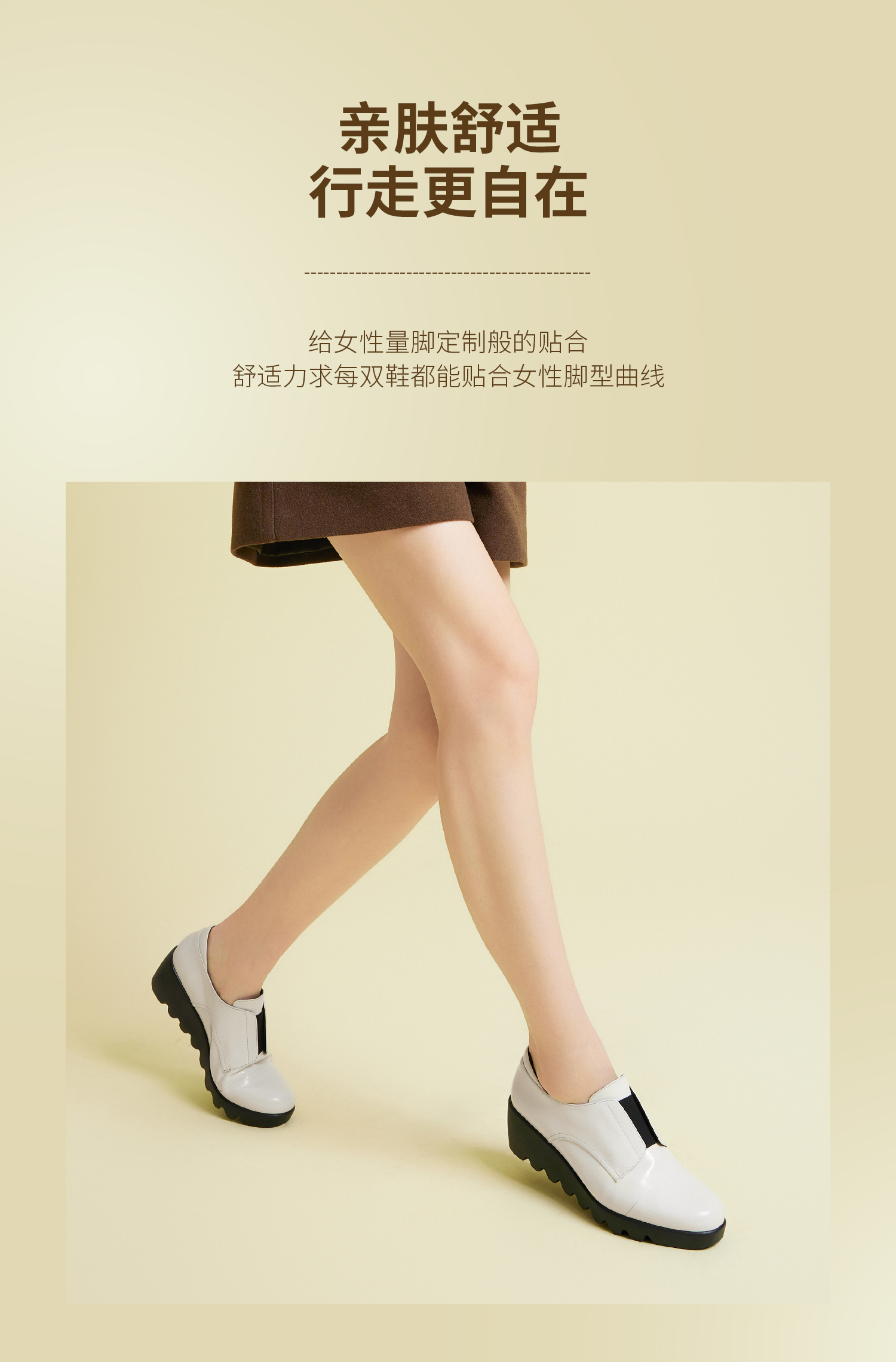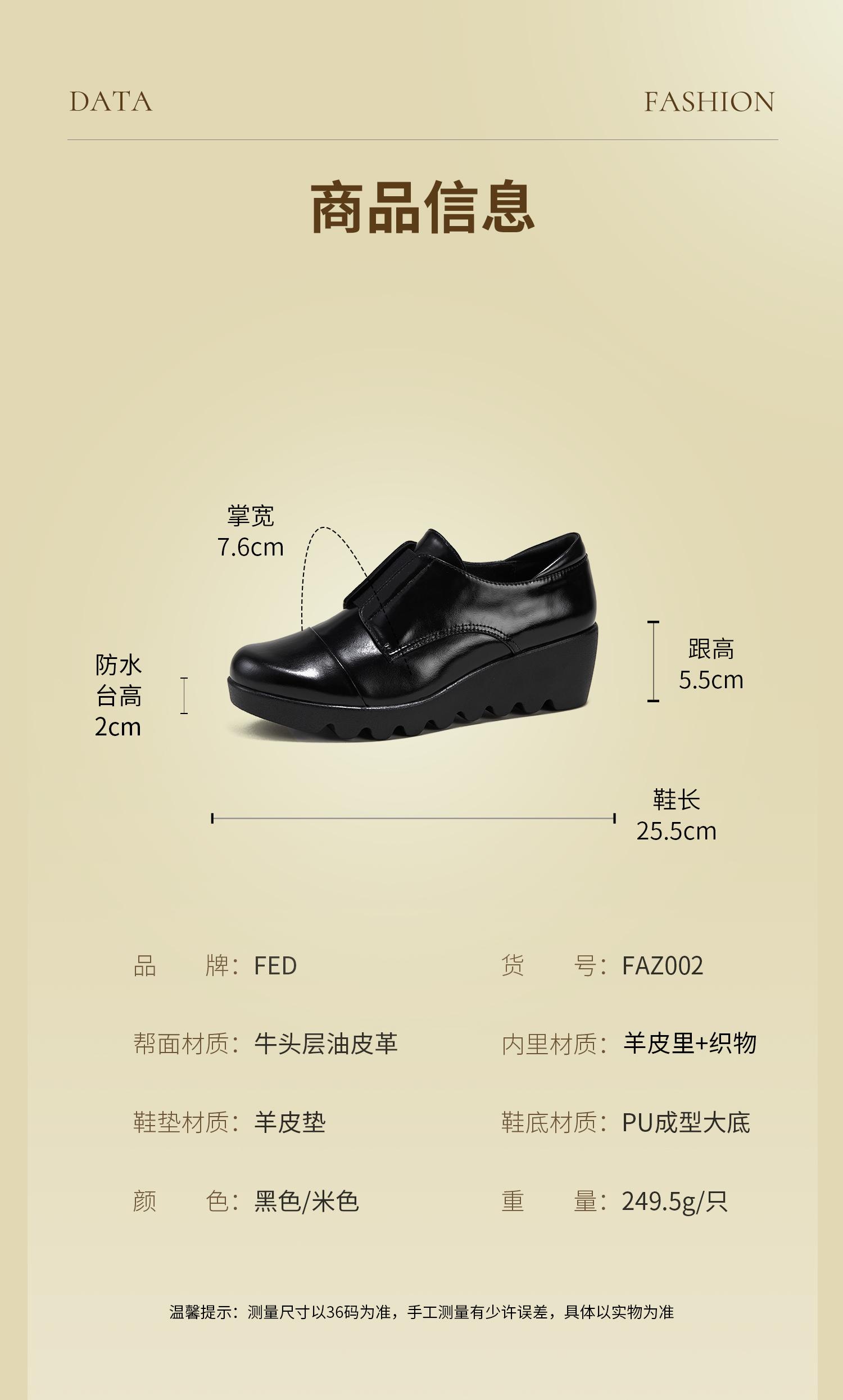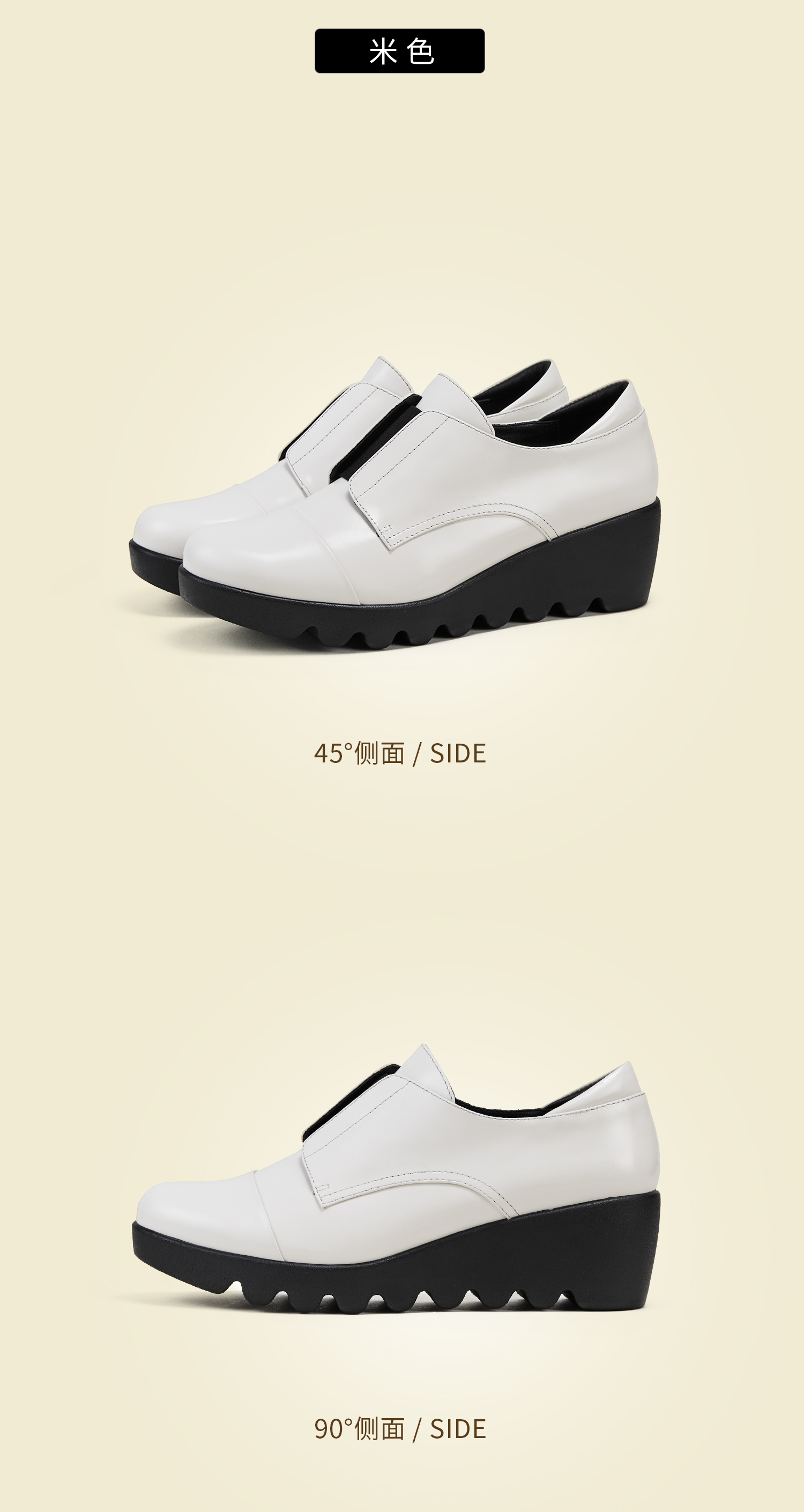 fed深口单鞋春季新款女鞋坡跟休闲鞋白色小皮鞋女款S0225-YAB002