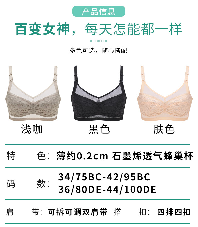 夏季内衣女薄款大胸显小文胸无钢圈大码聚拢调整型收副乳防下垂