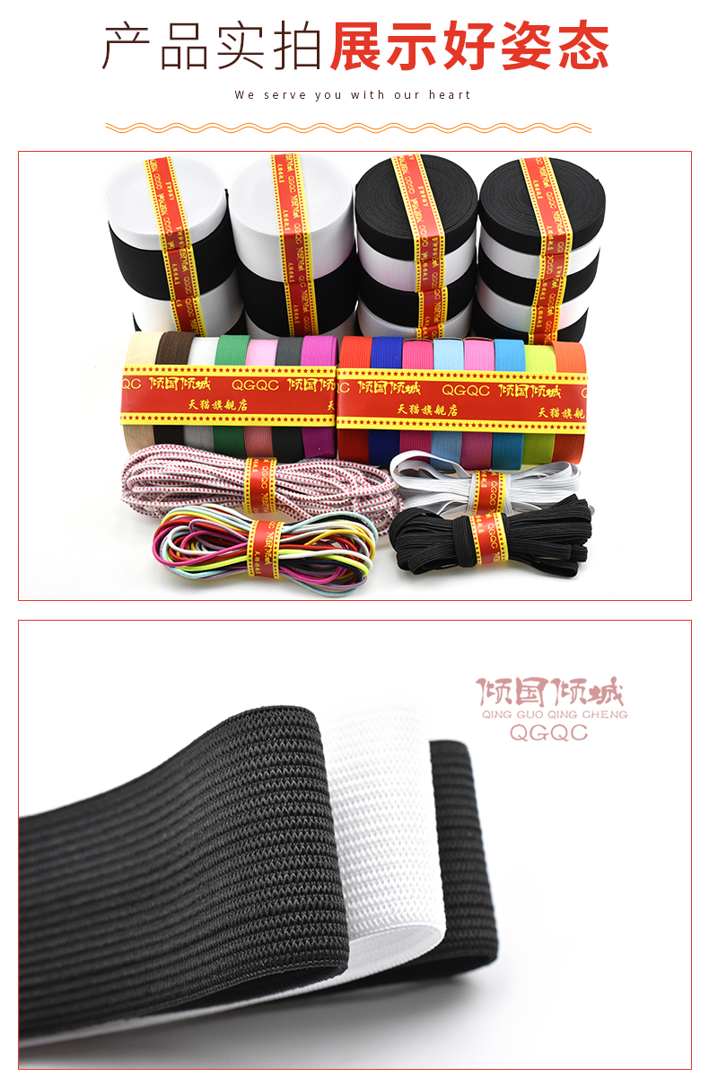 松紧带宽加厚弹力黑白扁宽婴儿宝宝橡皮筋弹力带裤腰皮筋服装辅料