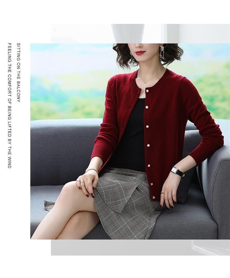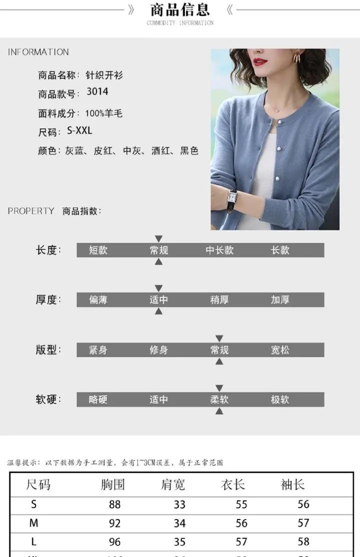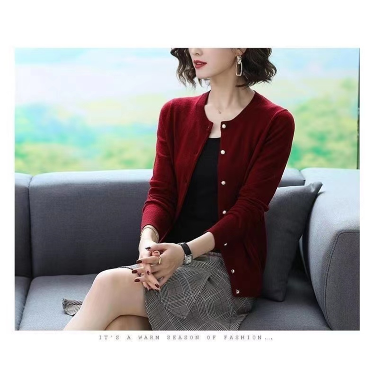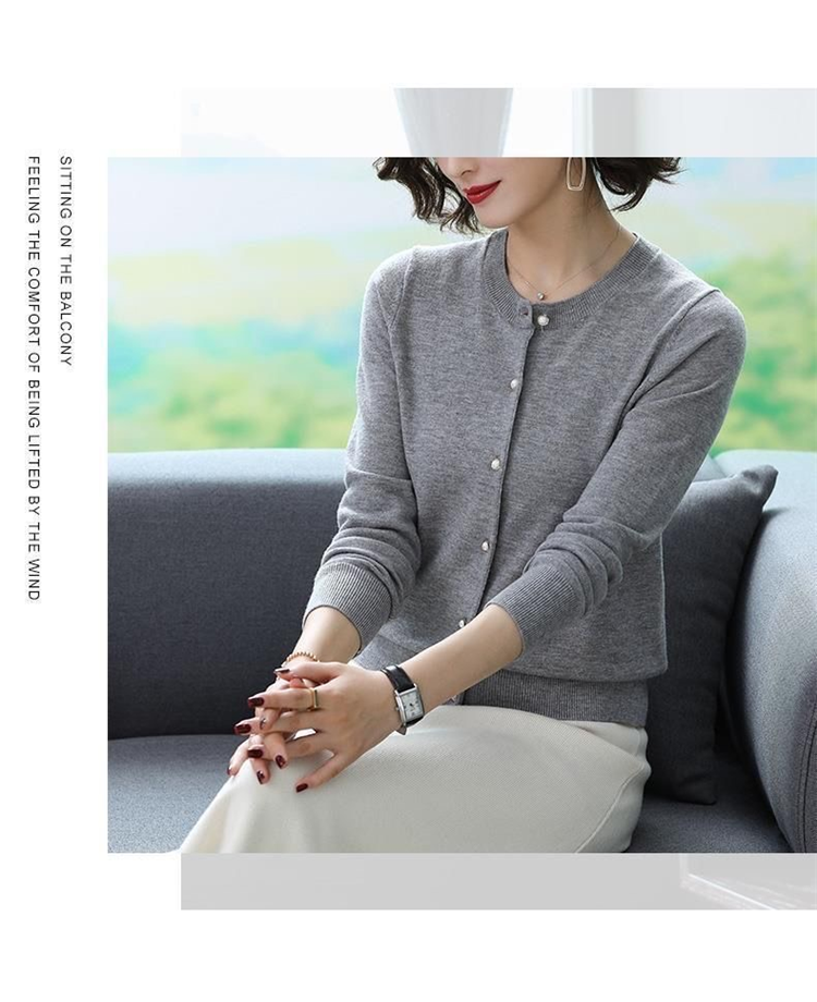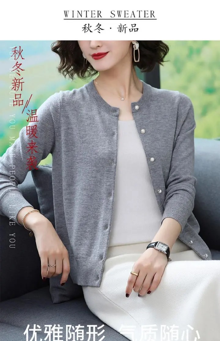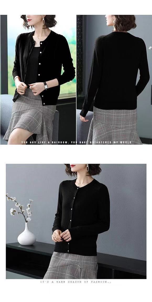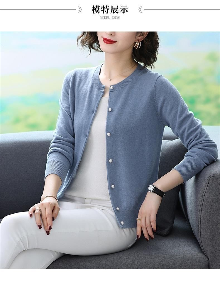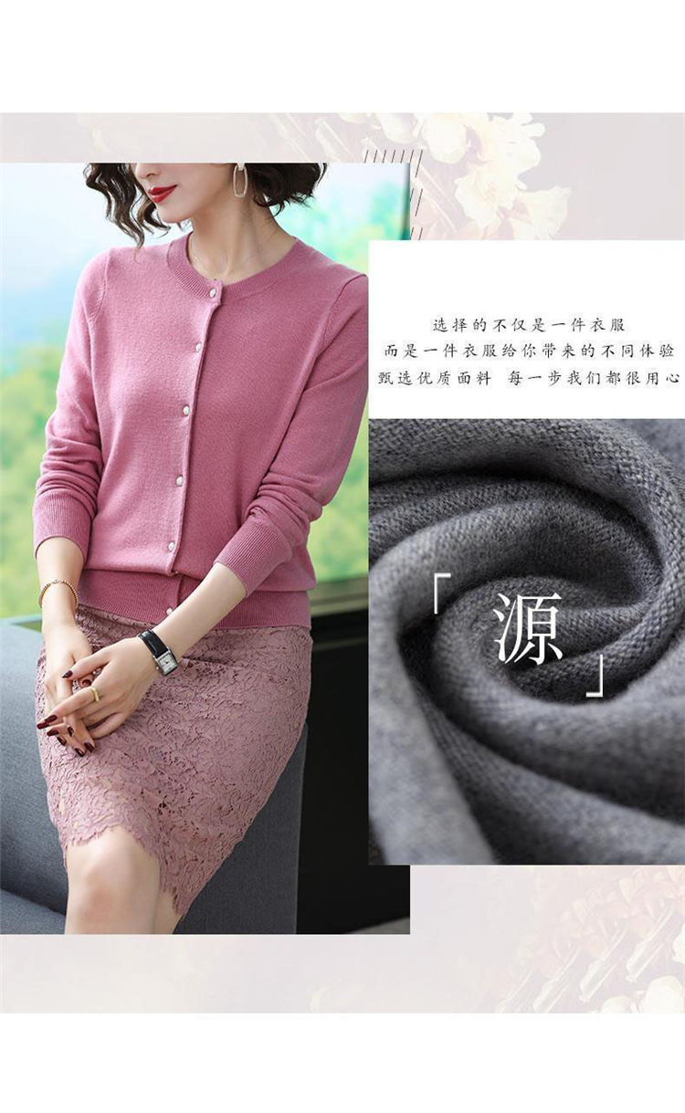鄂尔多斯市羊绒女针织开衫外套羊毛衫春秋新款薄短款宽松毛衣圆领