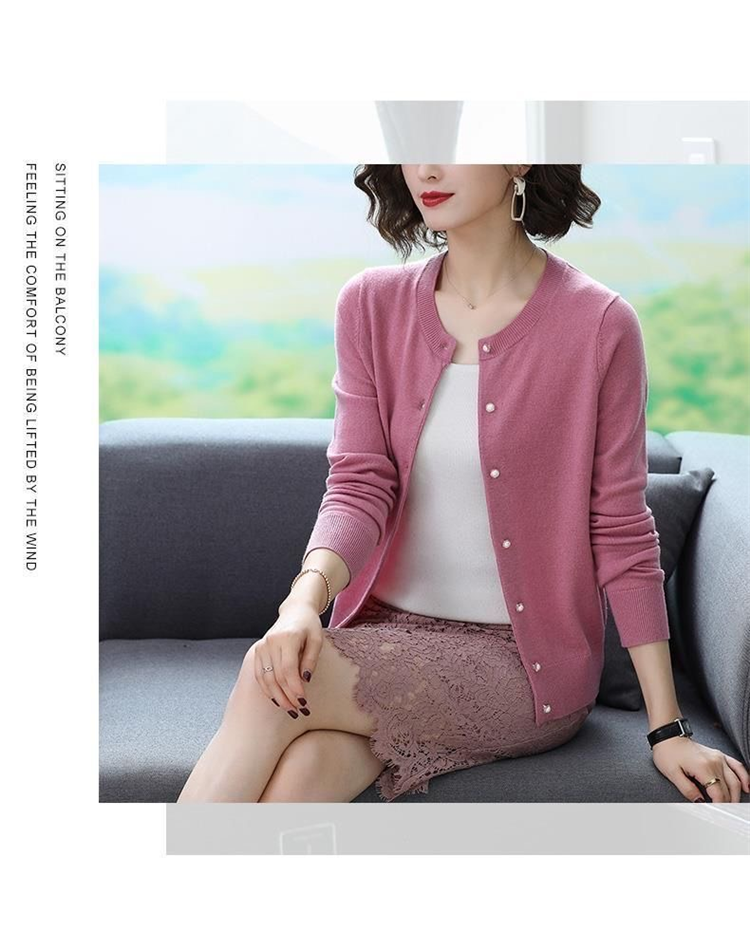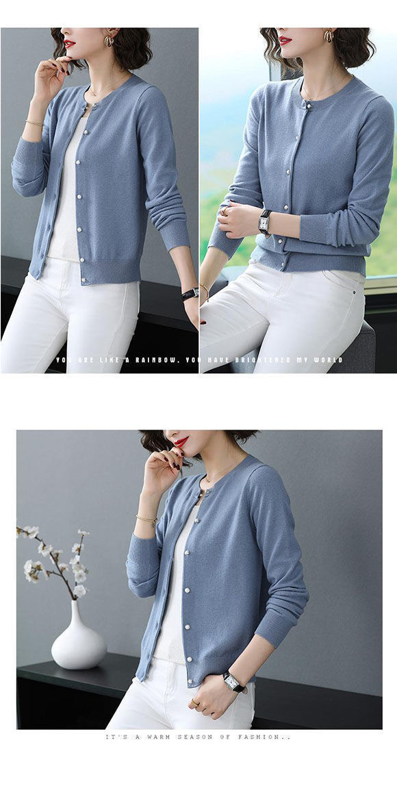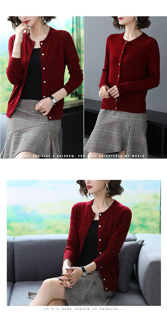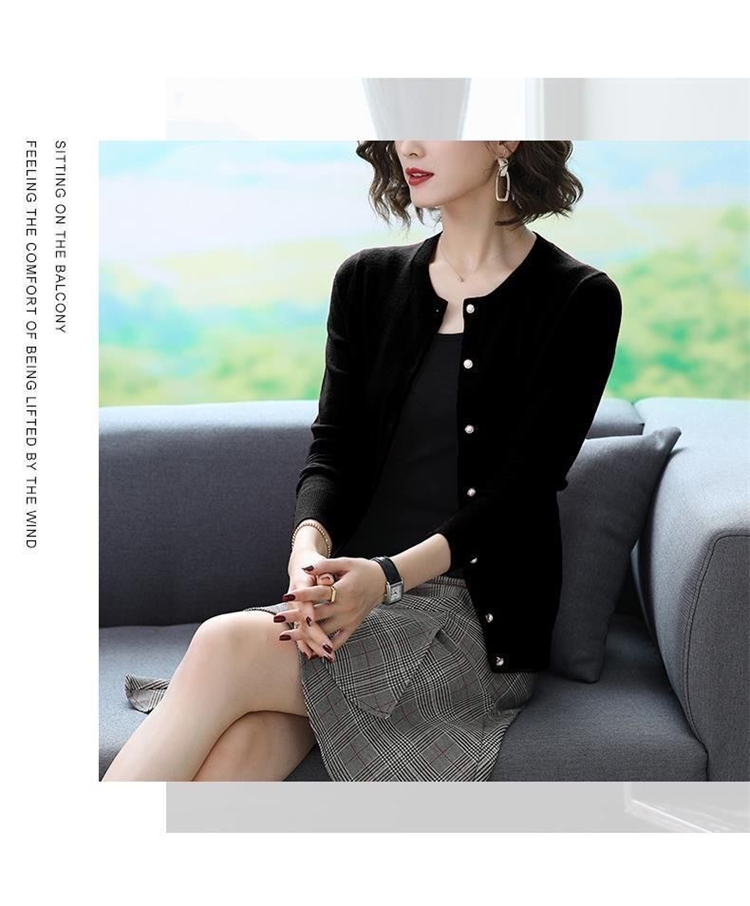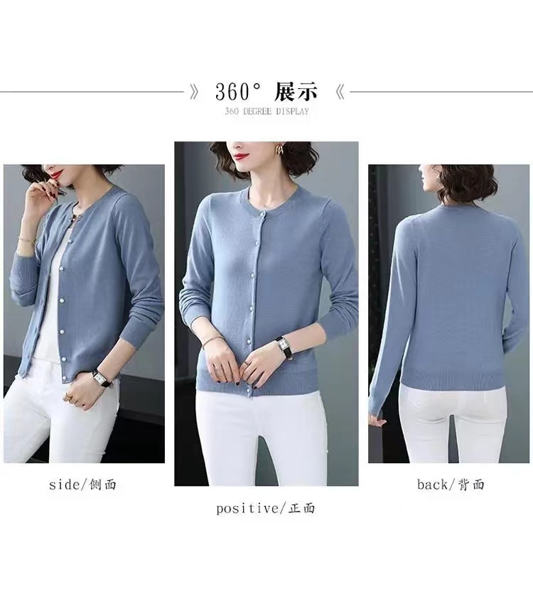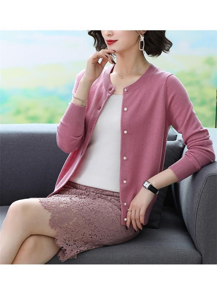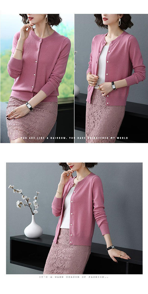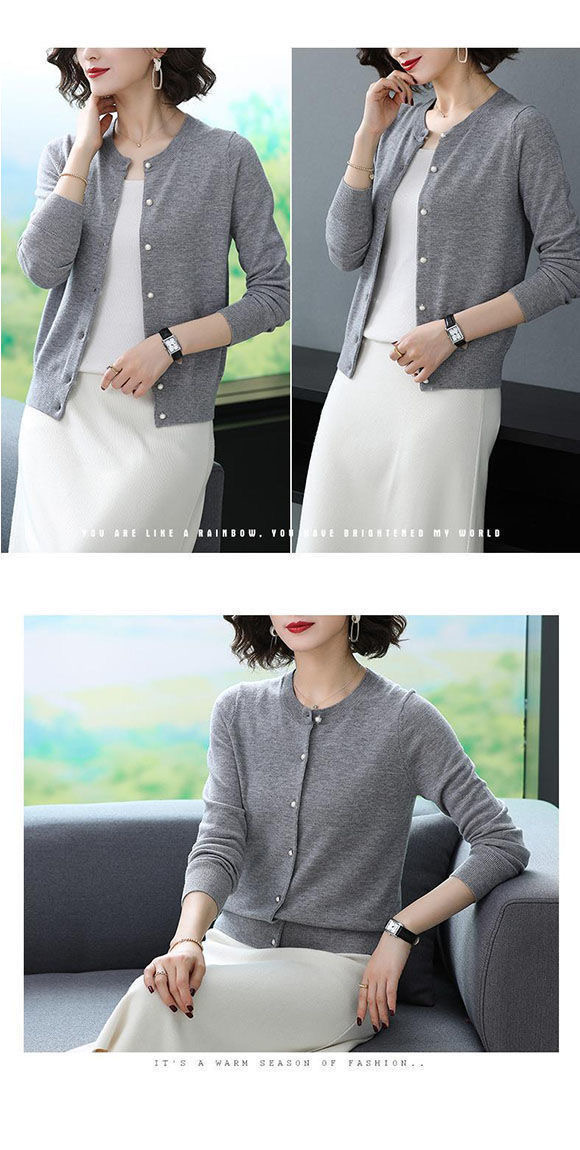 鄂尔多斯市羊绒女针织开衫外套羊毛衫春秋新款薄短款宽松毛衣圆领