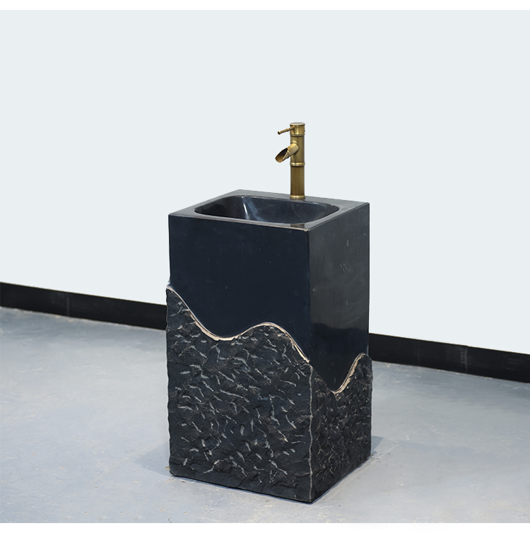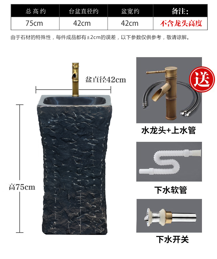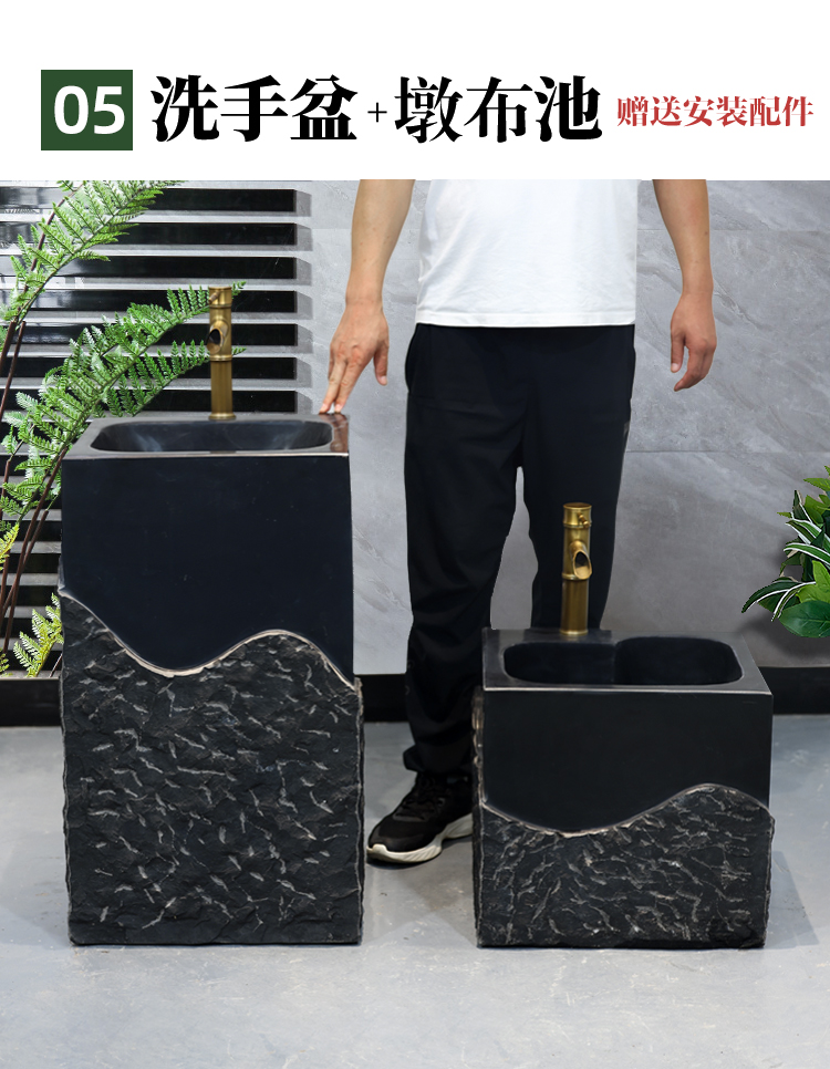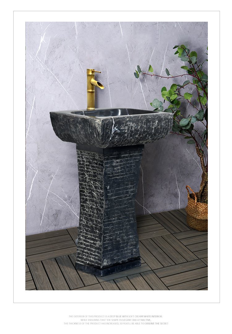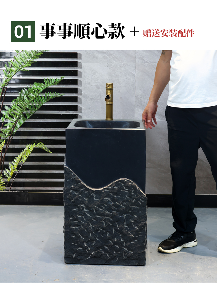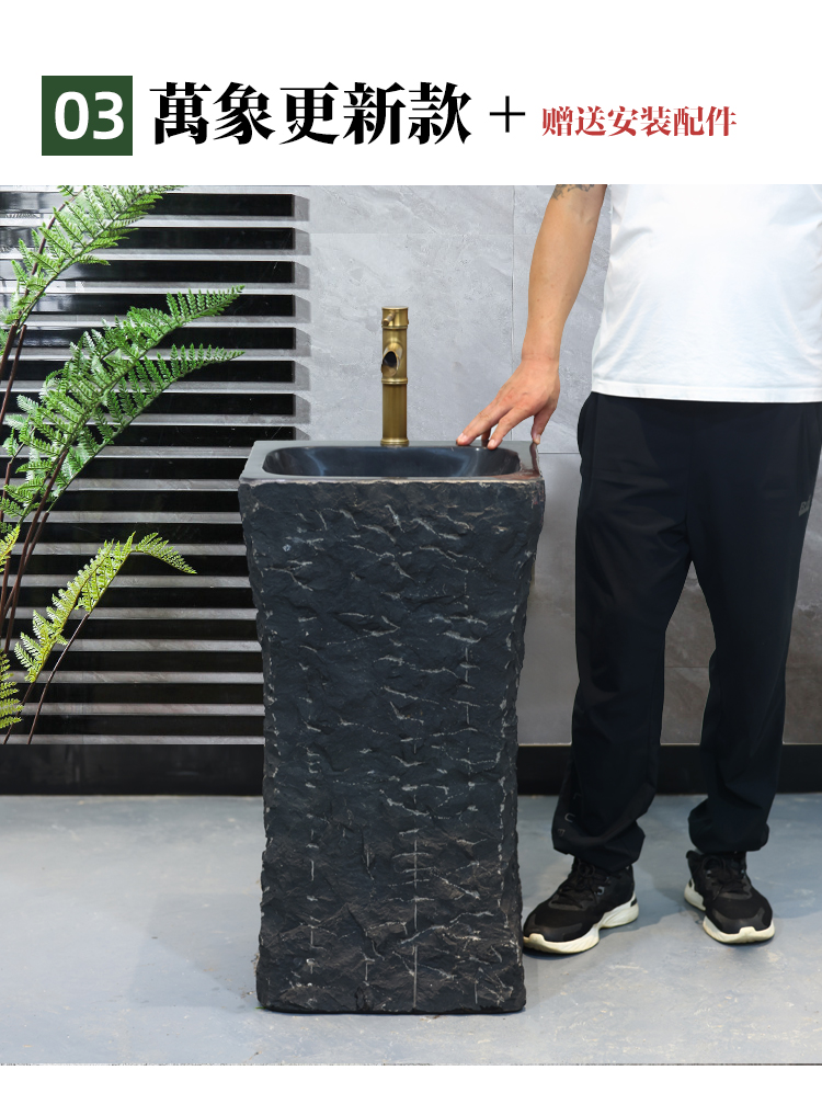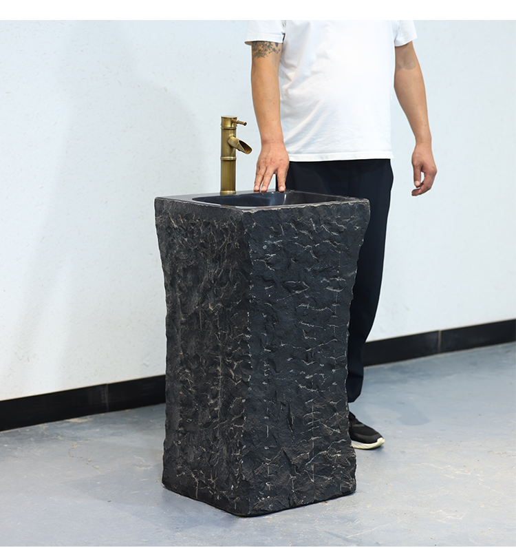 石材洗手盆户外一体家用别墅石头洗脸盆庭院复古立柱盆圆形洗手池
