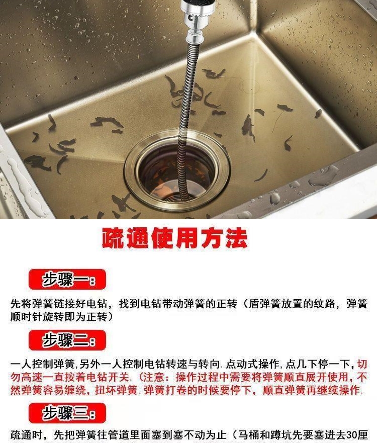 疏通神器通马桶、下水道工具弹簧电钻专业10mm弹簧家用管道疏通器