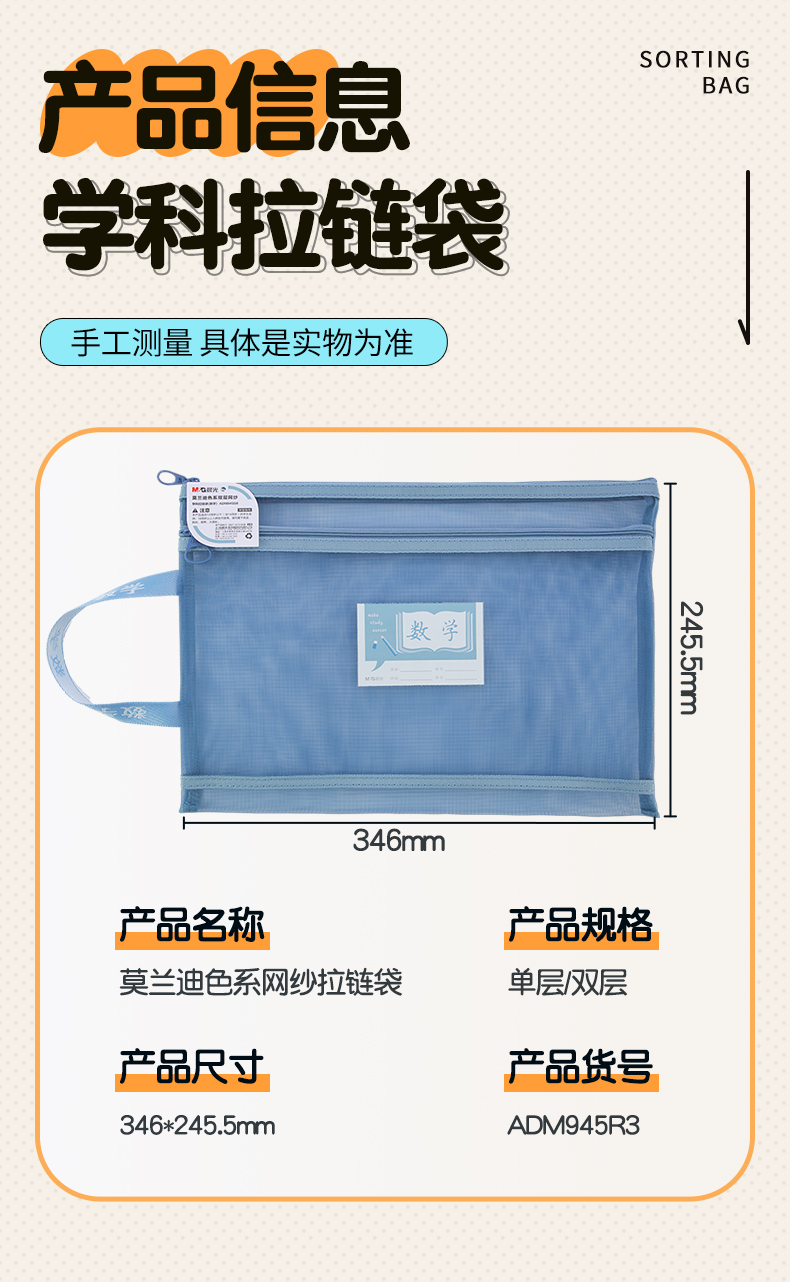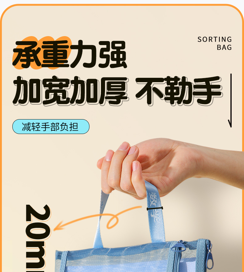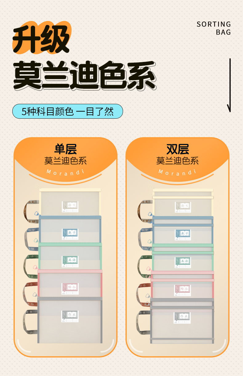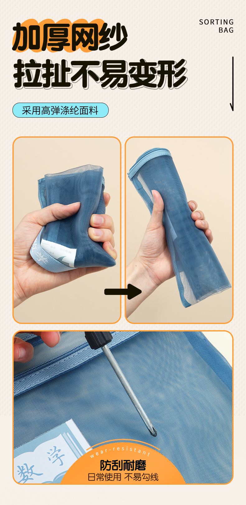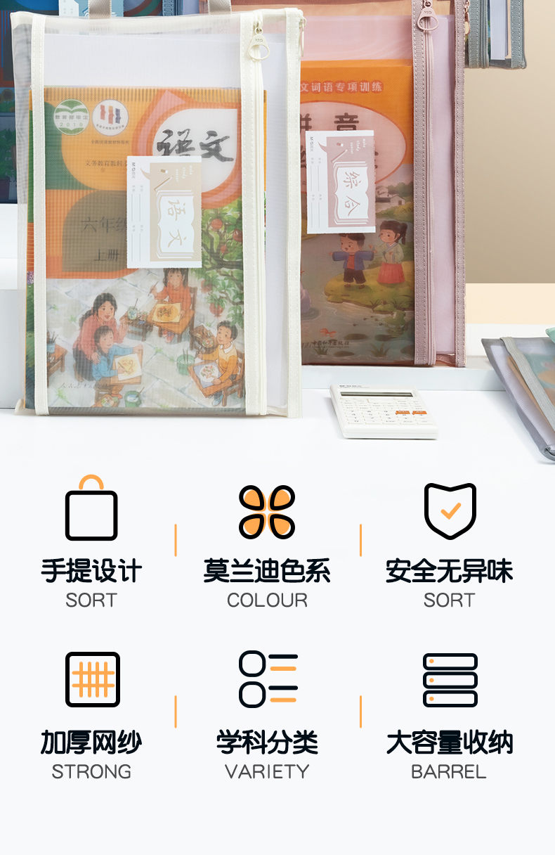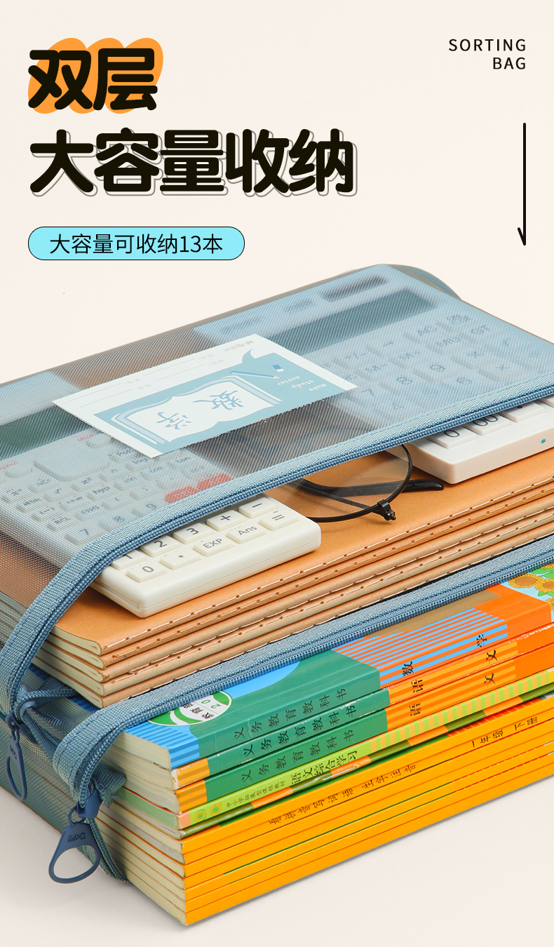 晨光文具学科科目分类袋小学生文件袋拉链式试卷收纳袋透明网纱双层大容量书袋作业资料a4考试专用袋票据产检