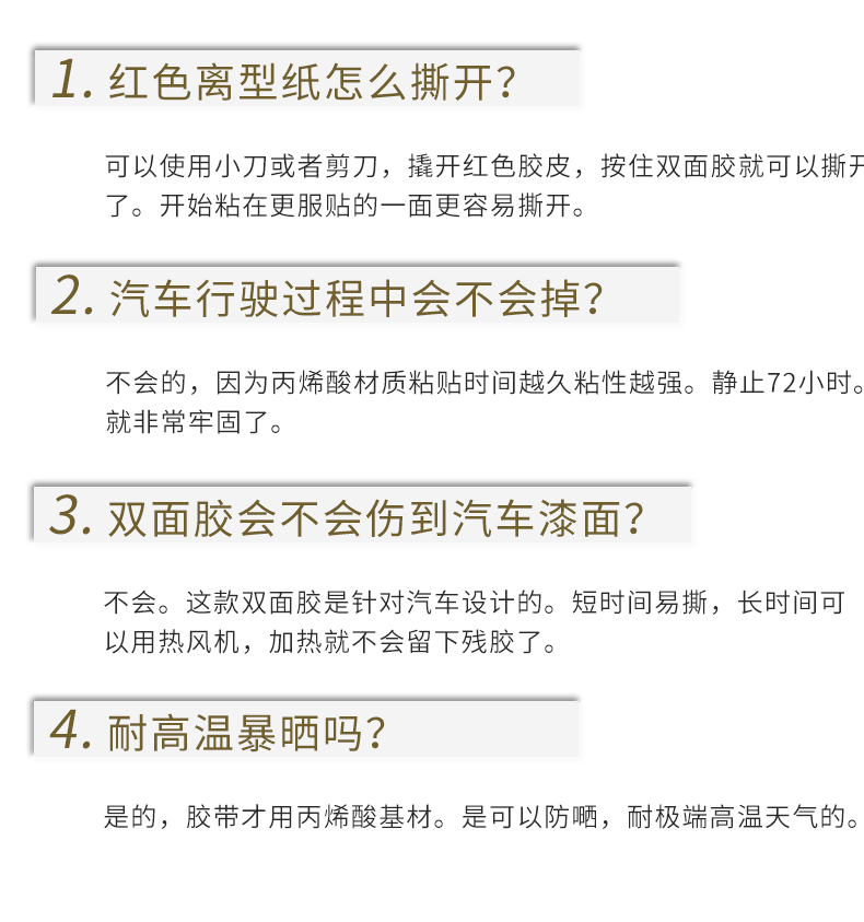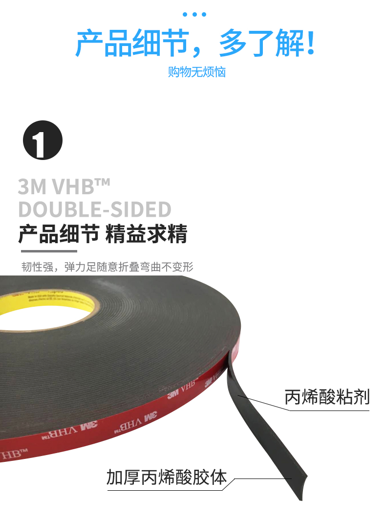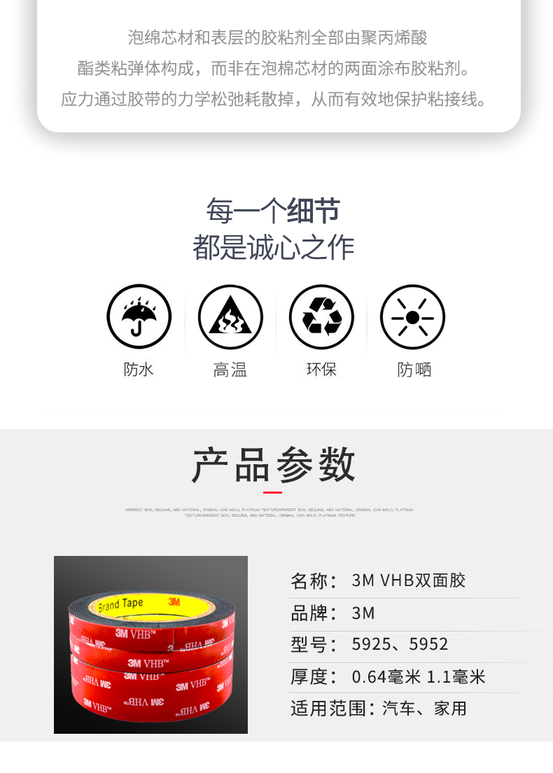 3M双面胶强力汽车加厚墙面专用耐高温高粘度无痕耐高温3m5952胶带