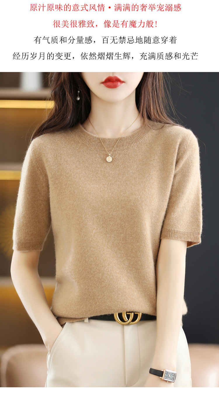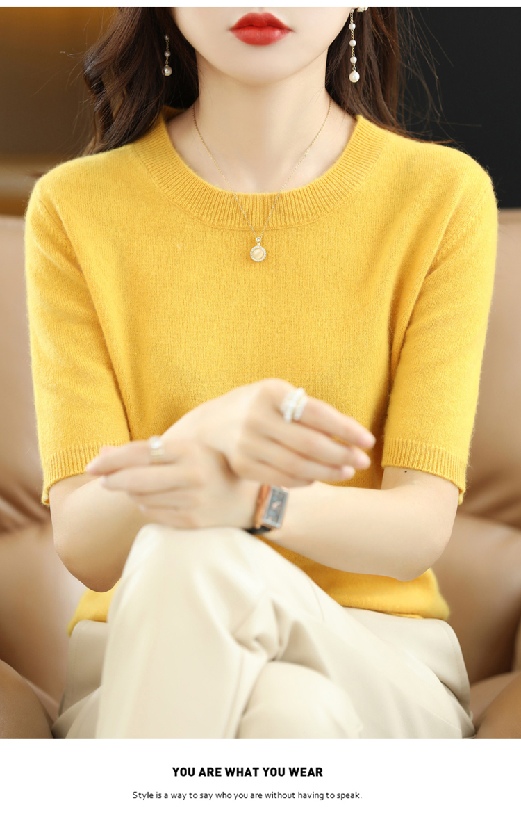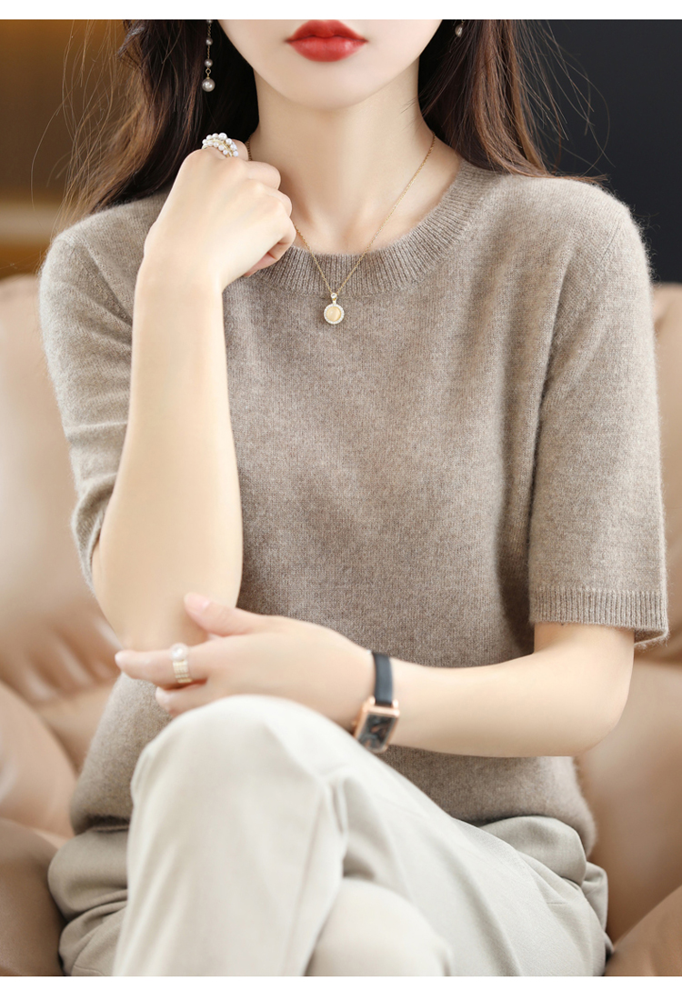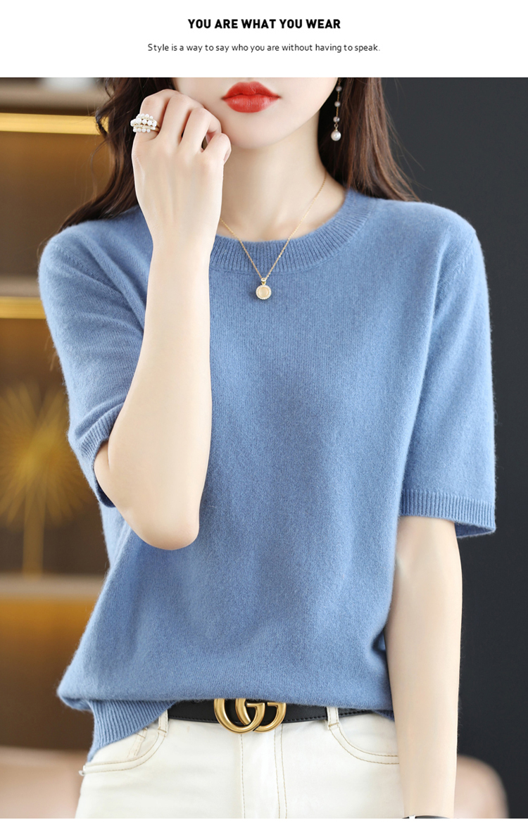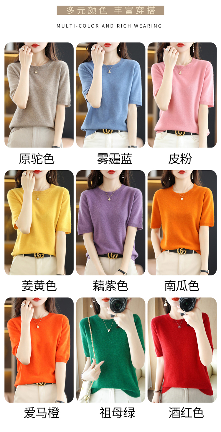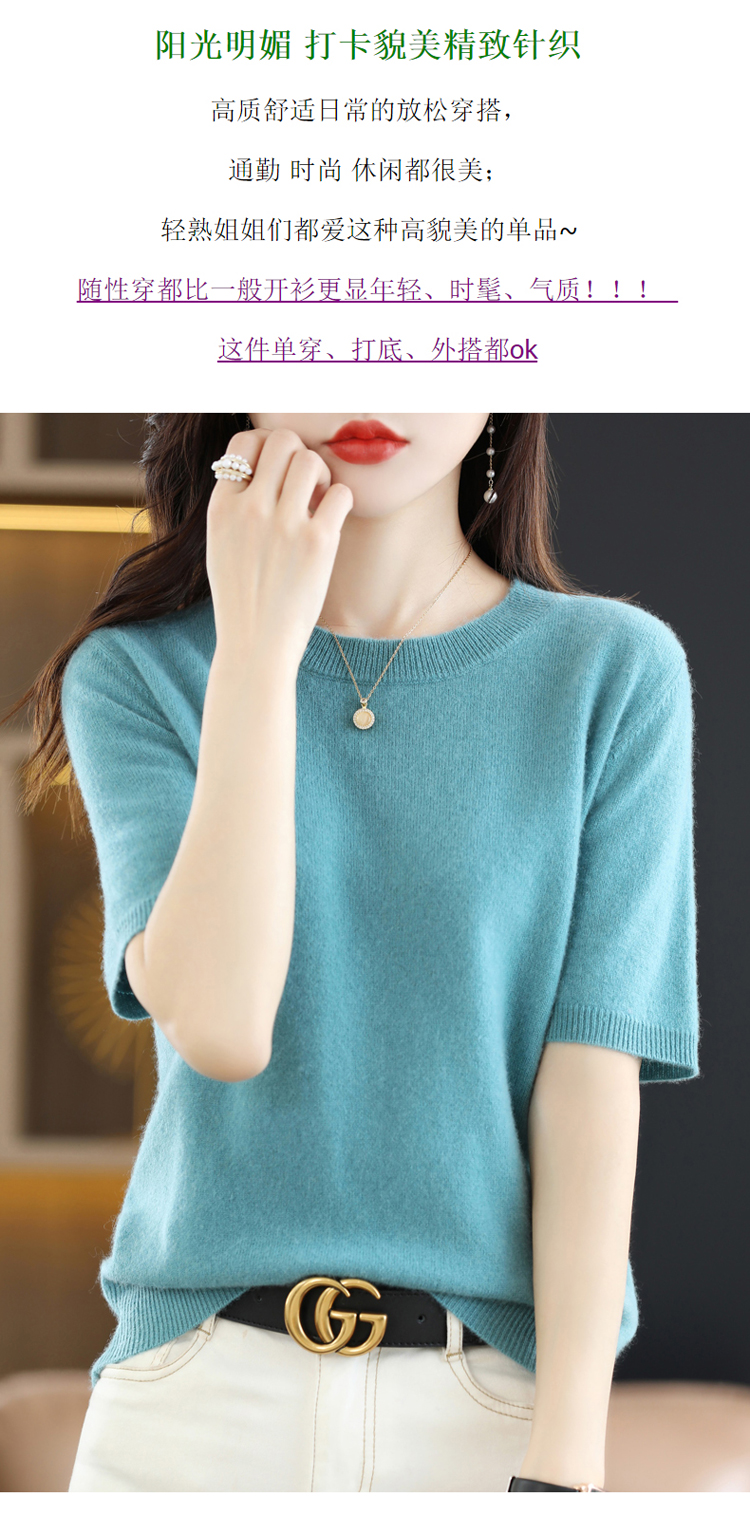 羊毛衫女圆领短袖羊绒衫春秋新款毛衣薄款夏季半袖宽松打底针织衫