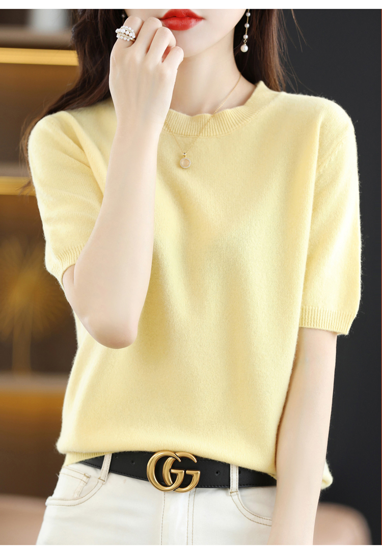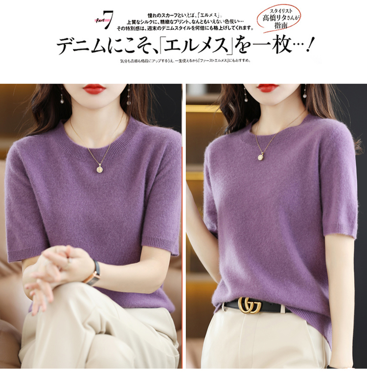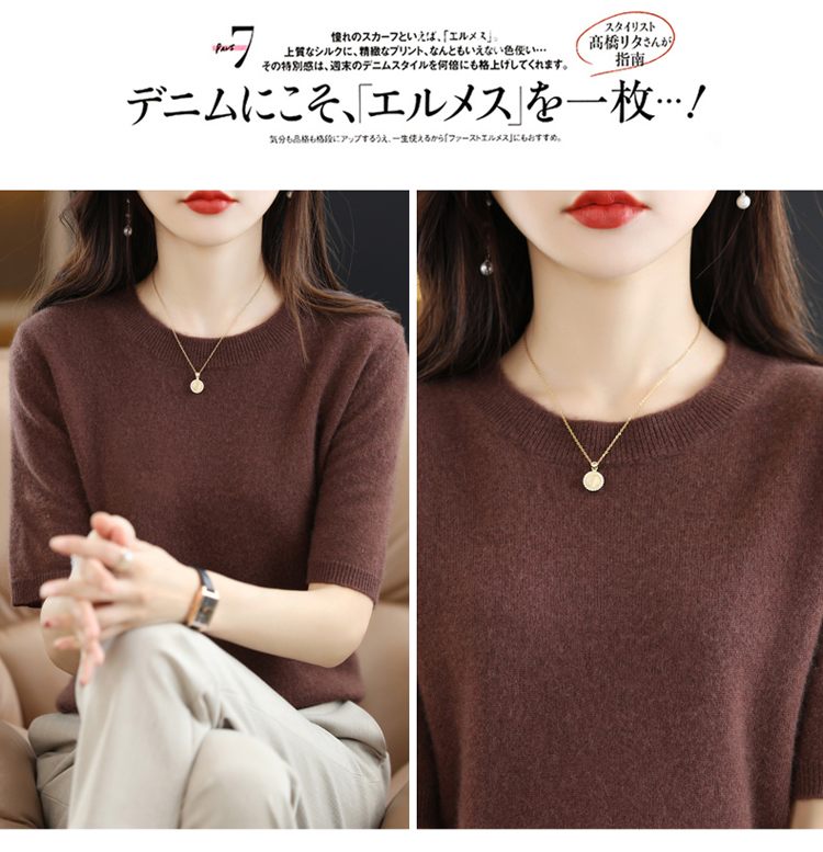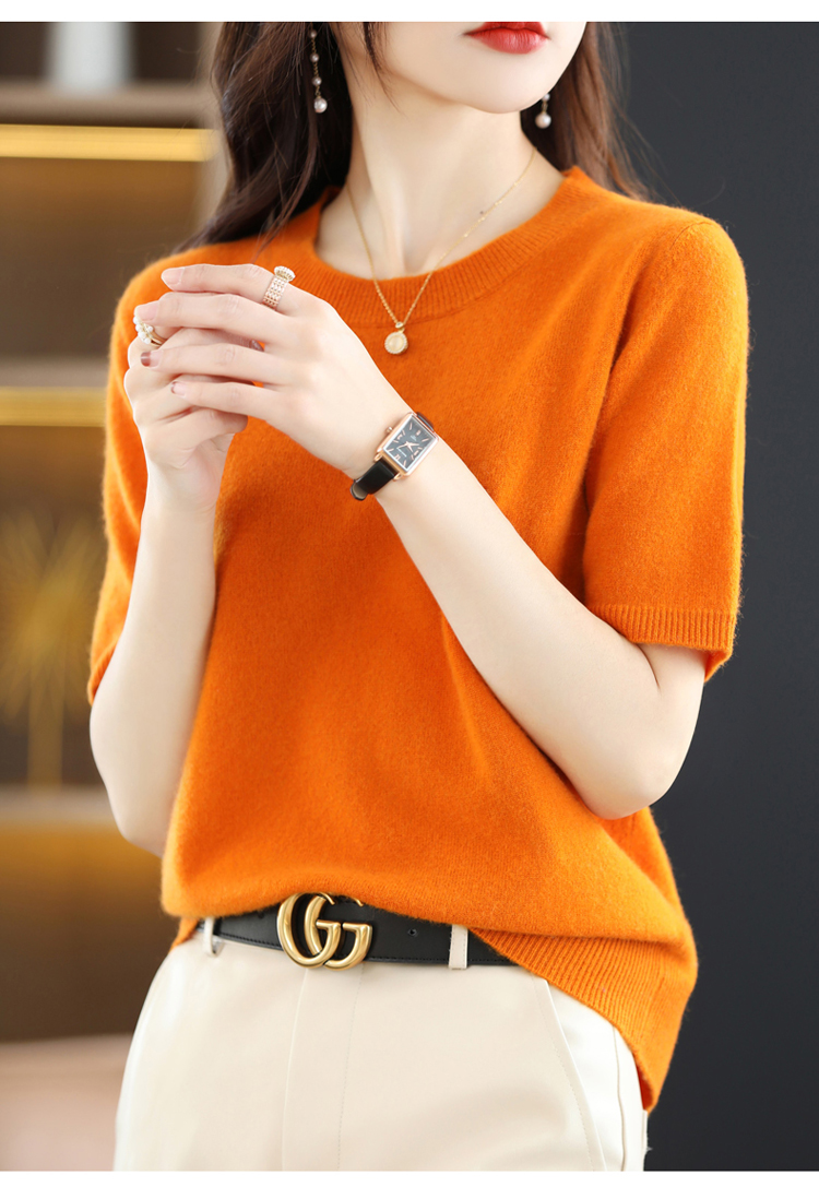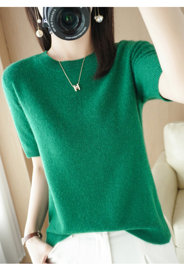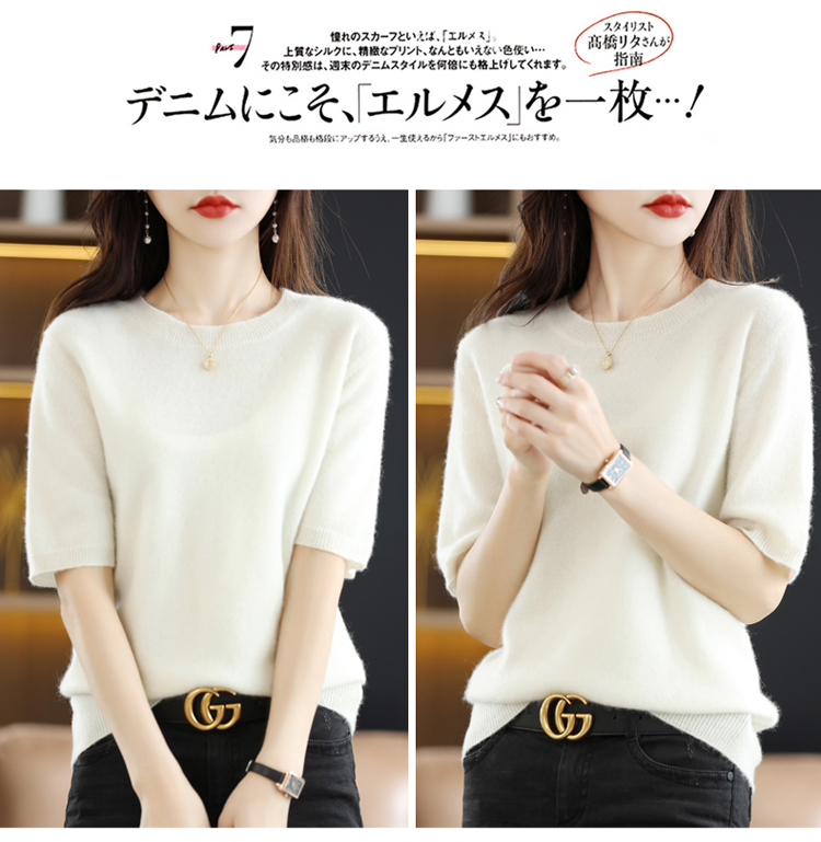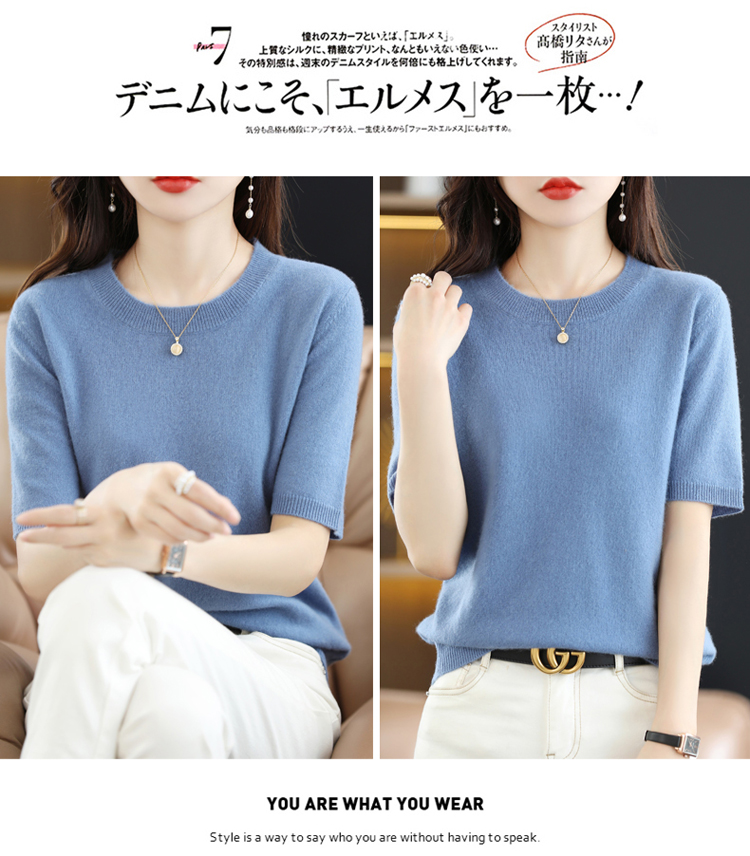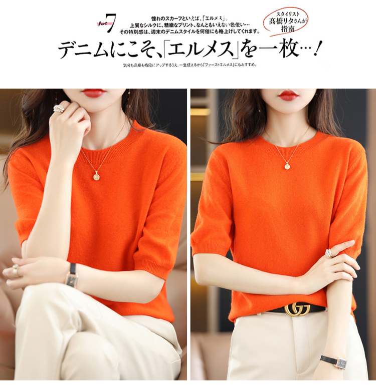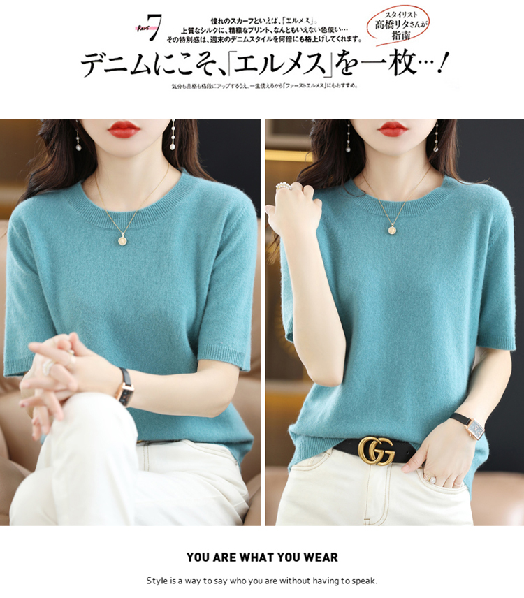 羊毛衫女圆领短袖羊绒衫春秋新款毛衣薄款夏季半袖宽松打底针织衫