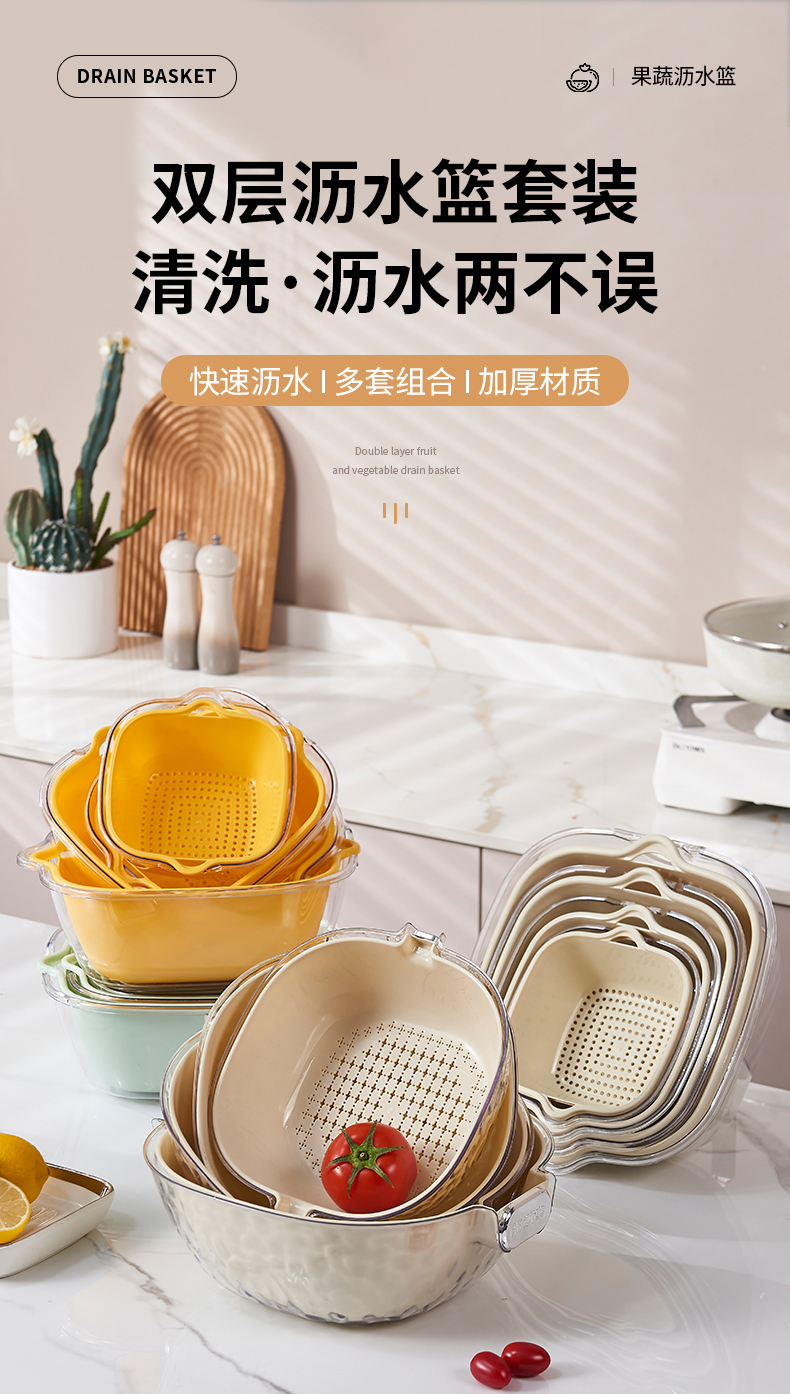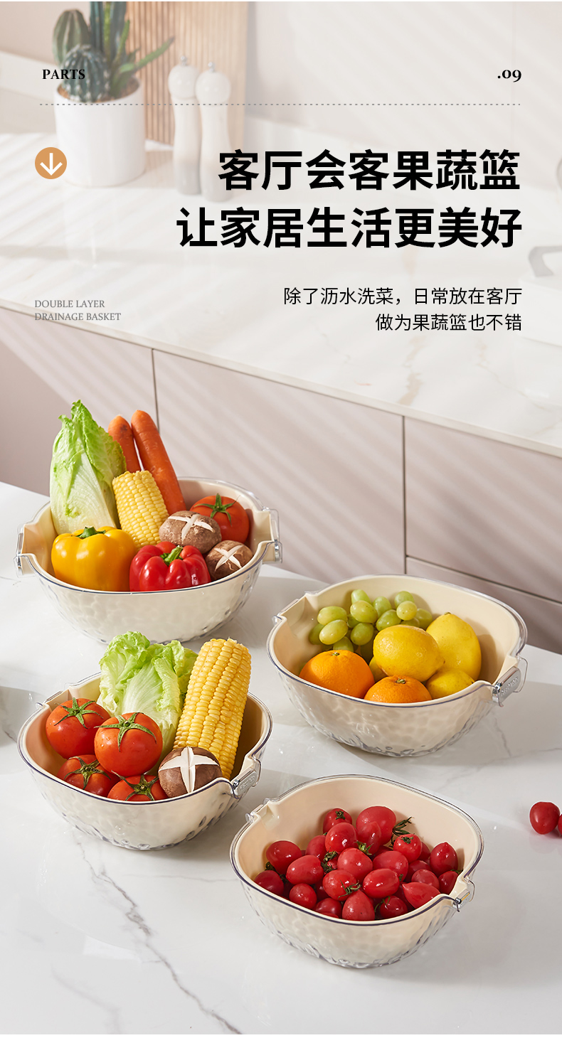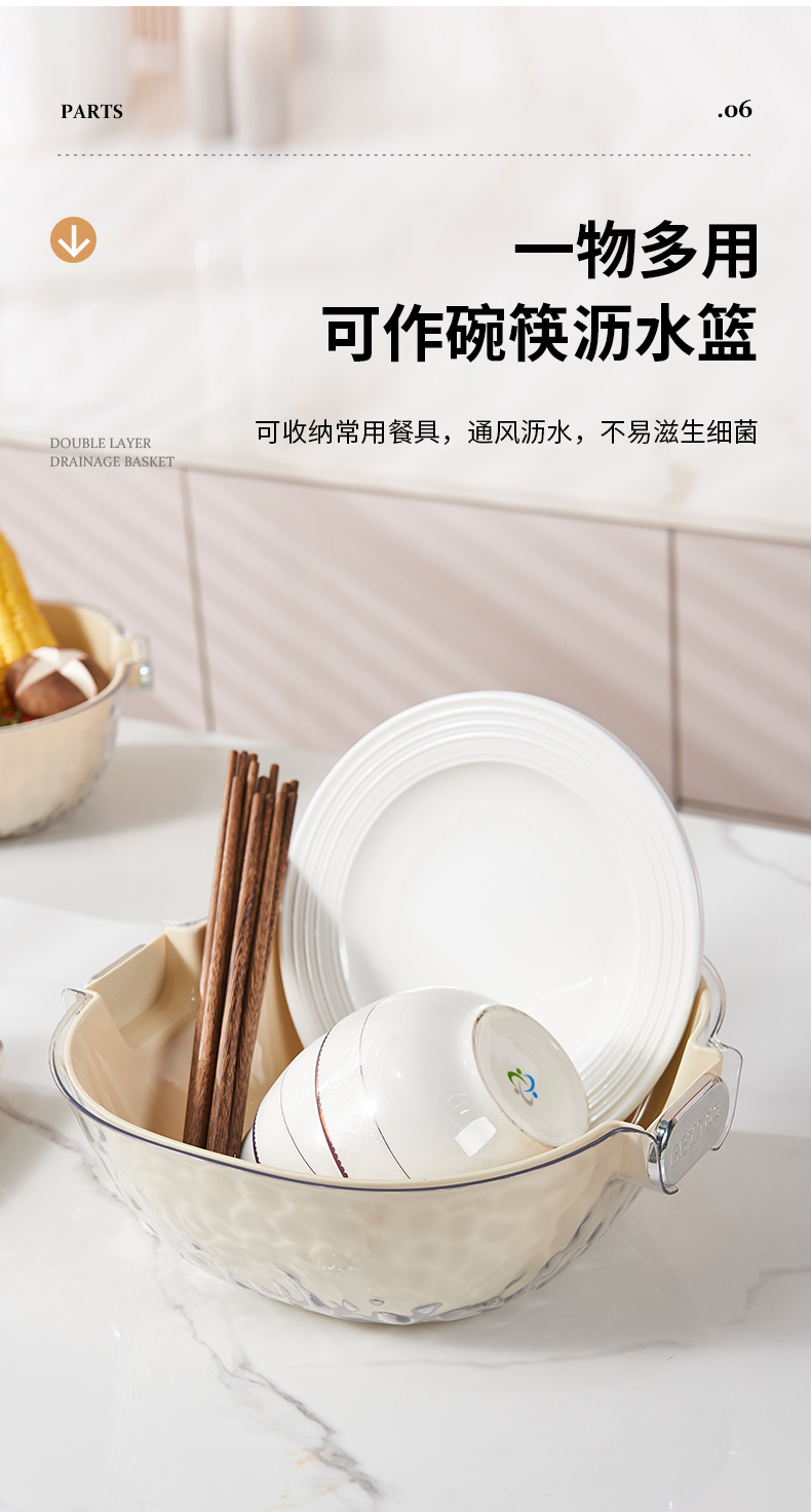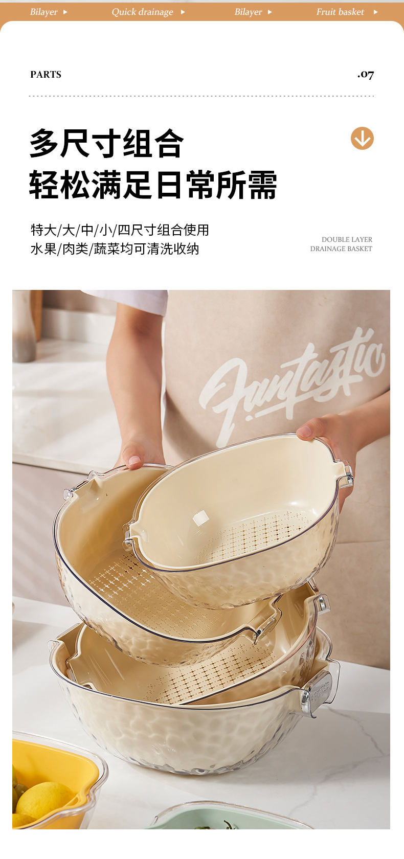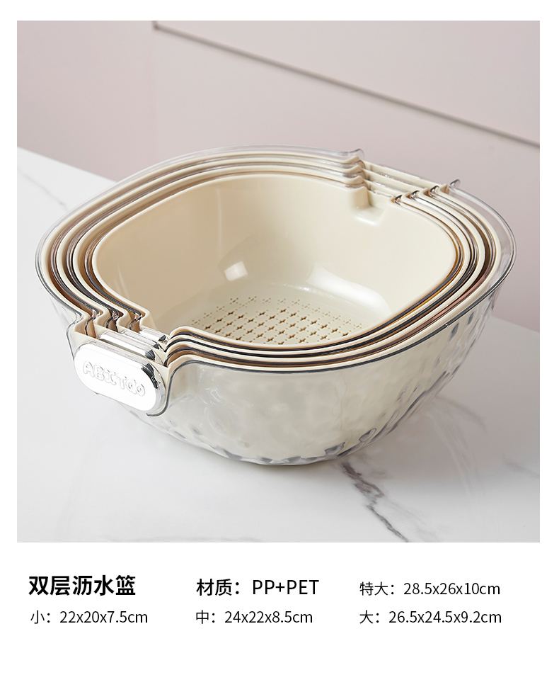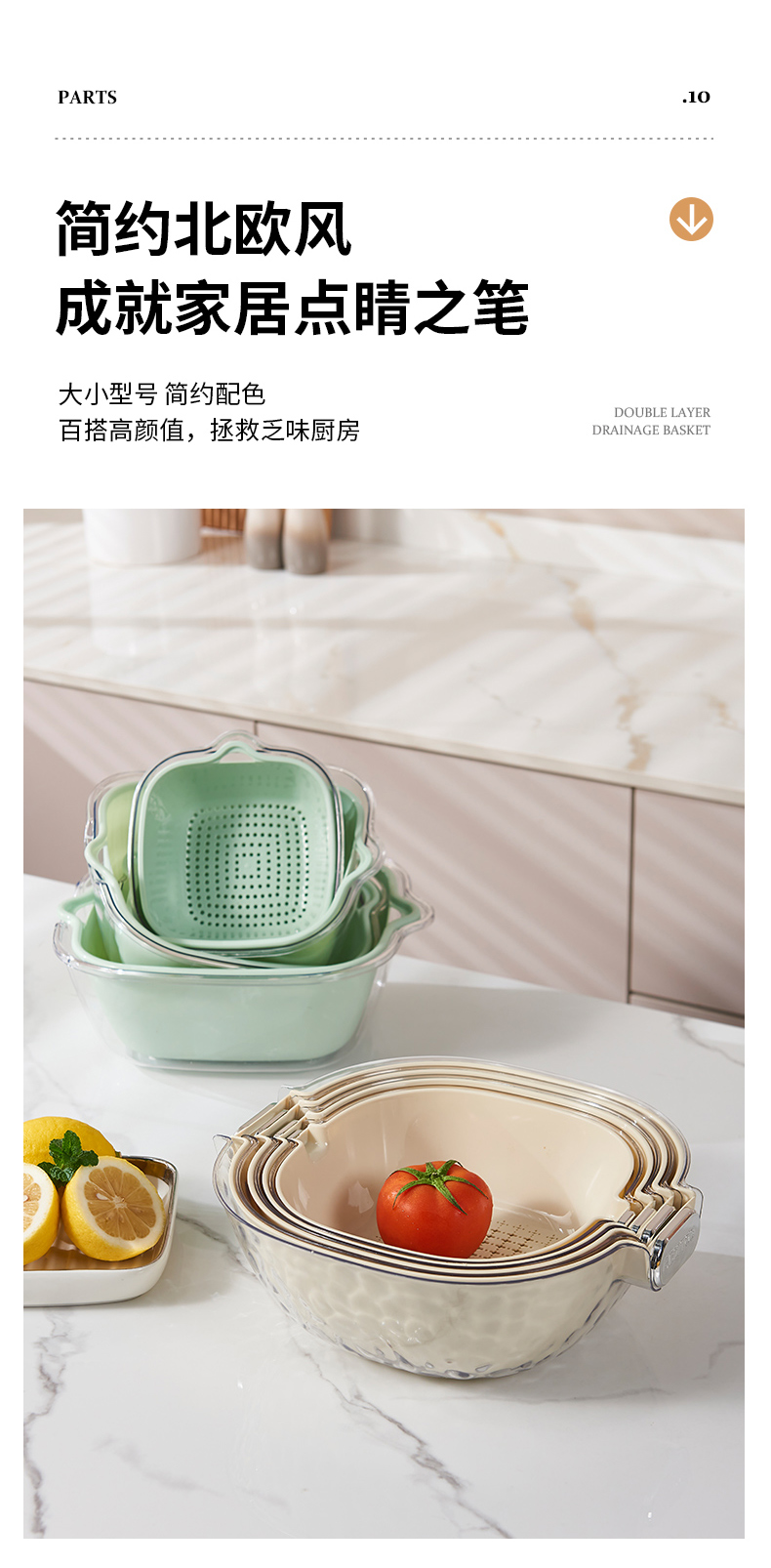 双层洗菜盆沥水篮八件套厨房客厅家用洗水果盘简约塑料淘菜菜篮子