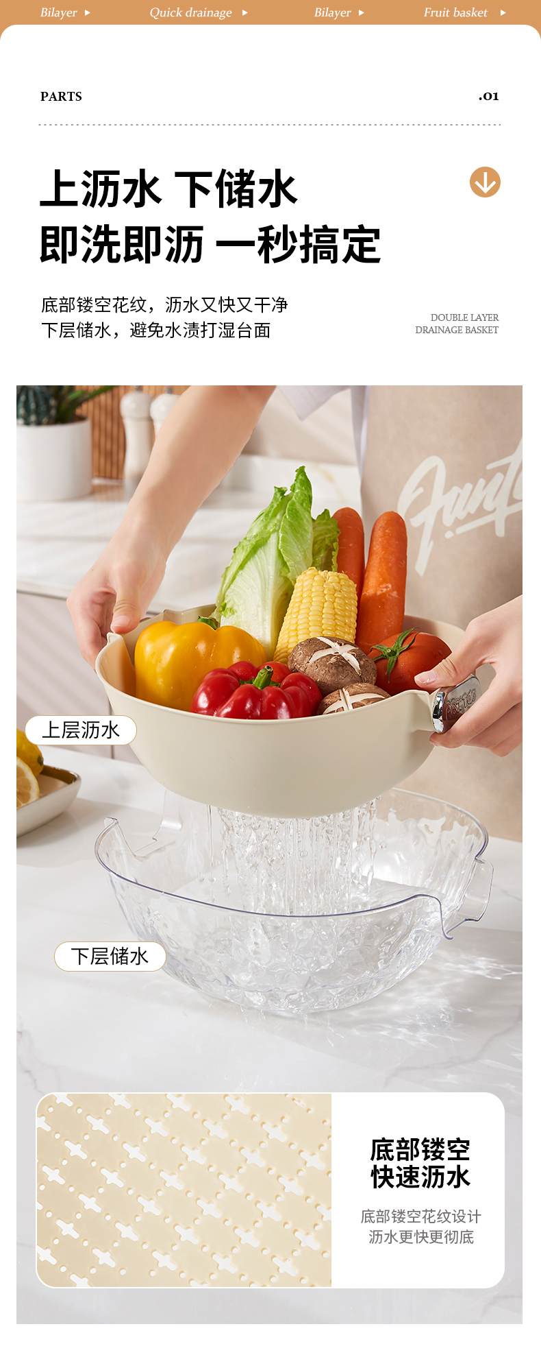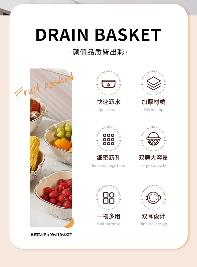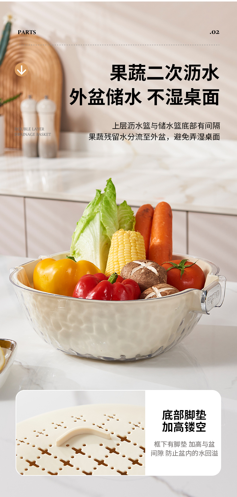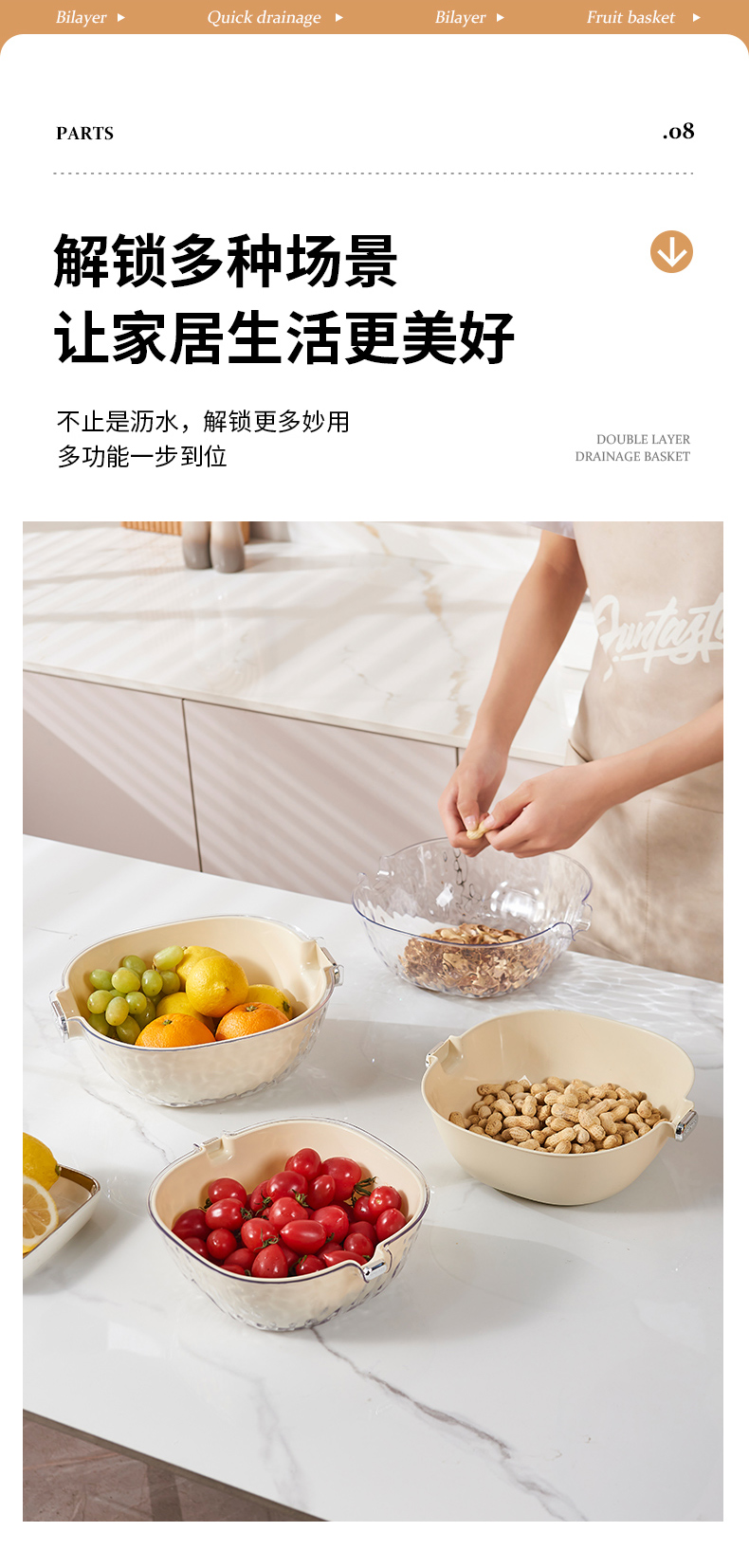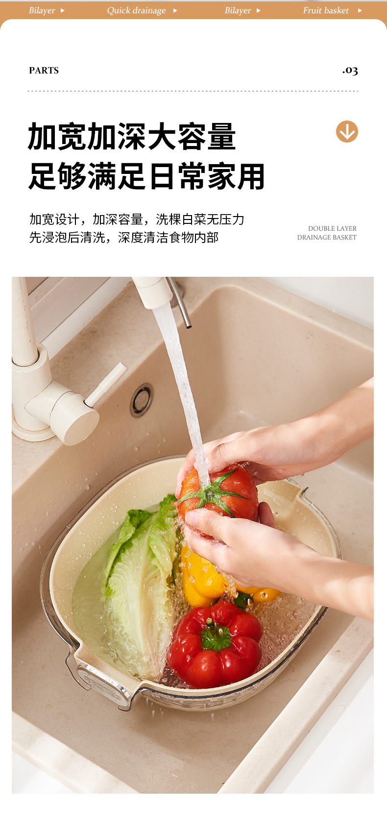 双层洗菜盆沥水篮八件套厨房客厅家用洗水果盘简约塑料淘菜菜篮子